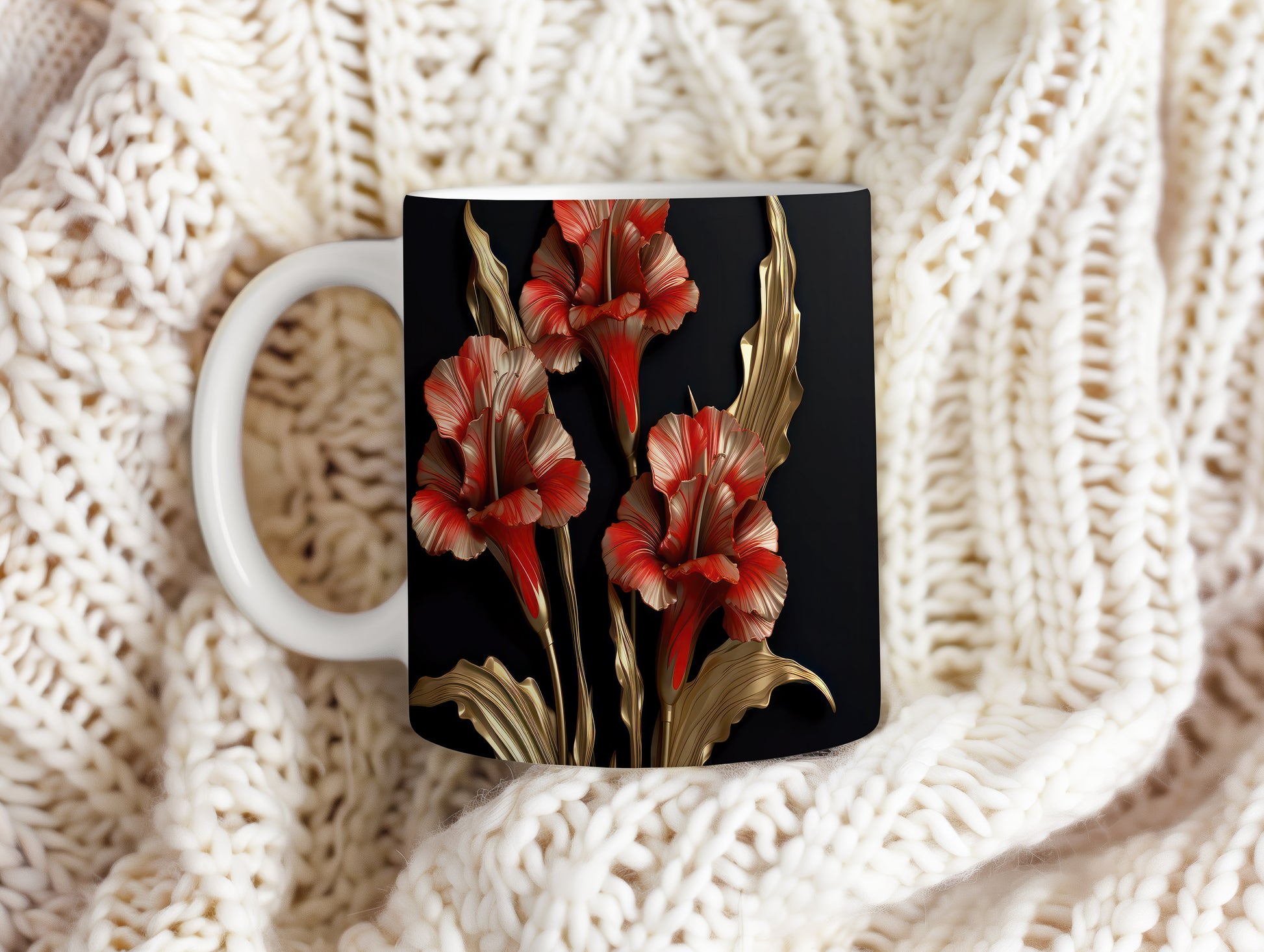 Hrnek s realistickými červenými květinami