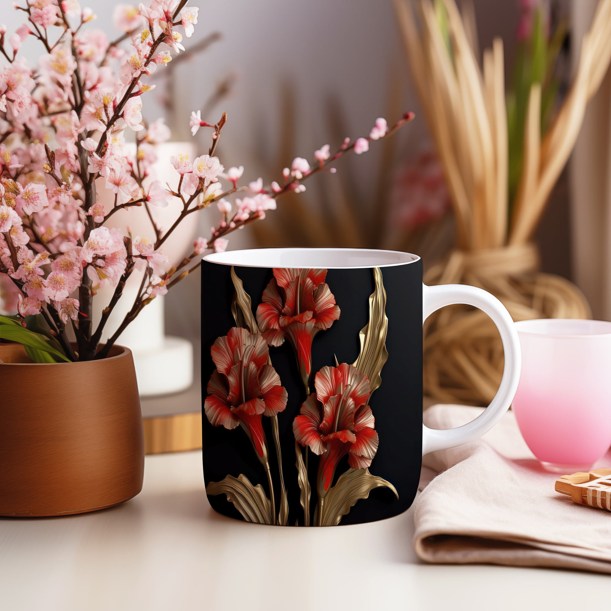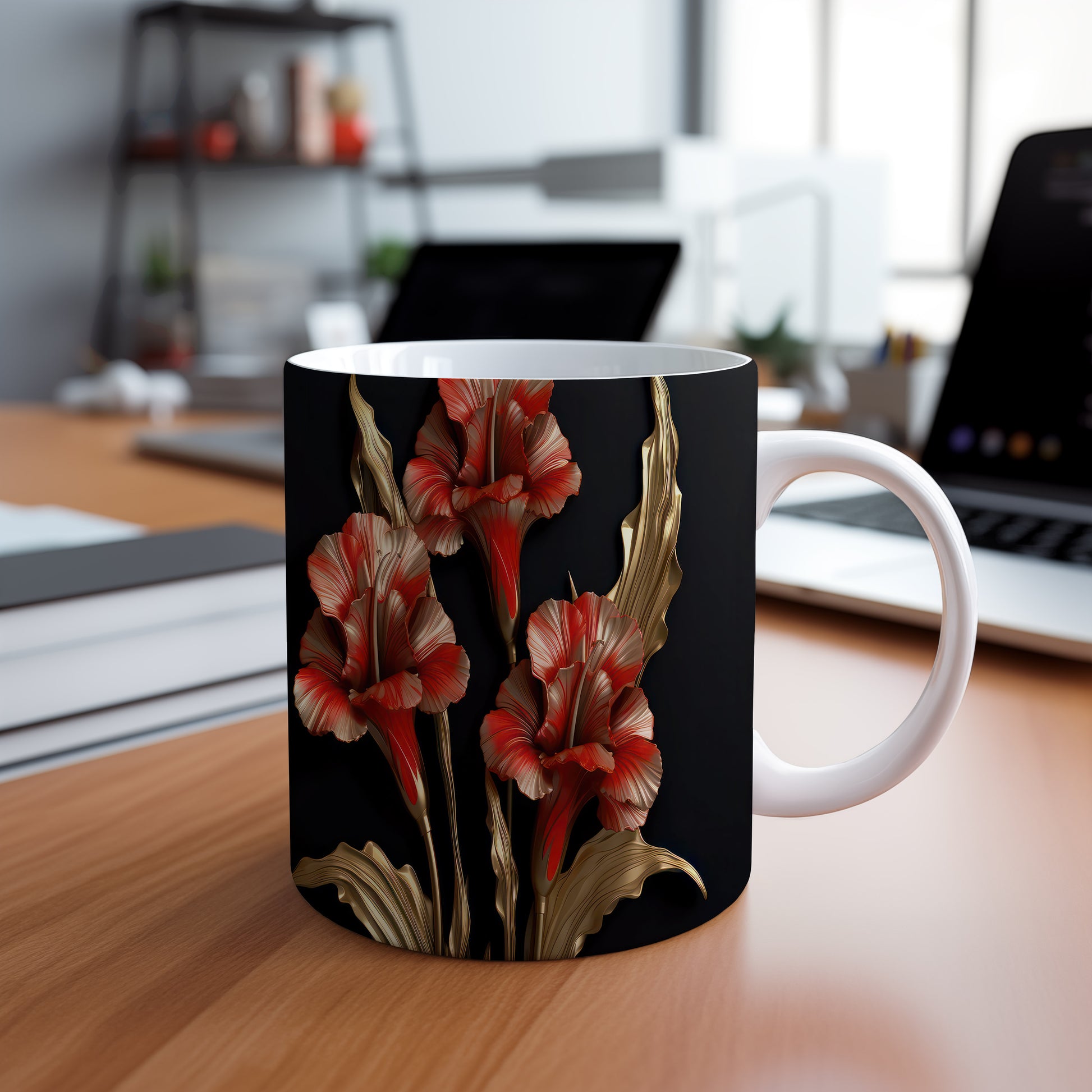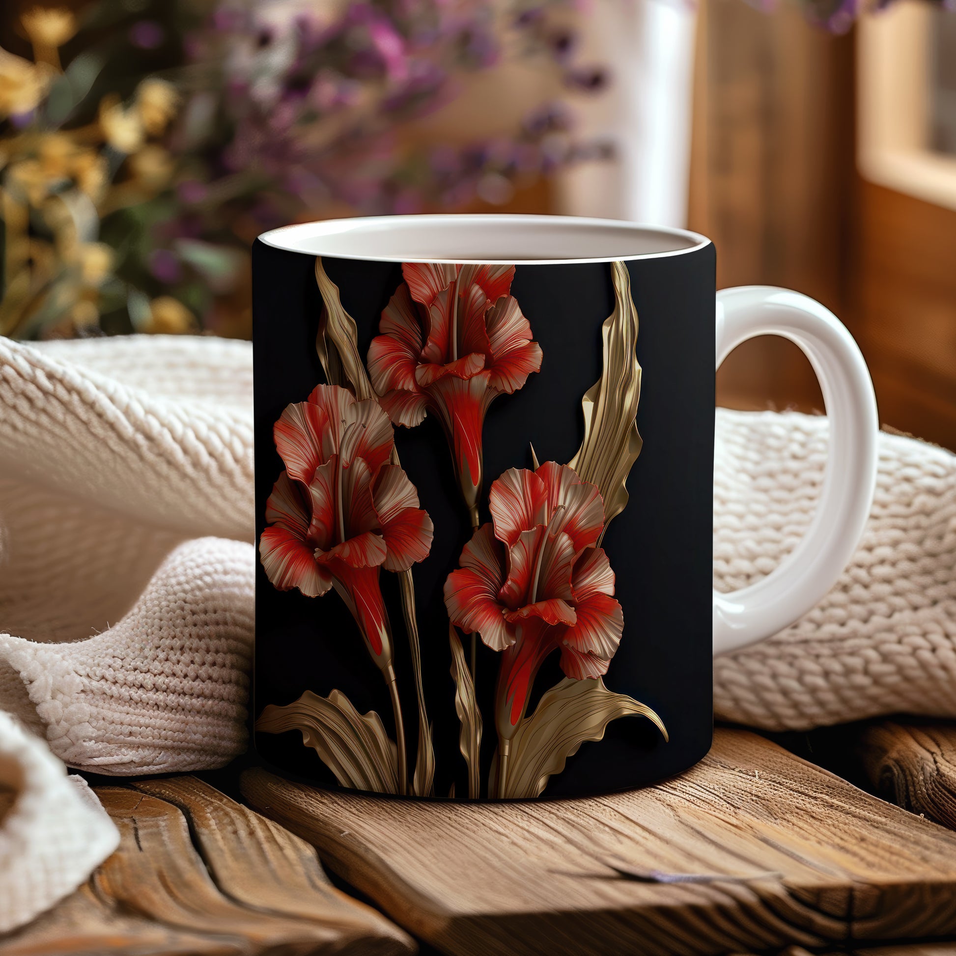 Tento hrnek s realistickými červenými květinami vyniká elegantním stylem a přináší do vašeho domova kousek přírody. Je ideální pro milovníky květin a skvělým dárkem pro přátele nebo rodinu. Materiál: keramika. Objem: 330 ml. Vhodné do myčky i mikrovlnky. Užívejte si kávu nebo čaj s tímto stylovým hrnkem, který oživí každý stůl.