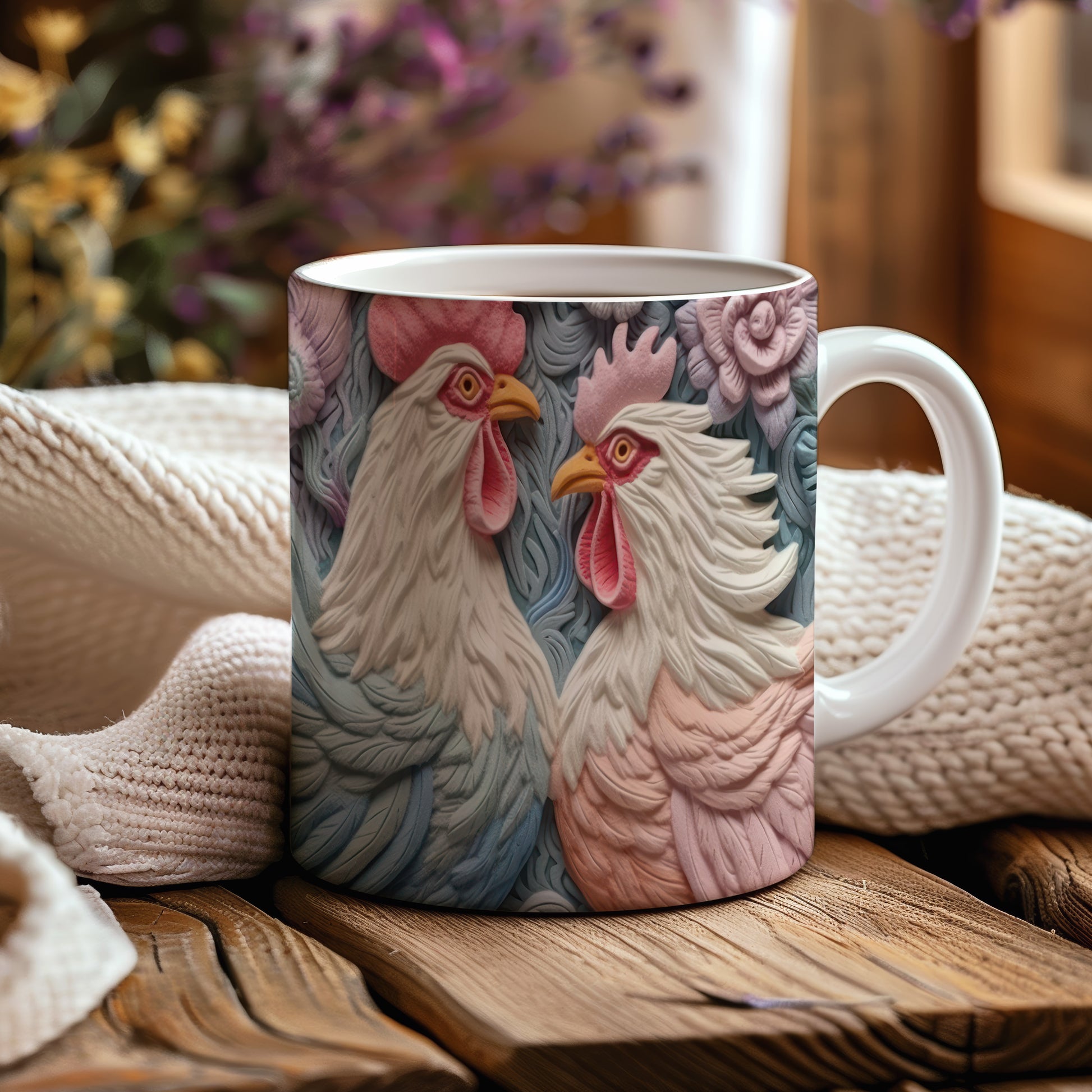 Tento hrnek s reliéfem kohoutů v jemných barvách je skvělým kouskem pro milovníky zvířat a přírody. Je ideální jako dárek pro přátele nebo rodinu, kteří ocení originální design. Materiál: keramika. Objem: 330 ml. Vhodné do myčky i mikrovlnky. Používání tohoto hrnku přináší radost z každého doušku.