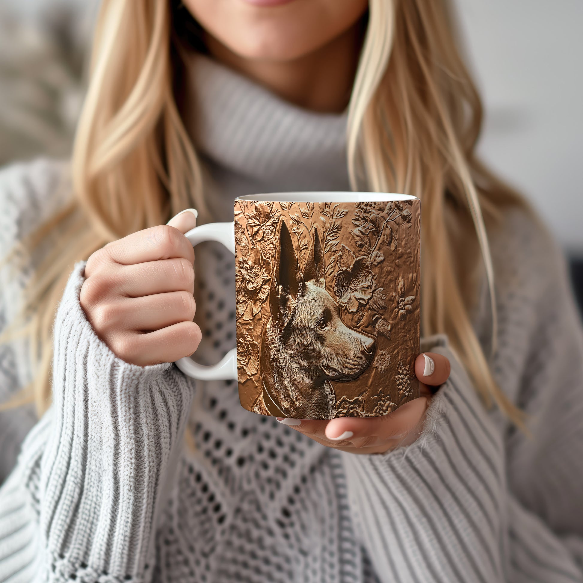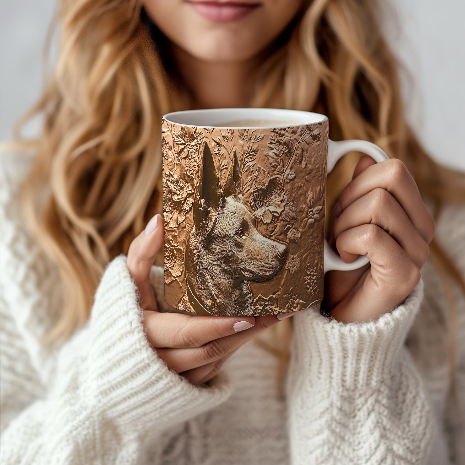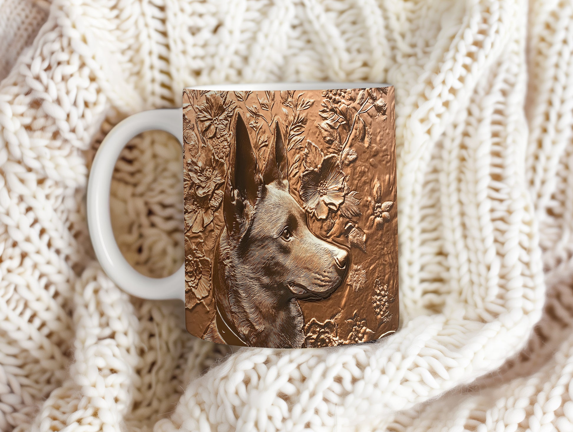 Hrnek s elegantním reliéfem psa obklopeného květinami a listy je skvělým kouskem pro milovníky zvířat. Tento keramický hrnek je ideální jako dárek pro přátele či rodinu, kteří mají rádi přírodu. Materiál: keramika. Objem: 330 ml. Vhodné do myčky i mikrovlnky. Užívejte si svůj oblíbený nápoj s tímto stylovým hrnkem, který přináší radost do každého dne.