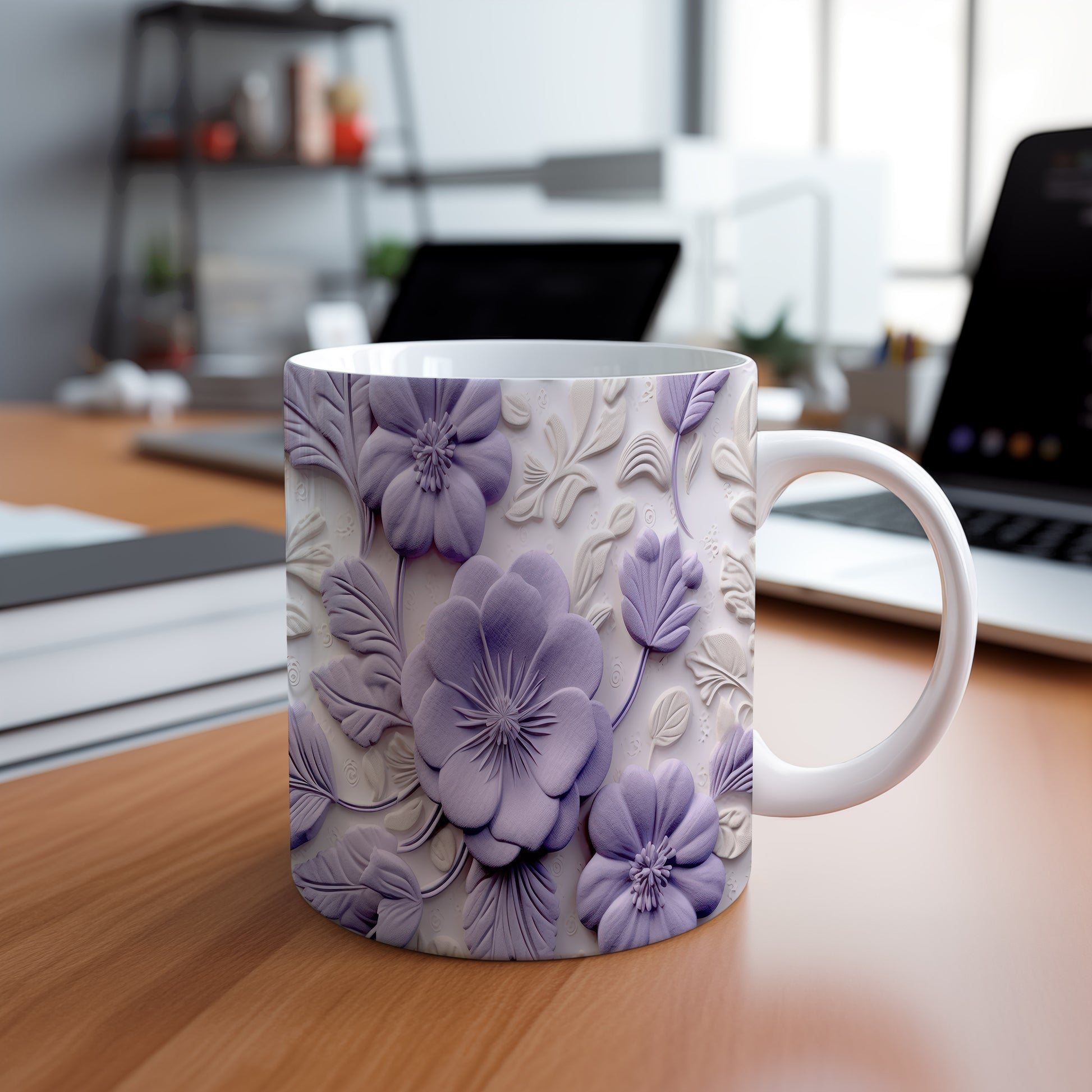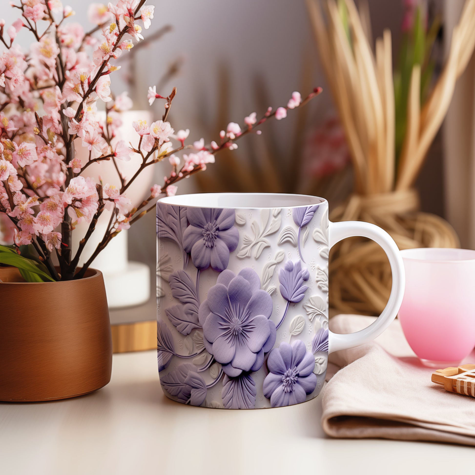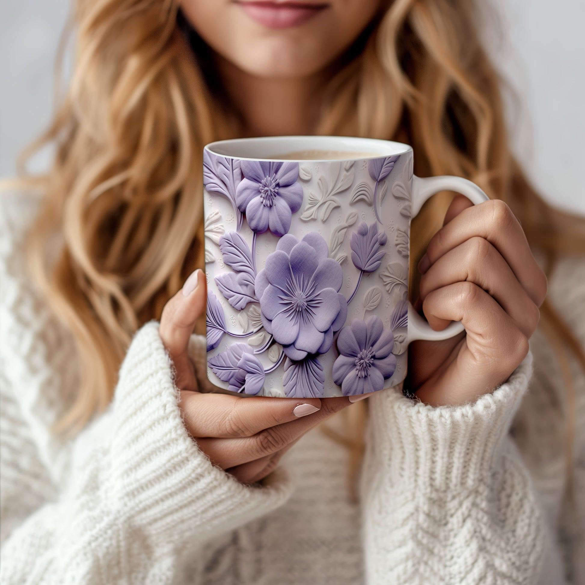 Stylový hrnek s reliéfním motivem květin v jemných fialových a bílých odstínech. Tento elegantní kousek je ideální pro milovníky přírody a skvělým dárkem pro každého, kdo ocení krásu designu. Materiál: keramika. Objem: 330 ml. Vhodné do myčky i mikrovlnky. Díky svému designu přináší do každodenního pití radost a styl.