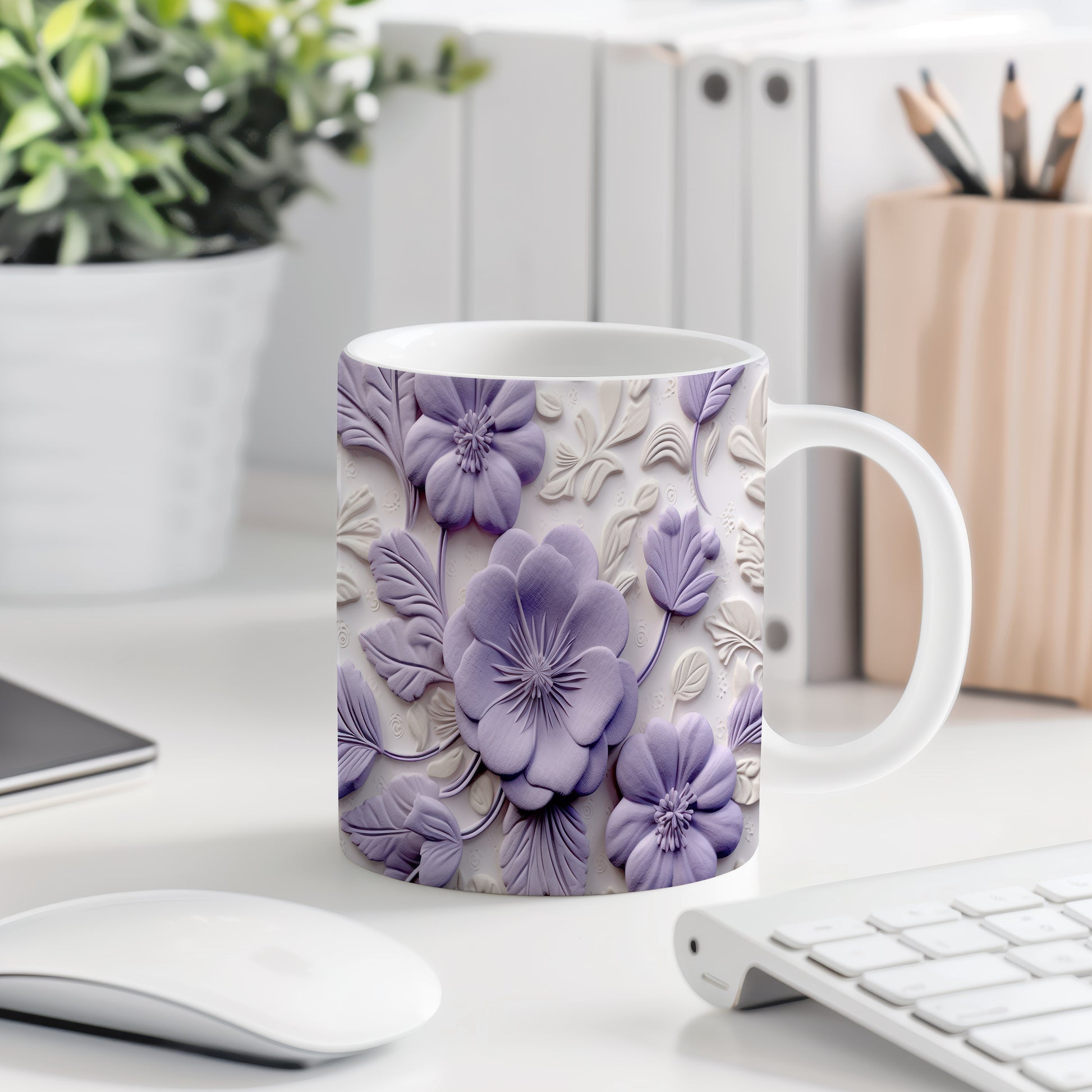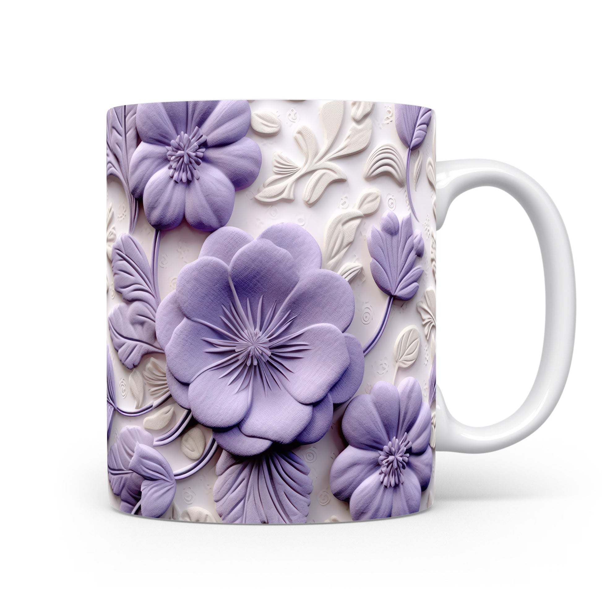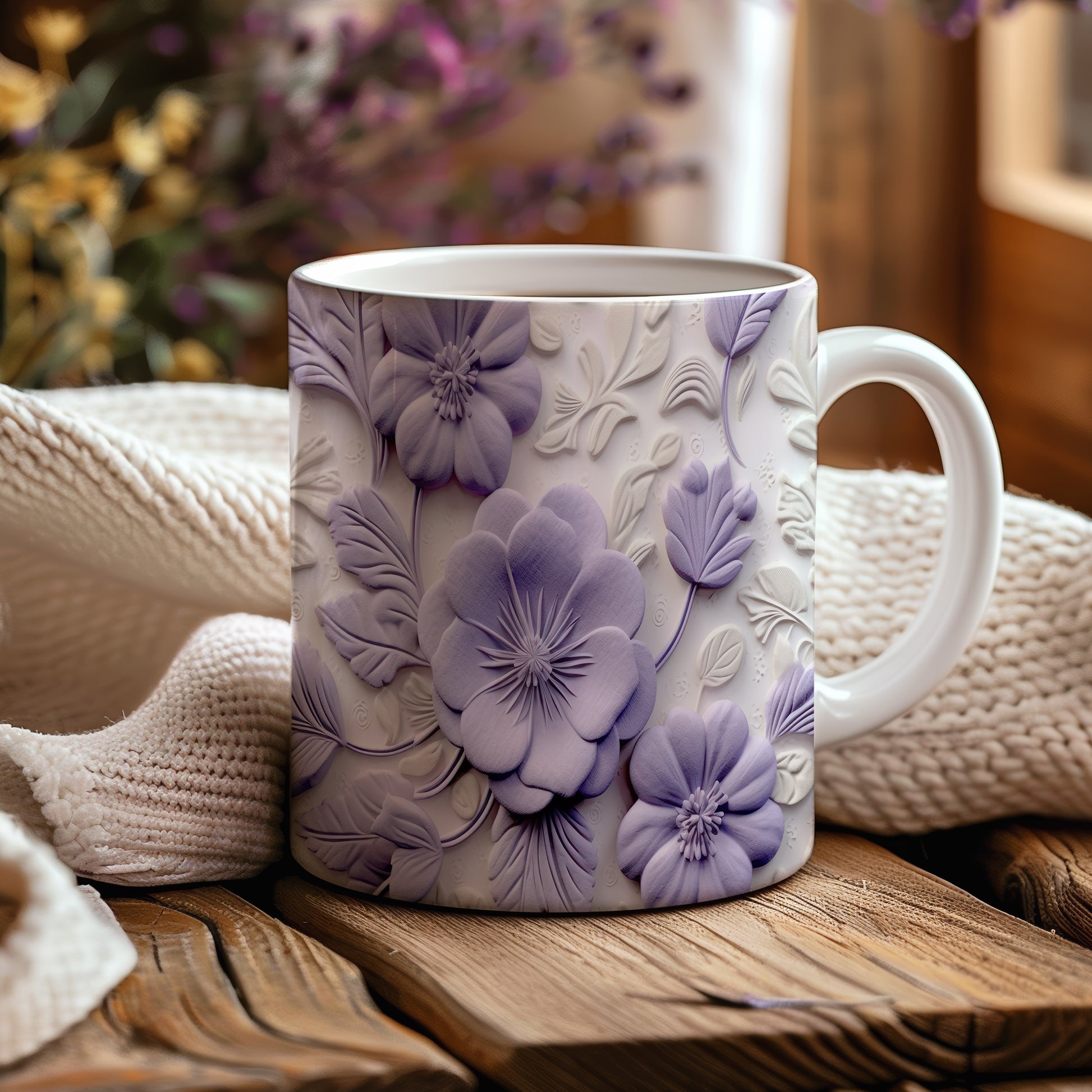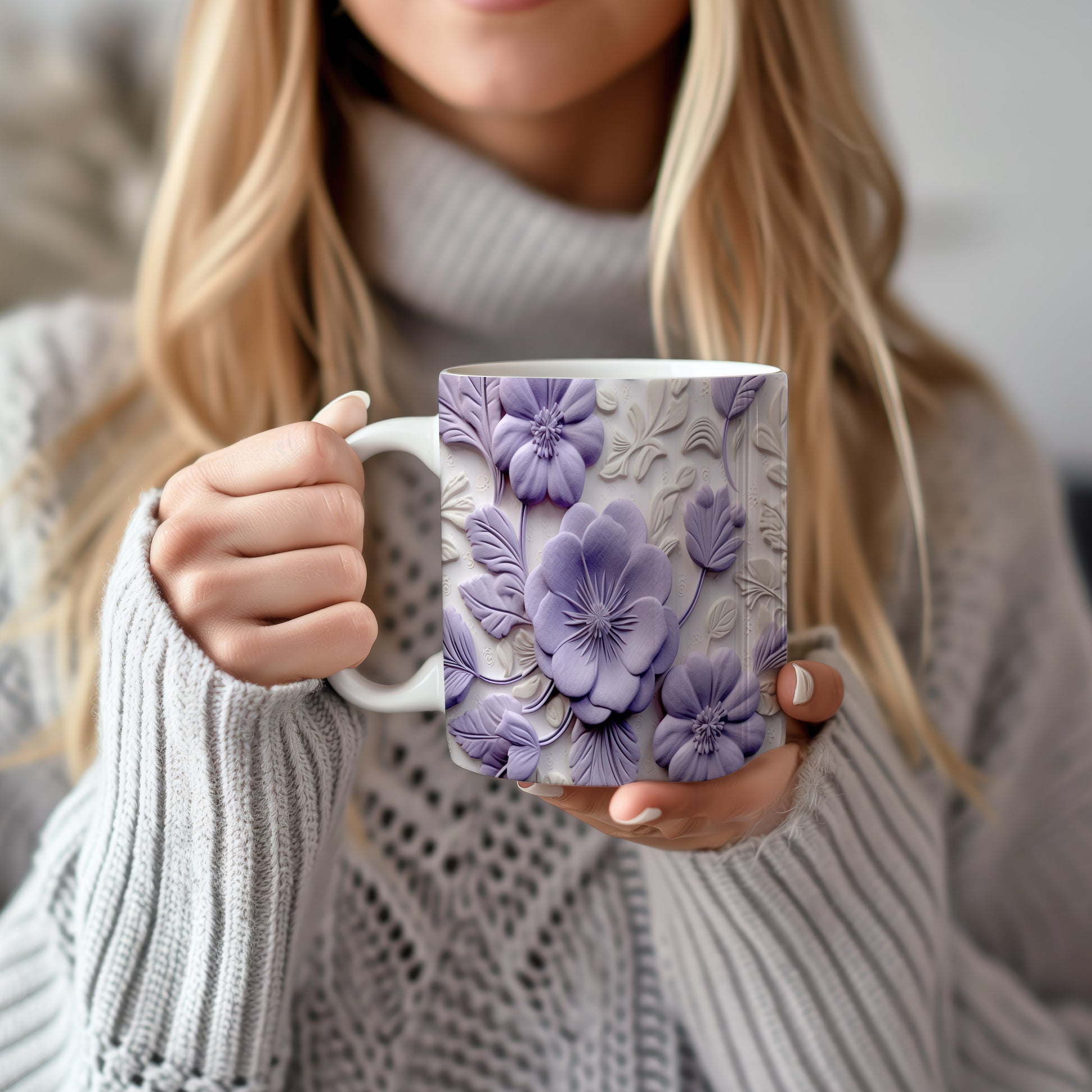 Stylový hrnek s reliéfním motivem květin v jemných fialových a bílých odstínech. Tento elegantní kousek je ideální pro milovníky přírody a skvělým dárkem pro každého, kdo ocení krásu designu. Materiál: keramika. Objem: 330 ml. Vhodné do myčky i mikrovlnky. Díky svému designu přináší do každodenního pití radost a styl.