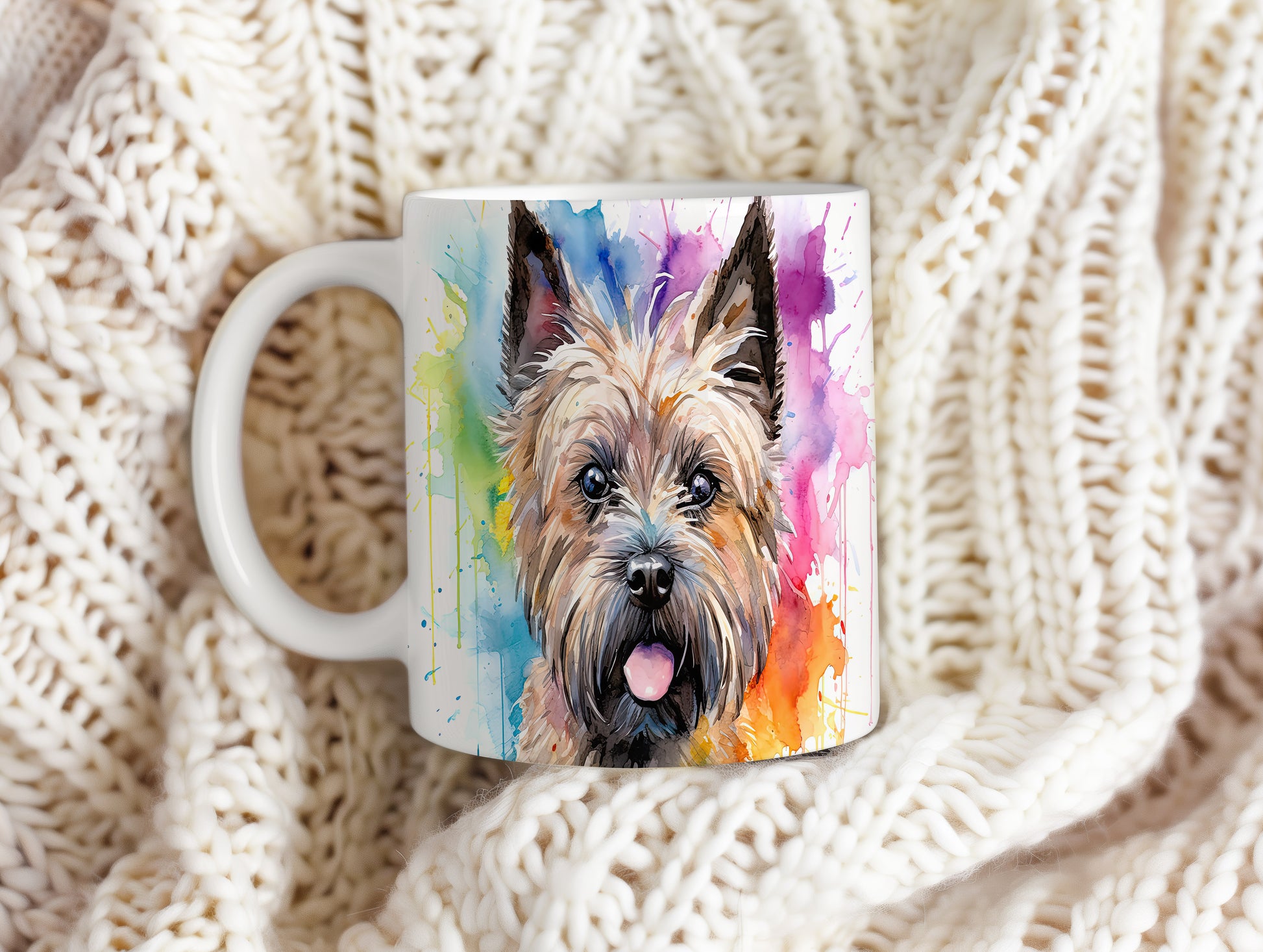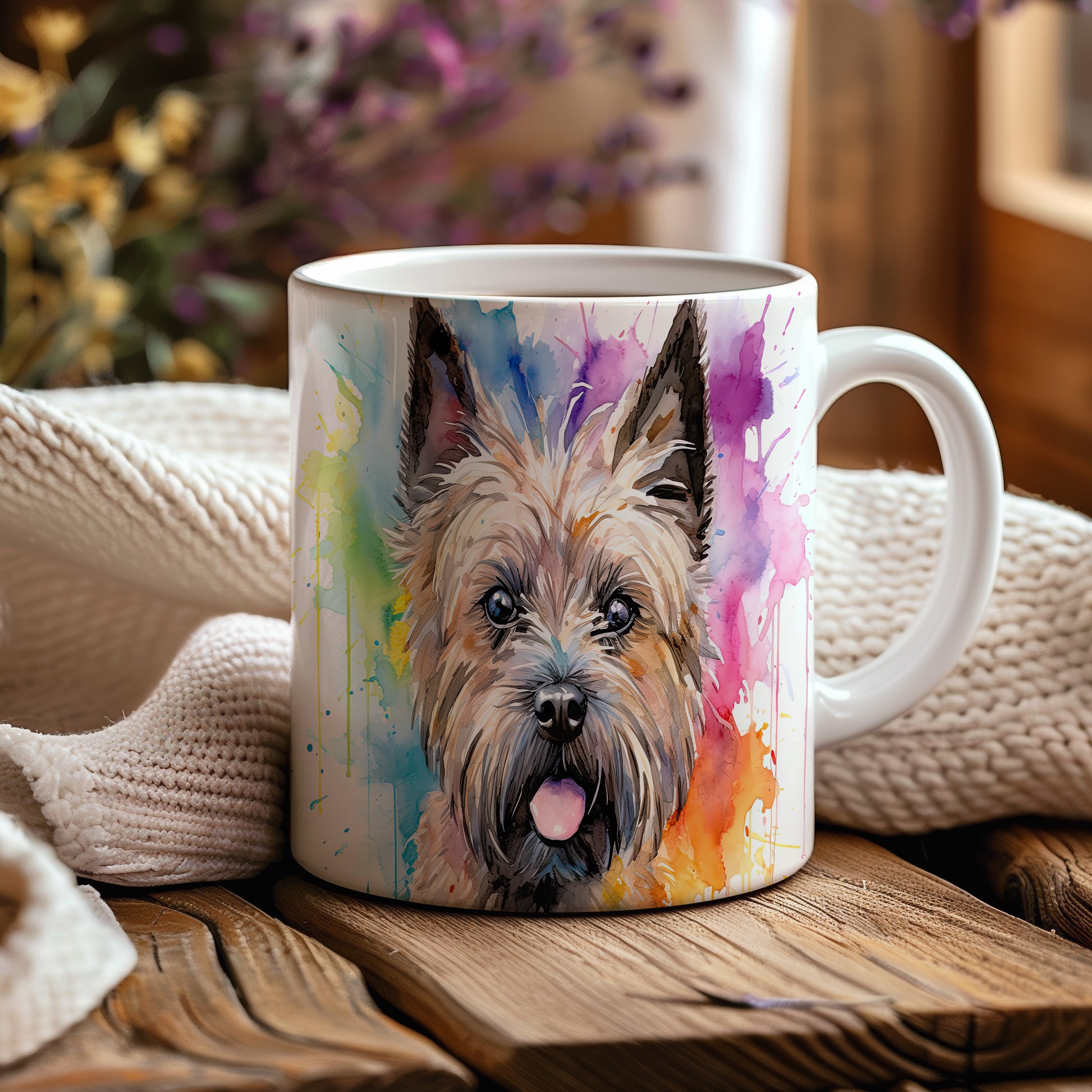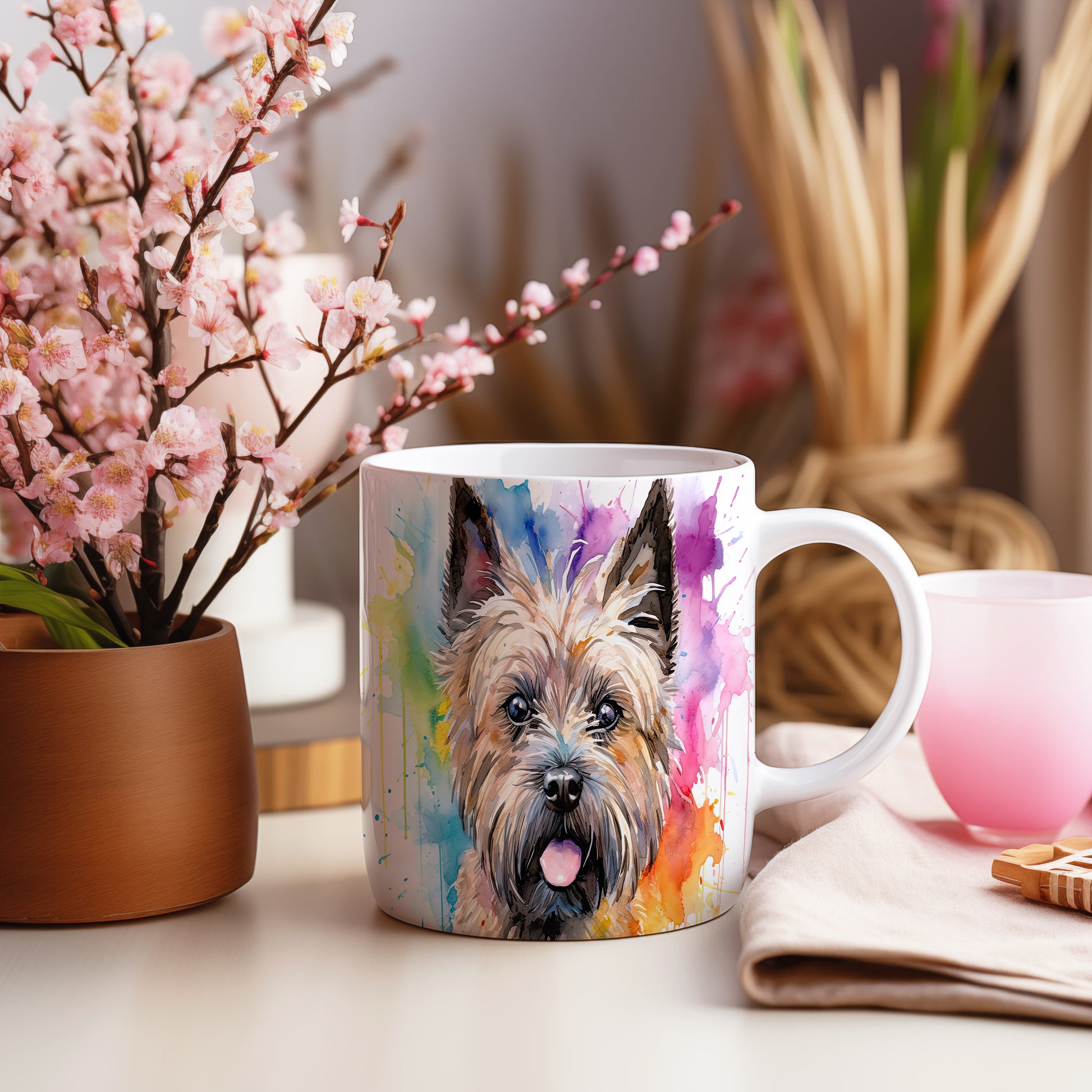 Hrnek s teriérem a barevnou explozí