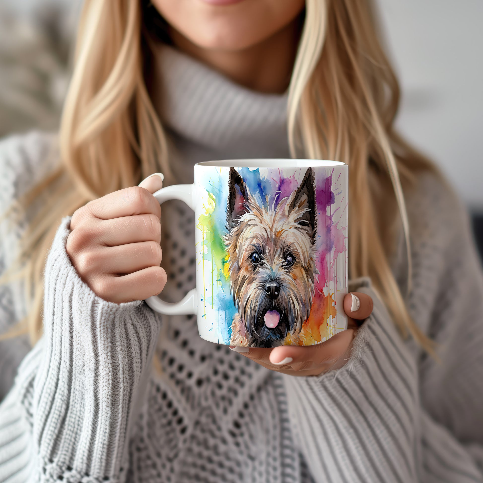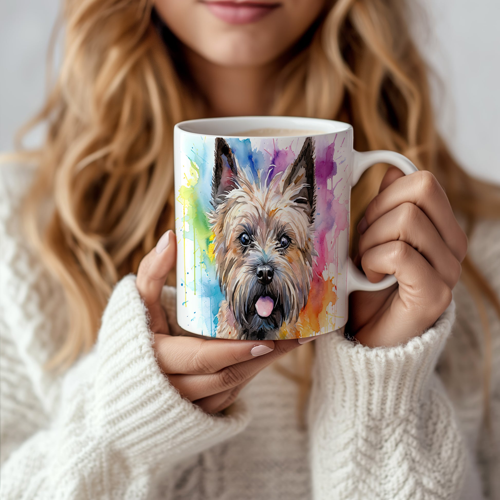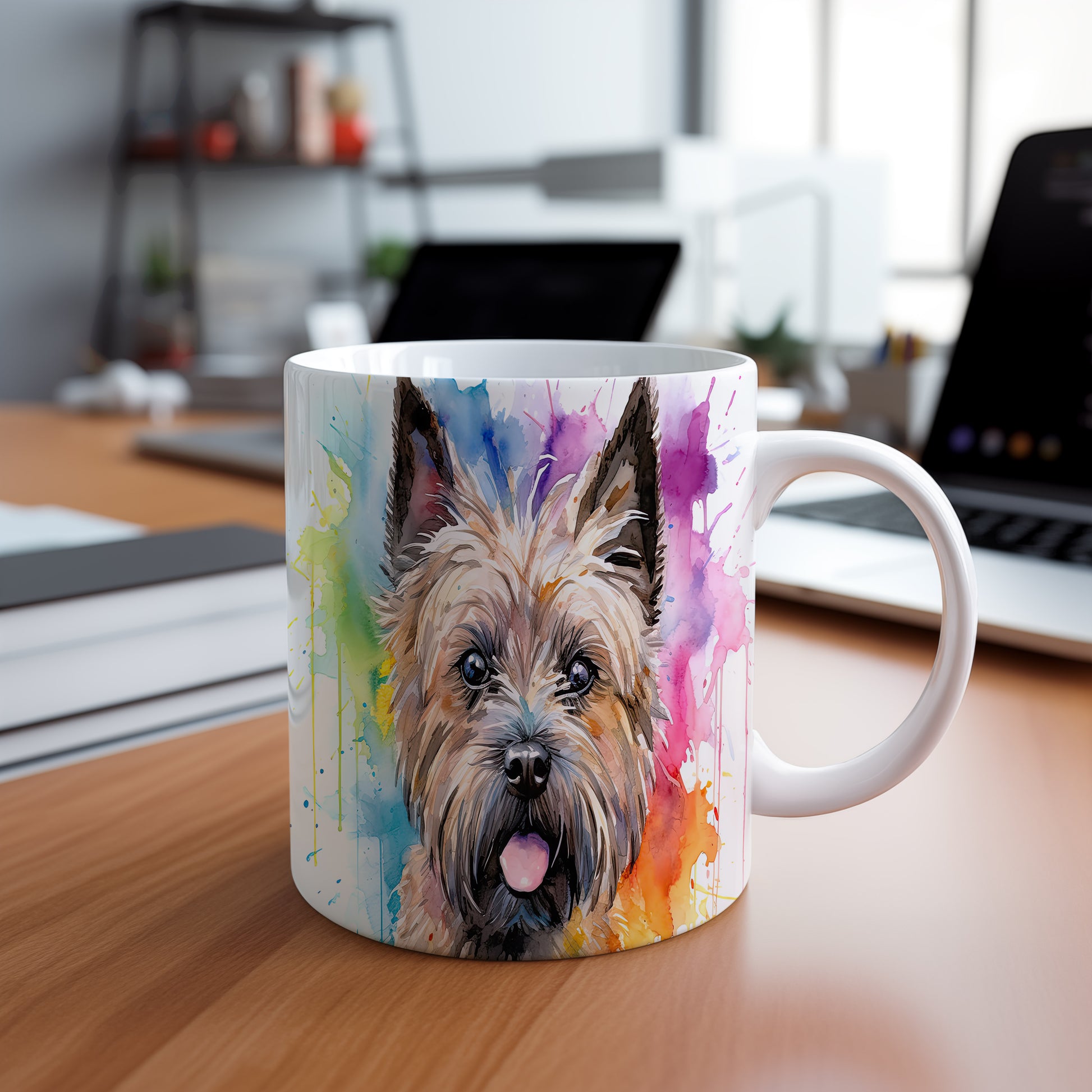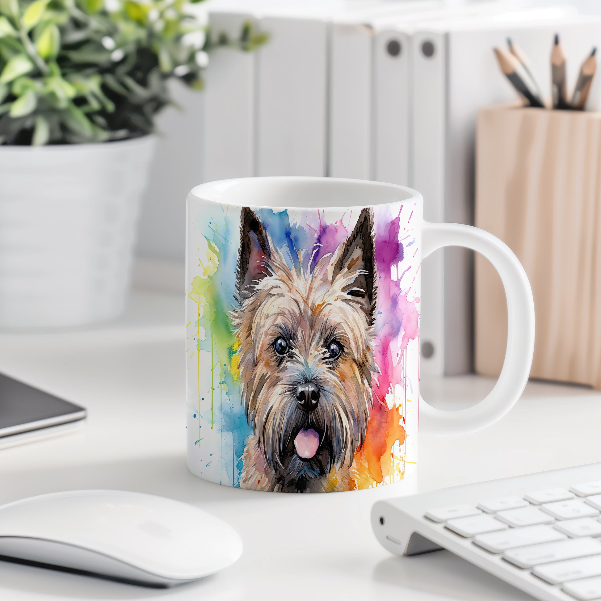 Hrnek s teriérem a barevnou explozí