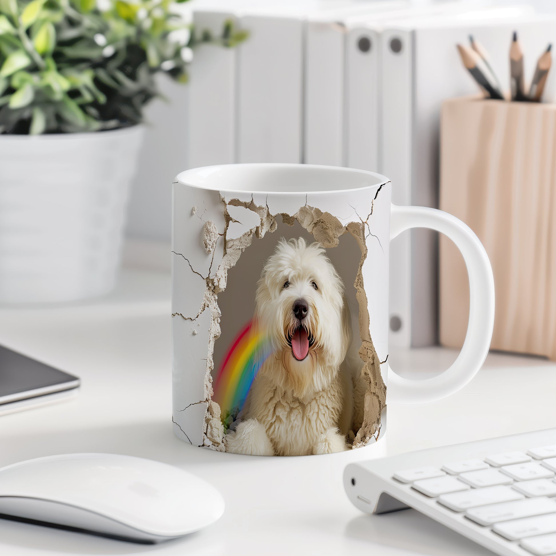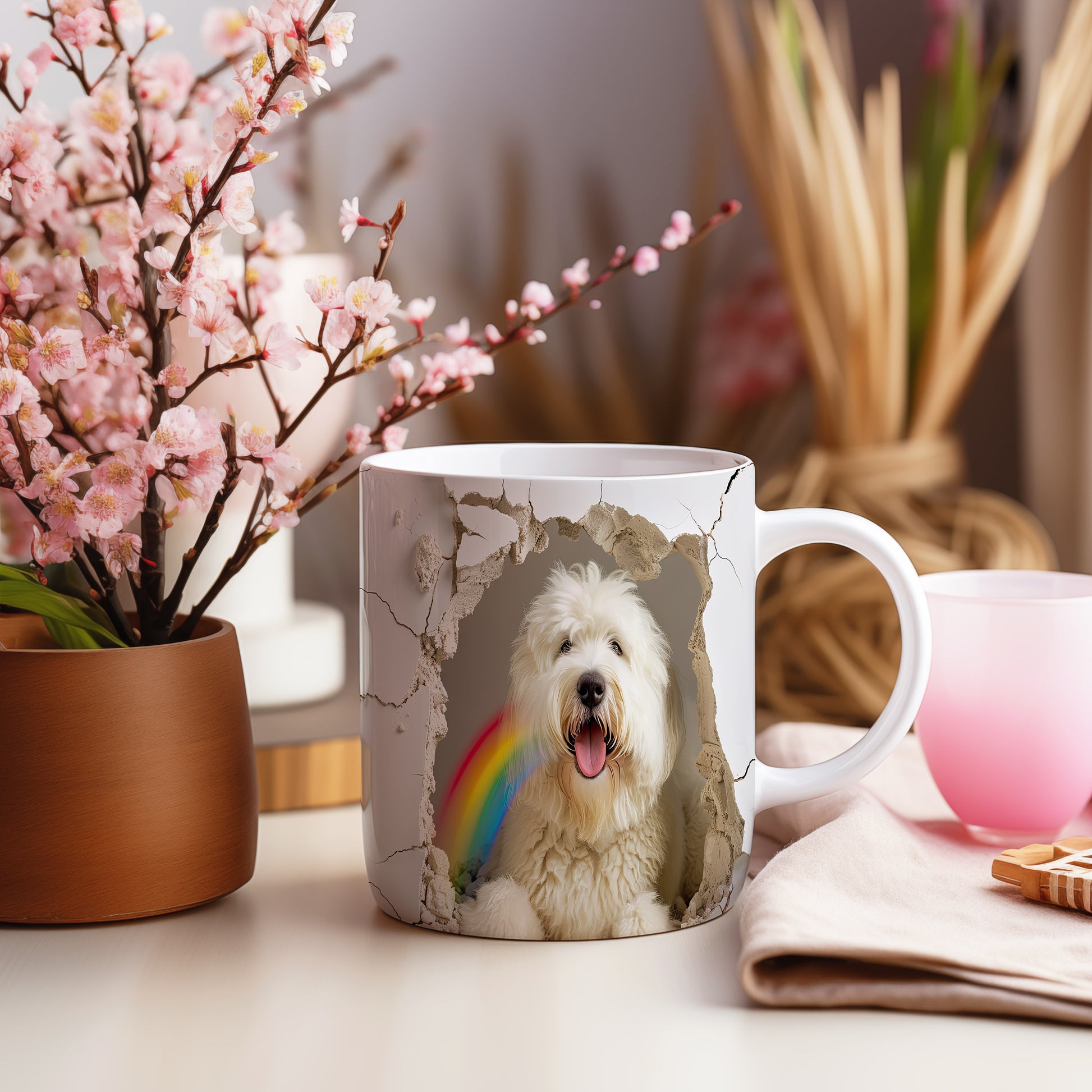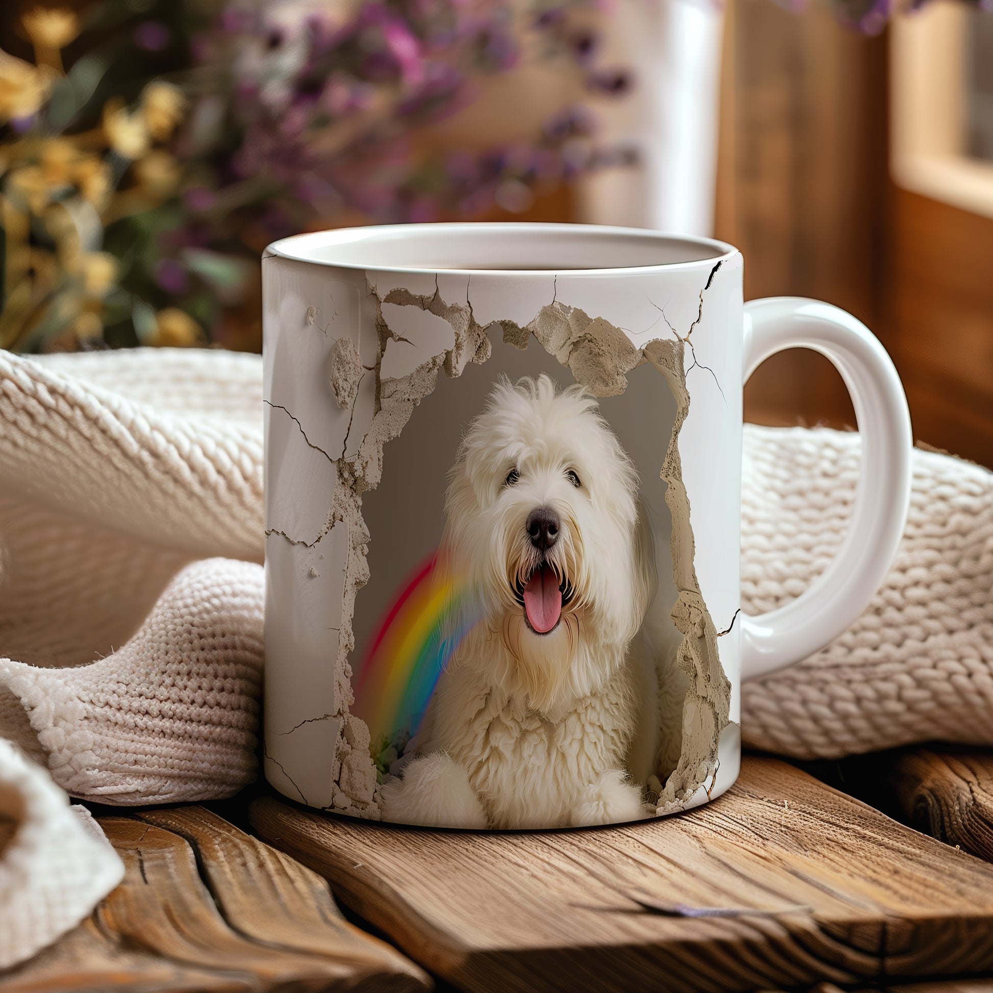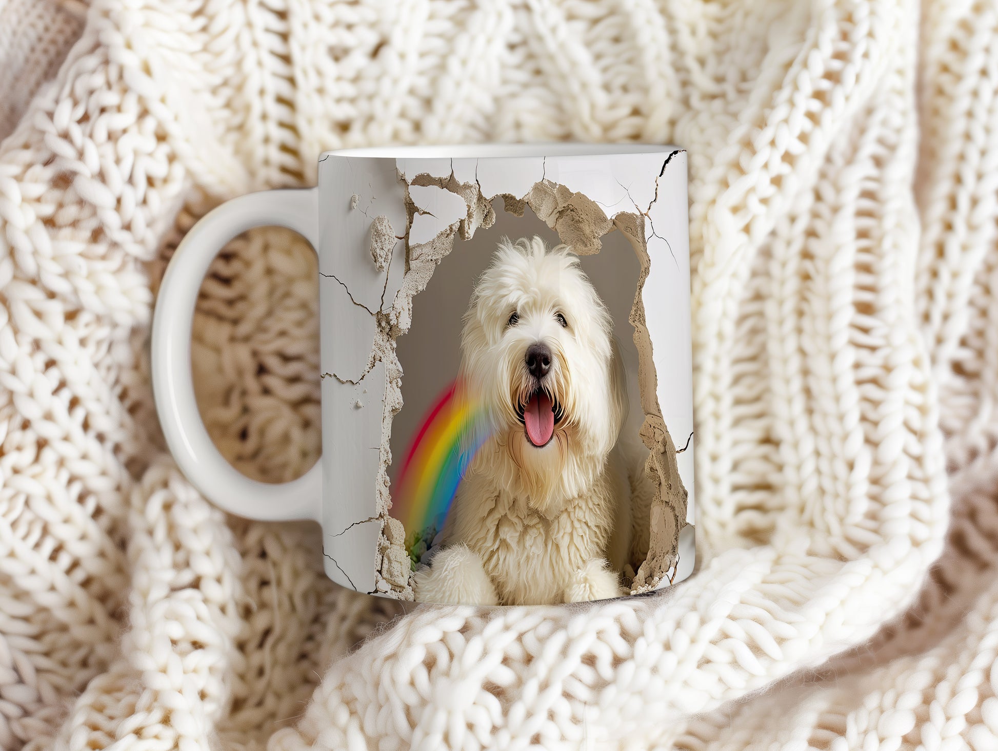 Na hrnku je zobrazen roztomilý bílý pes s otevřenou tlamou, ze které vychází duha. Tento veselý design potěší milovníky zvířat a je skvělým dárkem pro přátele nebo rodinu. Materiál: keramika. Objem: 330 ml. Vhodné do myčky i mikrovlnky. Používání tohoto hrnku přináší radost a pozitivní energii do každého dne.