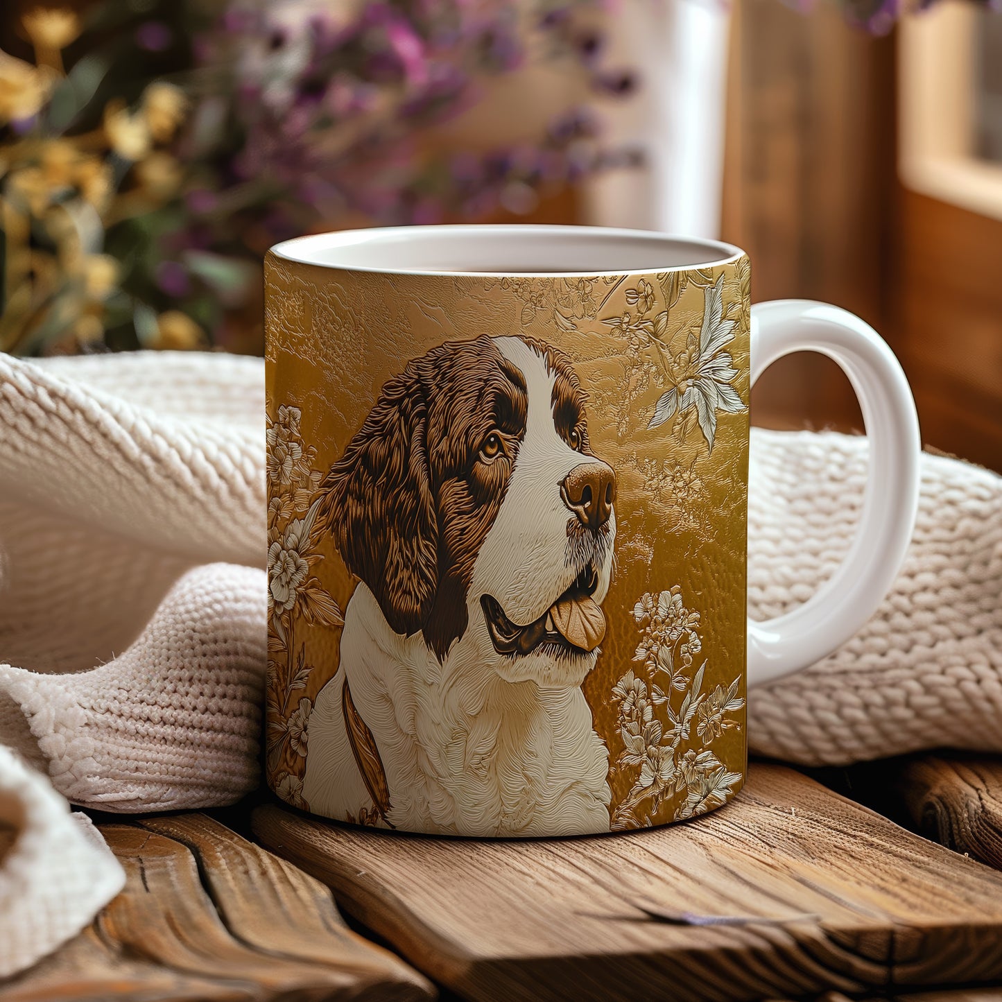 Keramický hrnek s motivem bernardýnského psa mezi květinami. Tento hrnek je ideální pro milovníky zvířat a přírody, skvělý tip na dárek pro přátele nebo rodinu. Materiál: keramika. Objem: 330 ml. Vhodné do myčky i mikrovlnky. Užijte si každodenní kávu nebo čaj s tímto jedinečným kouskem.