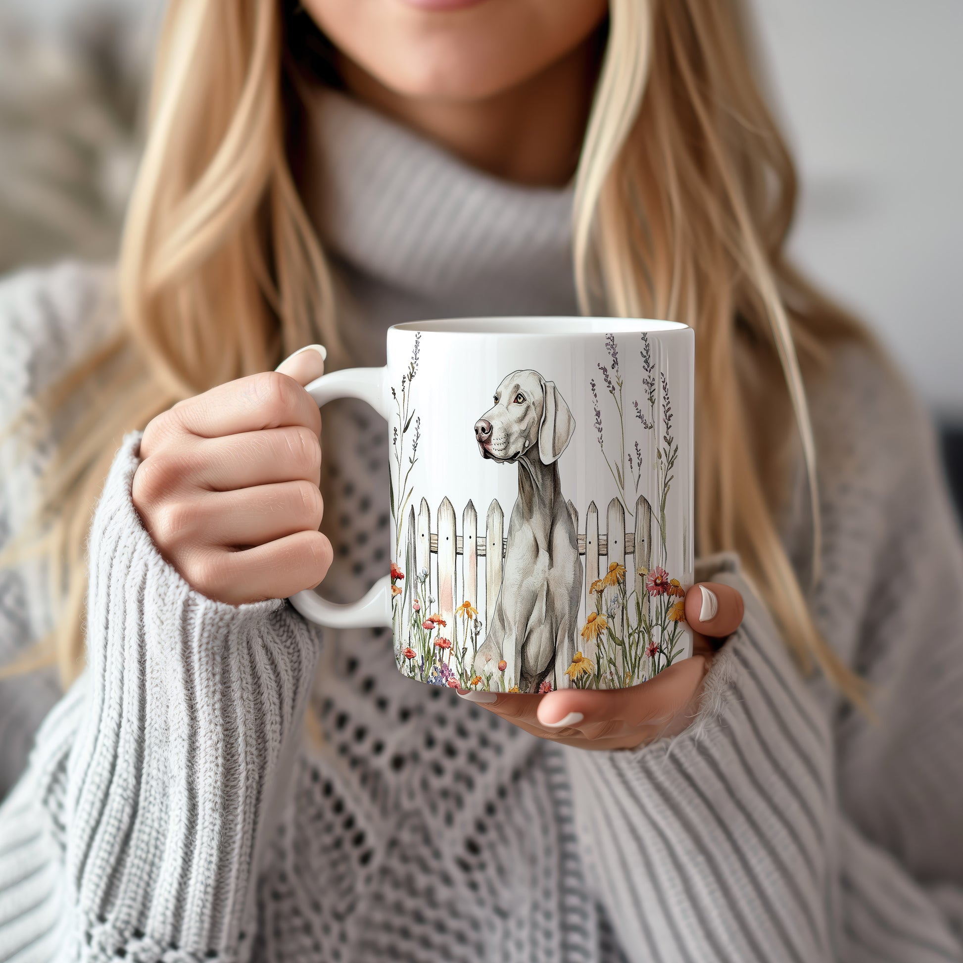 Hrnek se šedým psem a květinami je stylovým doplňkem pro milovníky zvířat a přírody. Tento hrnek je ideální jako dárek pro přátele nebo rodinu, kteří ocení originální design. Materiál: keramika. Objem: 330 ml. Vhodné do myčky i mikrovlnky. Užívejte si svůj oblíbený nápoj s tímto jedinečným hrnkem, který přináší radost do každého dne.