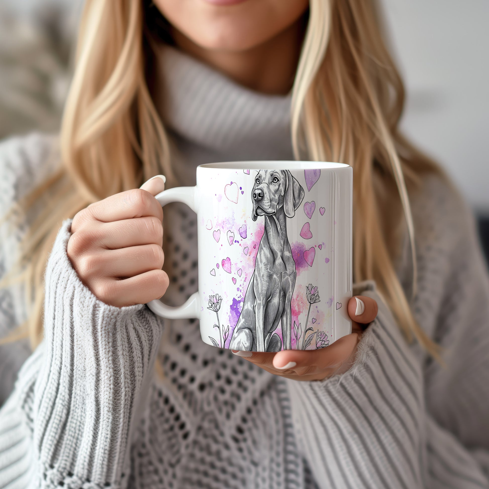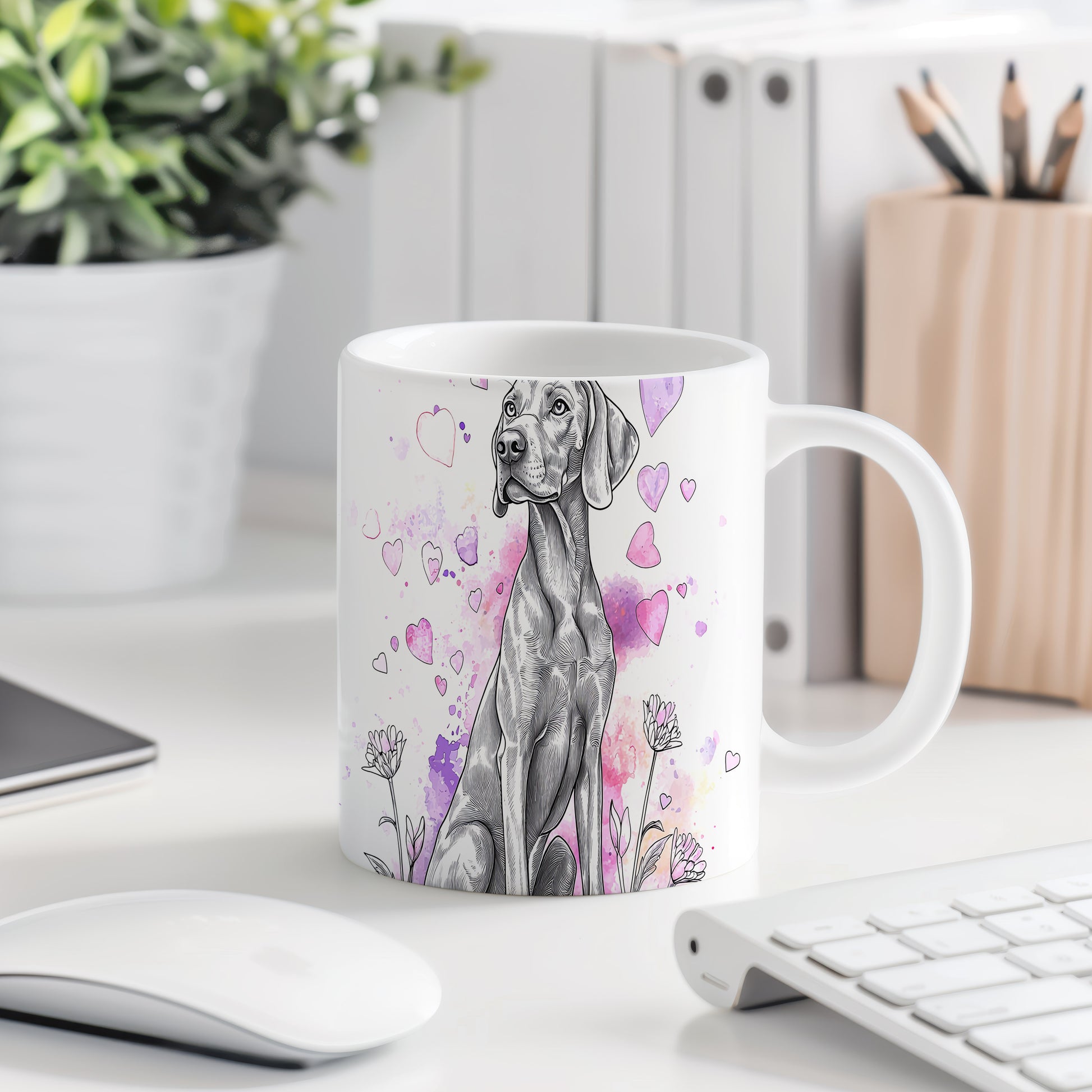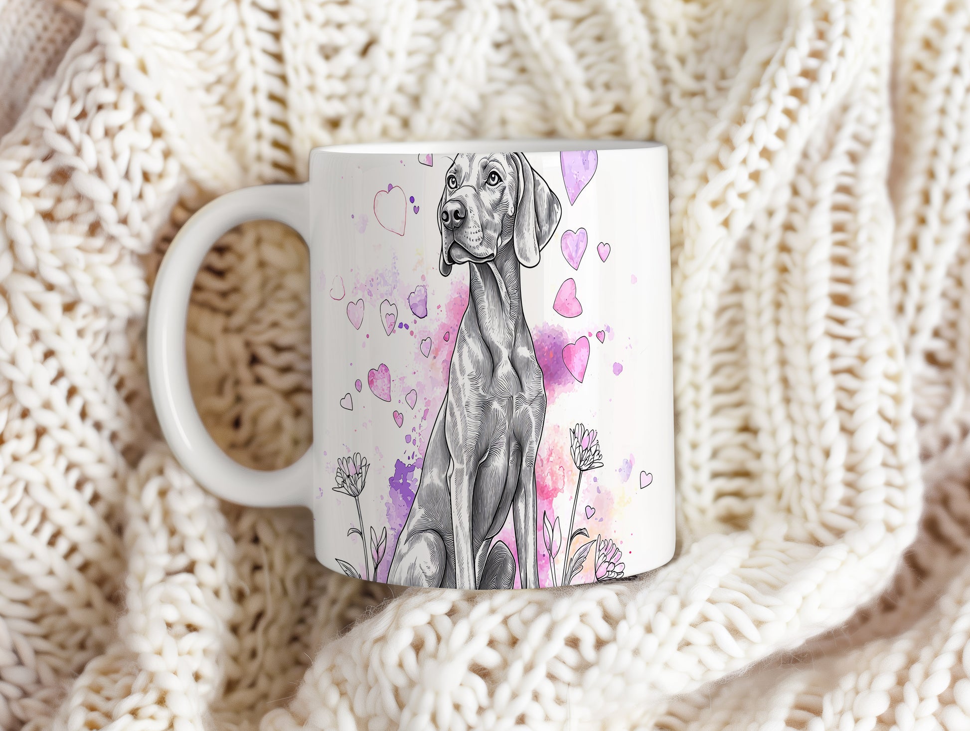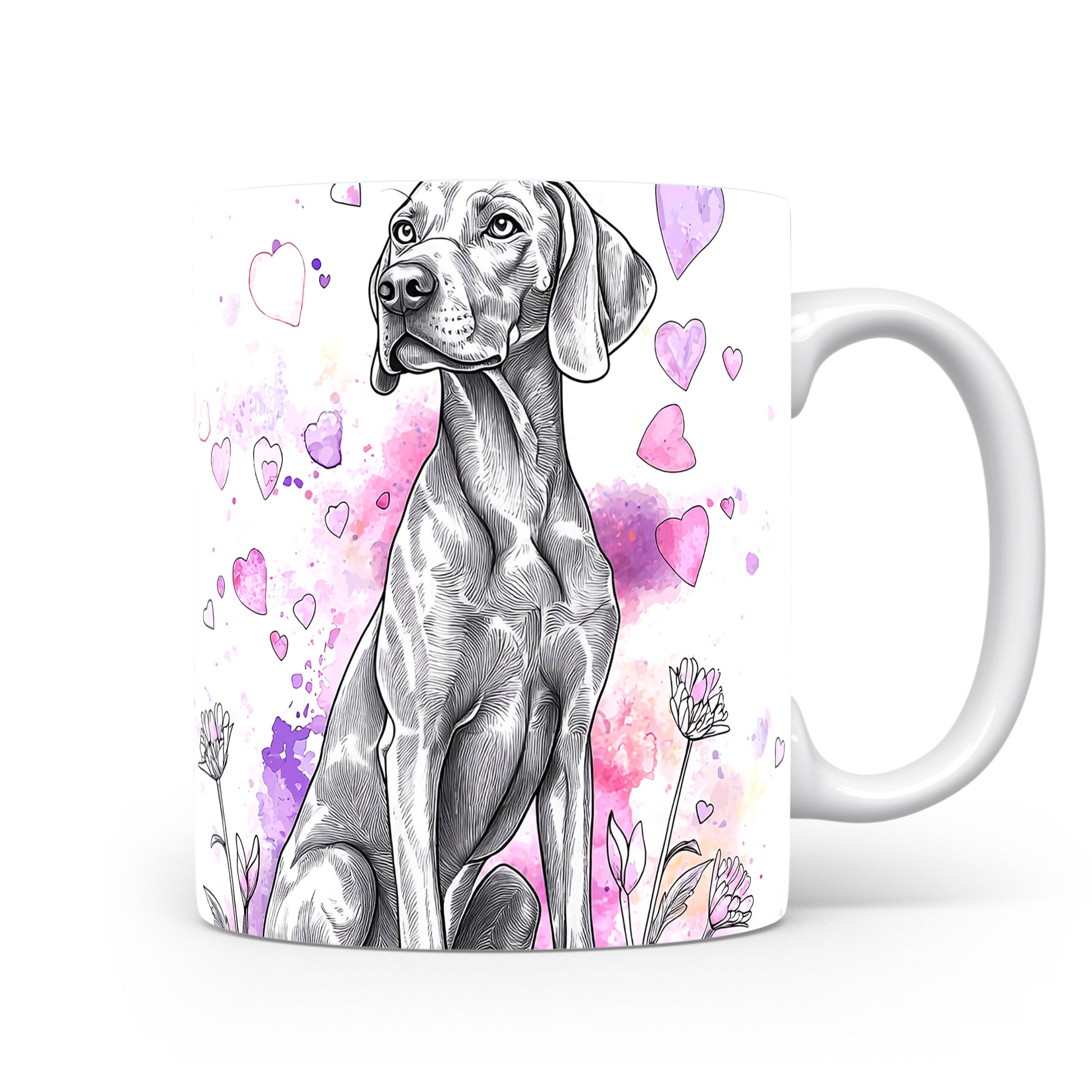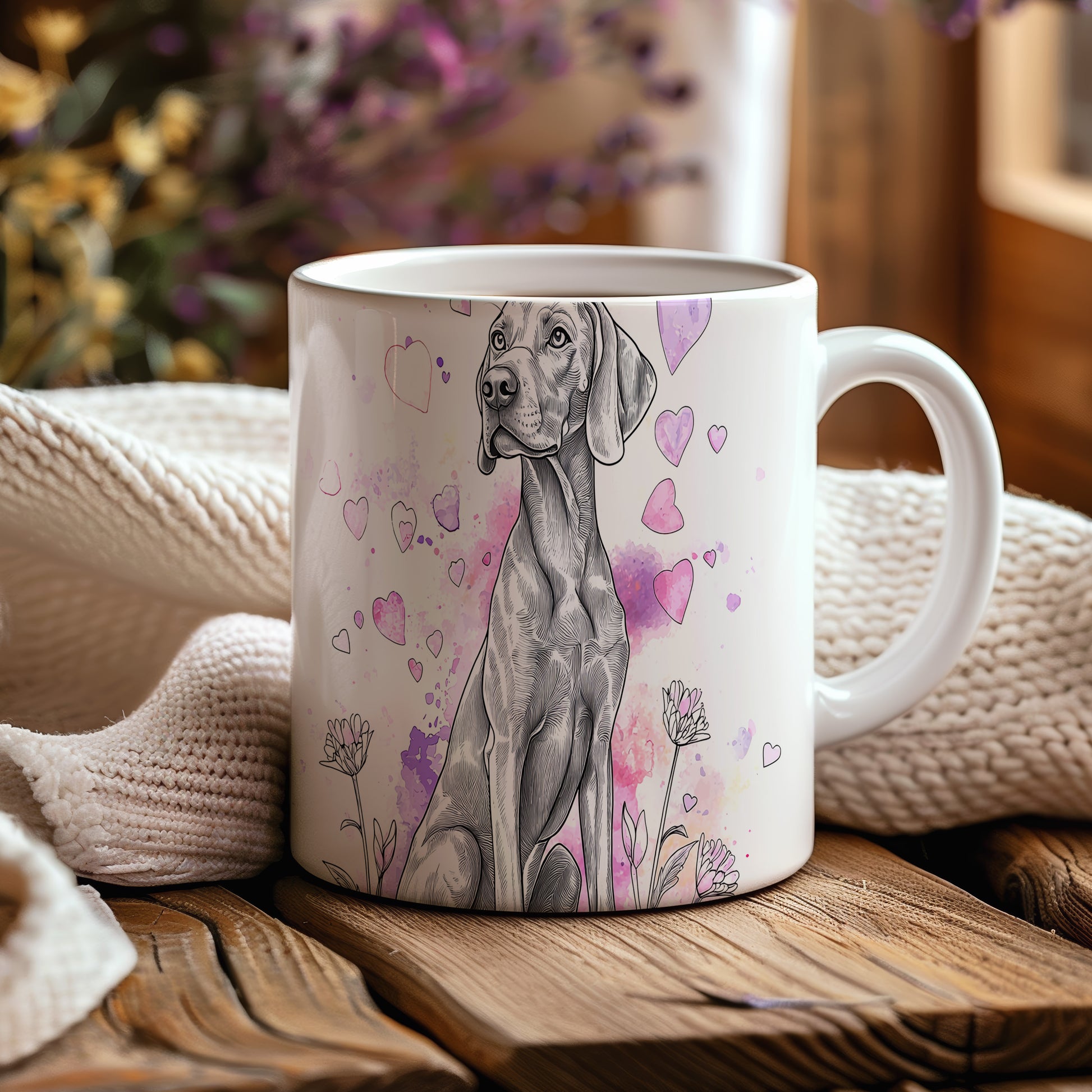 Hrnek s Výmarským ohařem a růžovými srdíčky