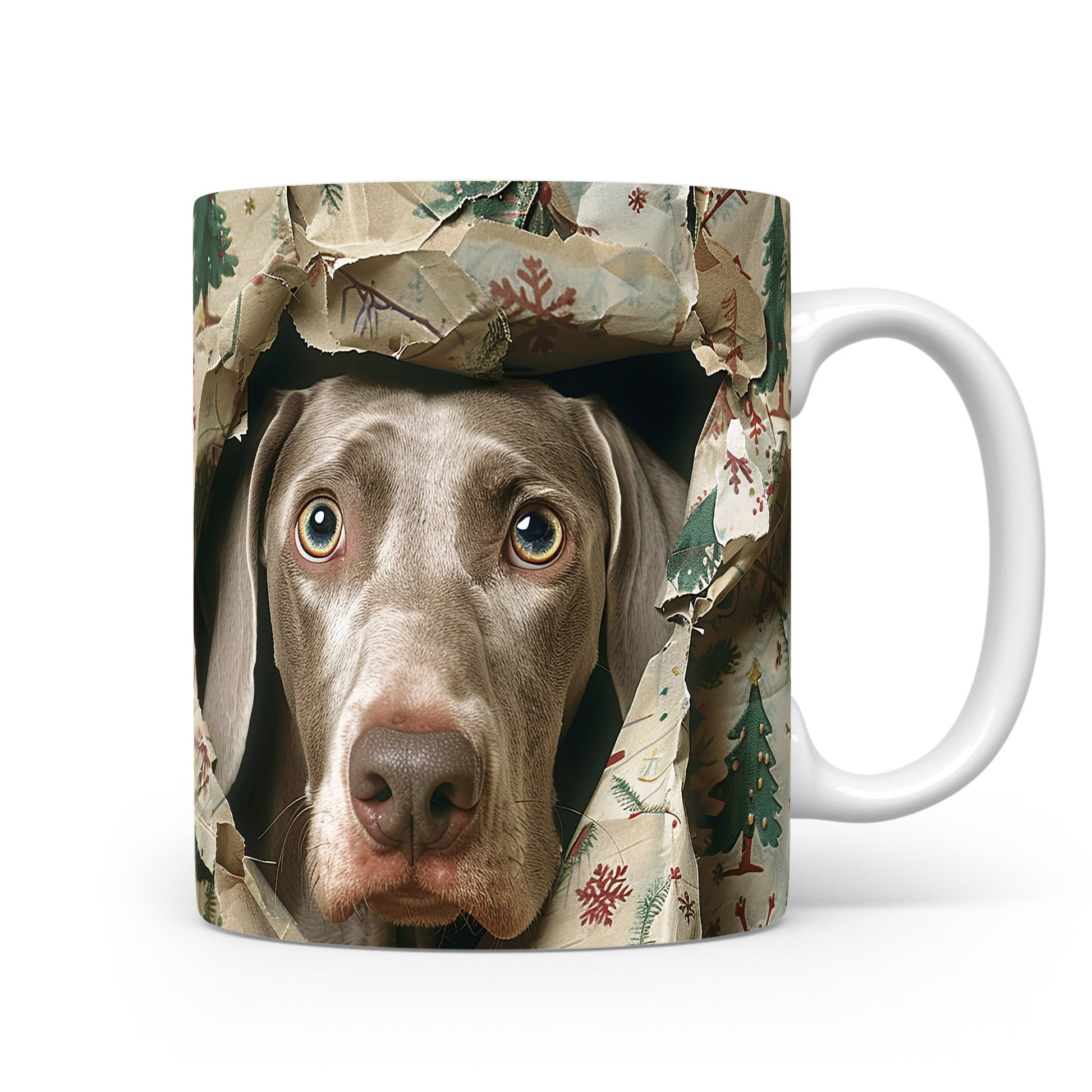 Na hrnku je zobrazen vyplašený pes, který se dívá z roztrženého vánočního papíru. Tento hrnek je ideálním dárkem pro milovníky psů a vánoční atmosféry. Materiál: keramika. Objem: 330 ml. Vhodné do myčky i mikrovlnky. Používáním tohoto hrnku si každý doušek kávy nebo čaje zpříjemníte veselým motivem.