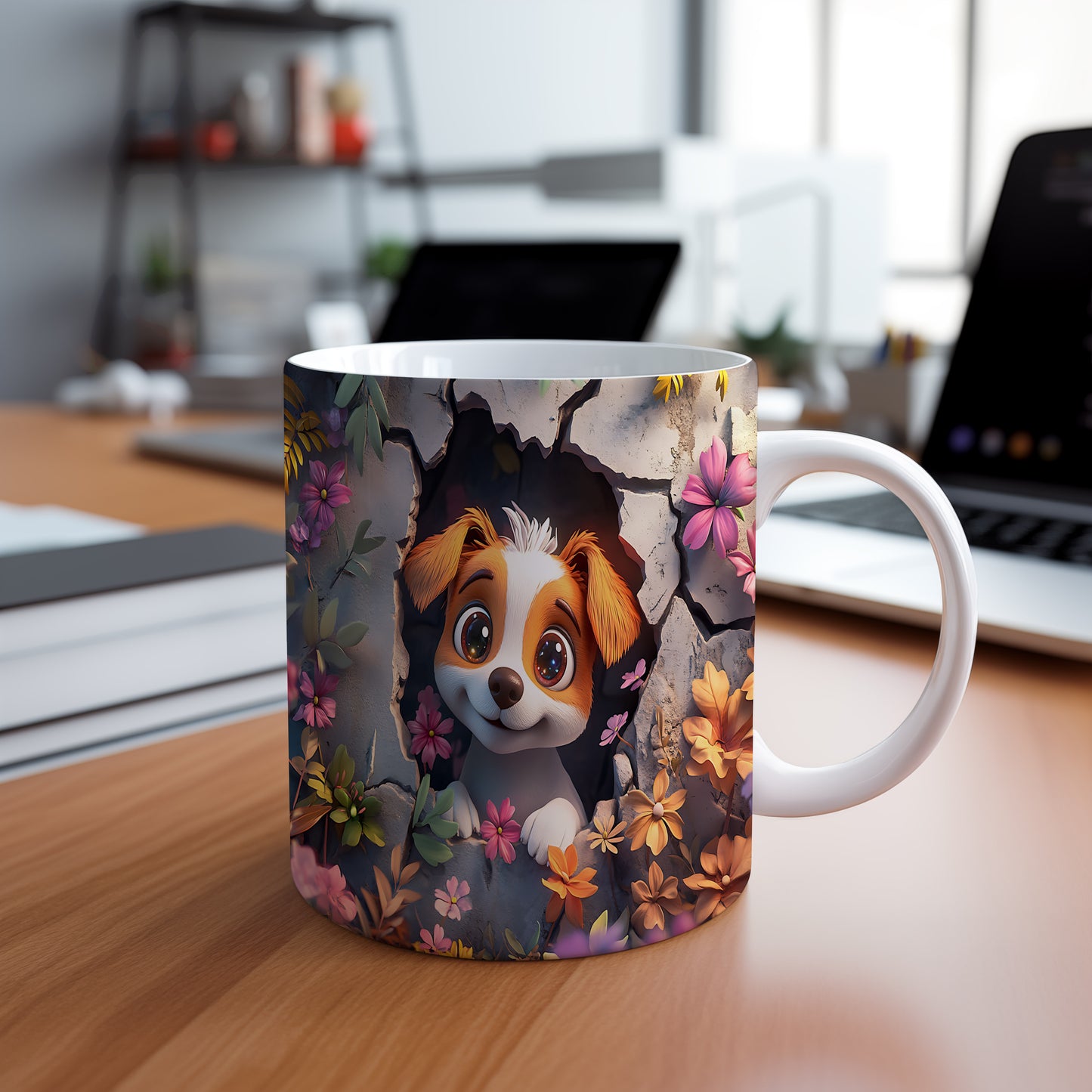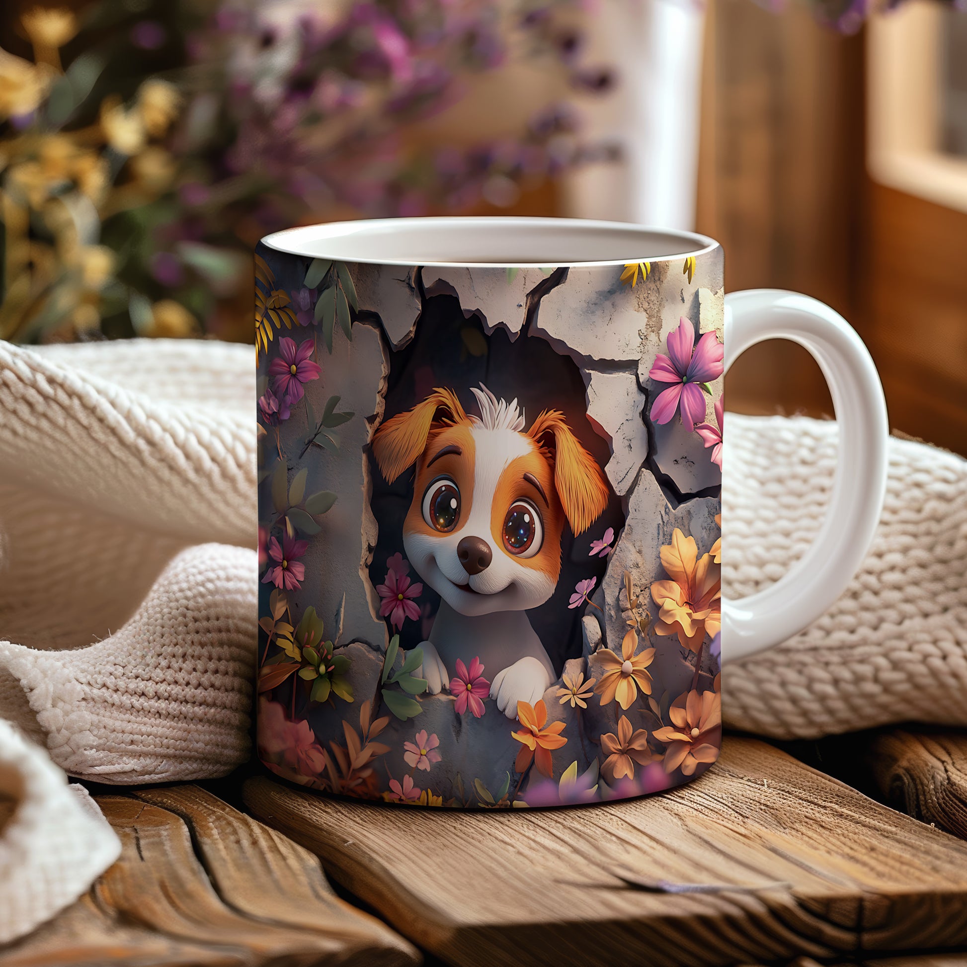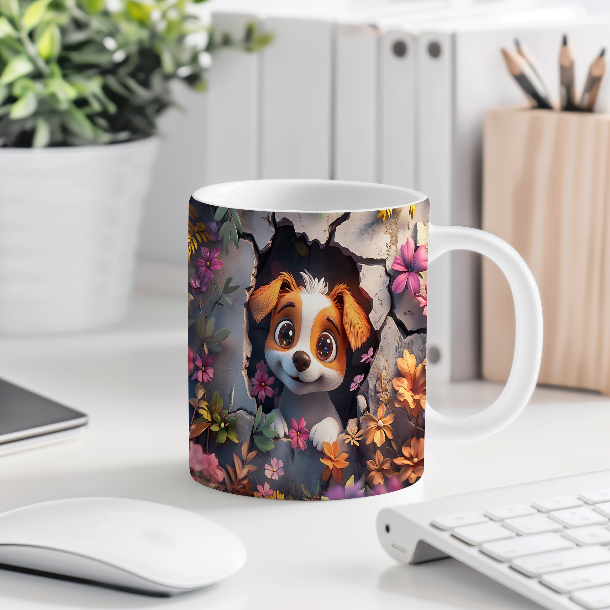 Tento keramický hrnek s veselým štěnětem a květinami je ideální pro milovníky psů a zvířat. Skvělý tip na dárek pro přátele nebo rodinu, kteří ocení originální design. Materiál: keramika. Objem: 330 ml. Vhodné do myčky i mikrovlnky. Používání tohoto hrnku přinese radost a útulnost do každého dne.