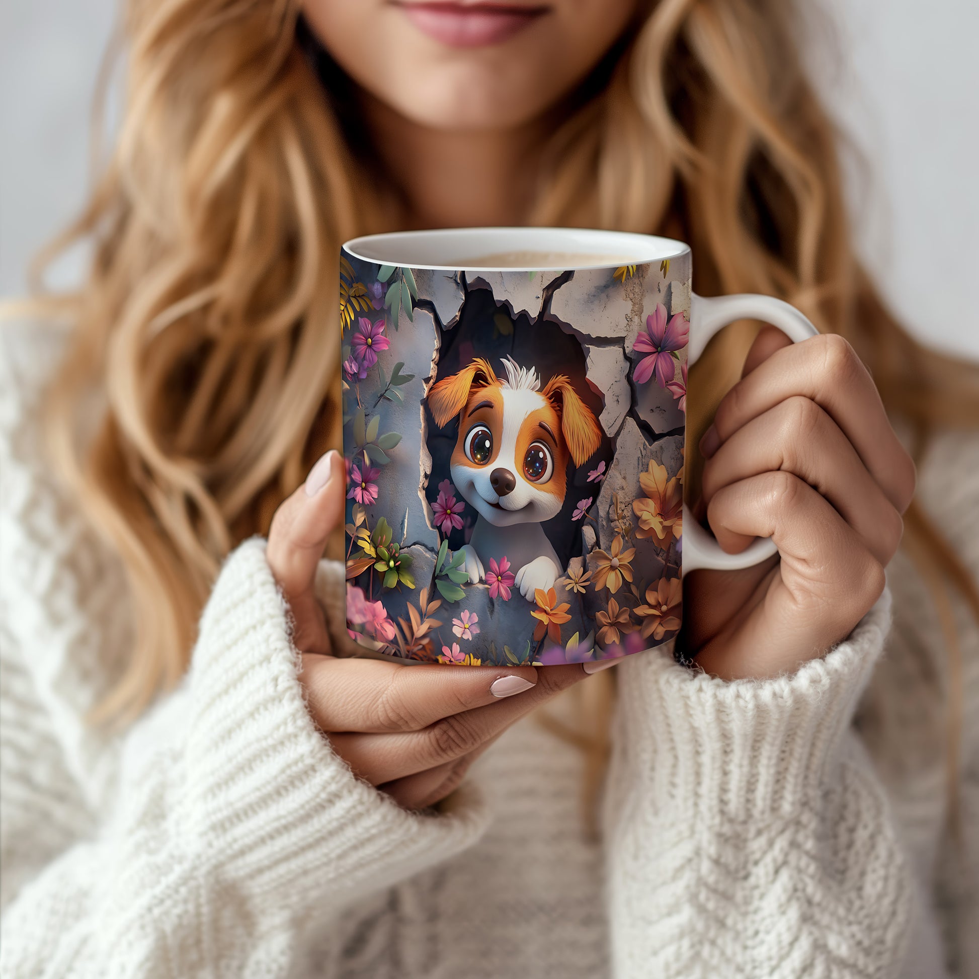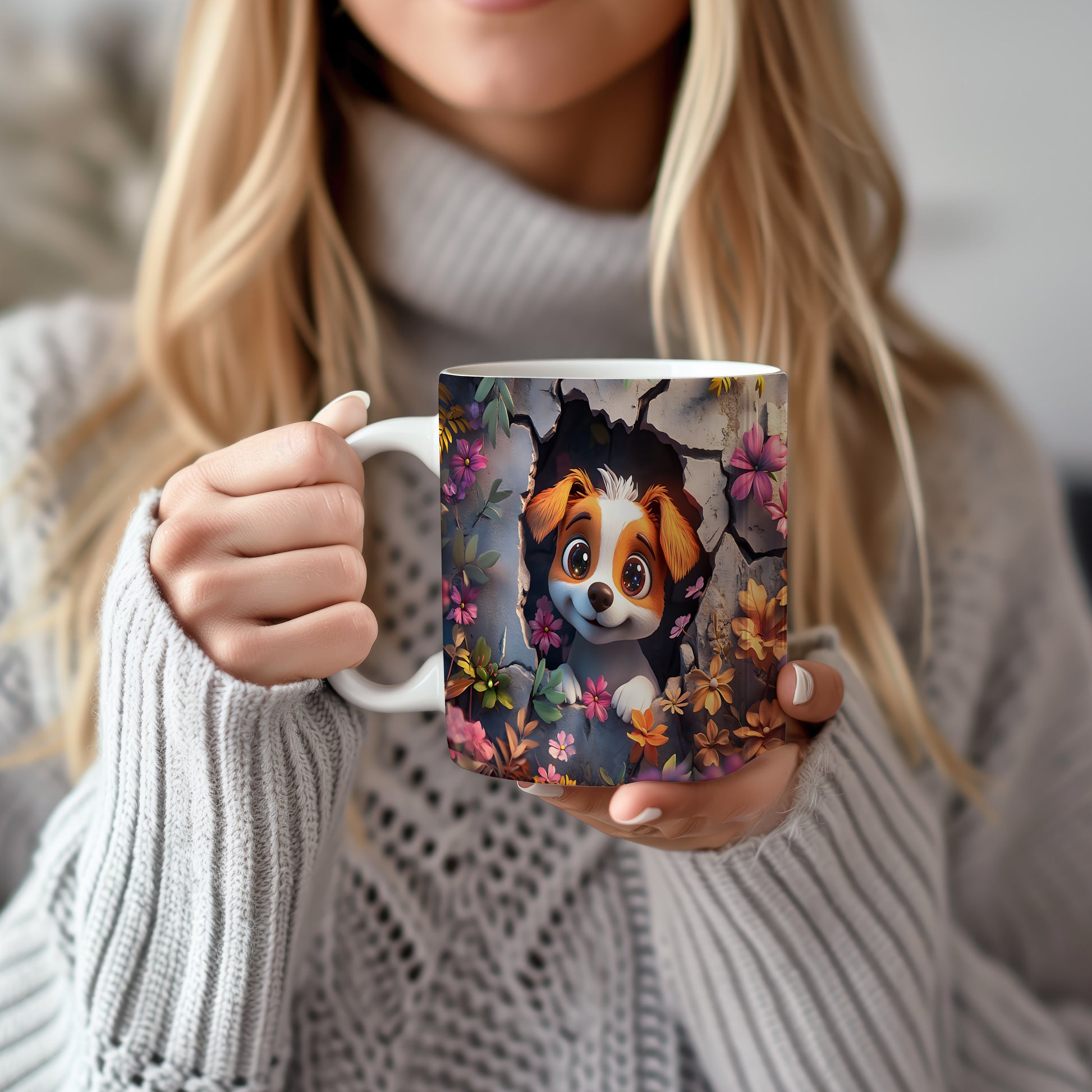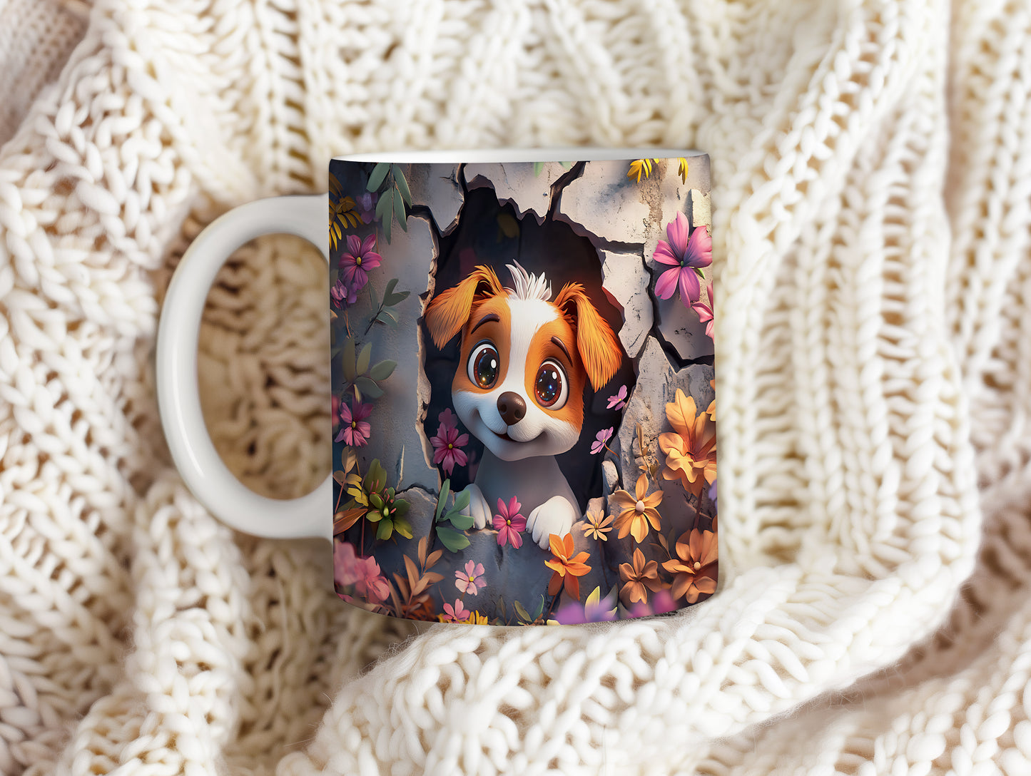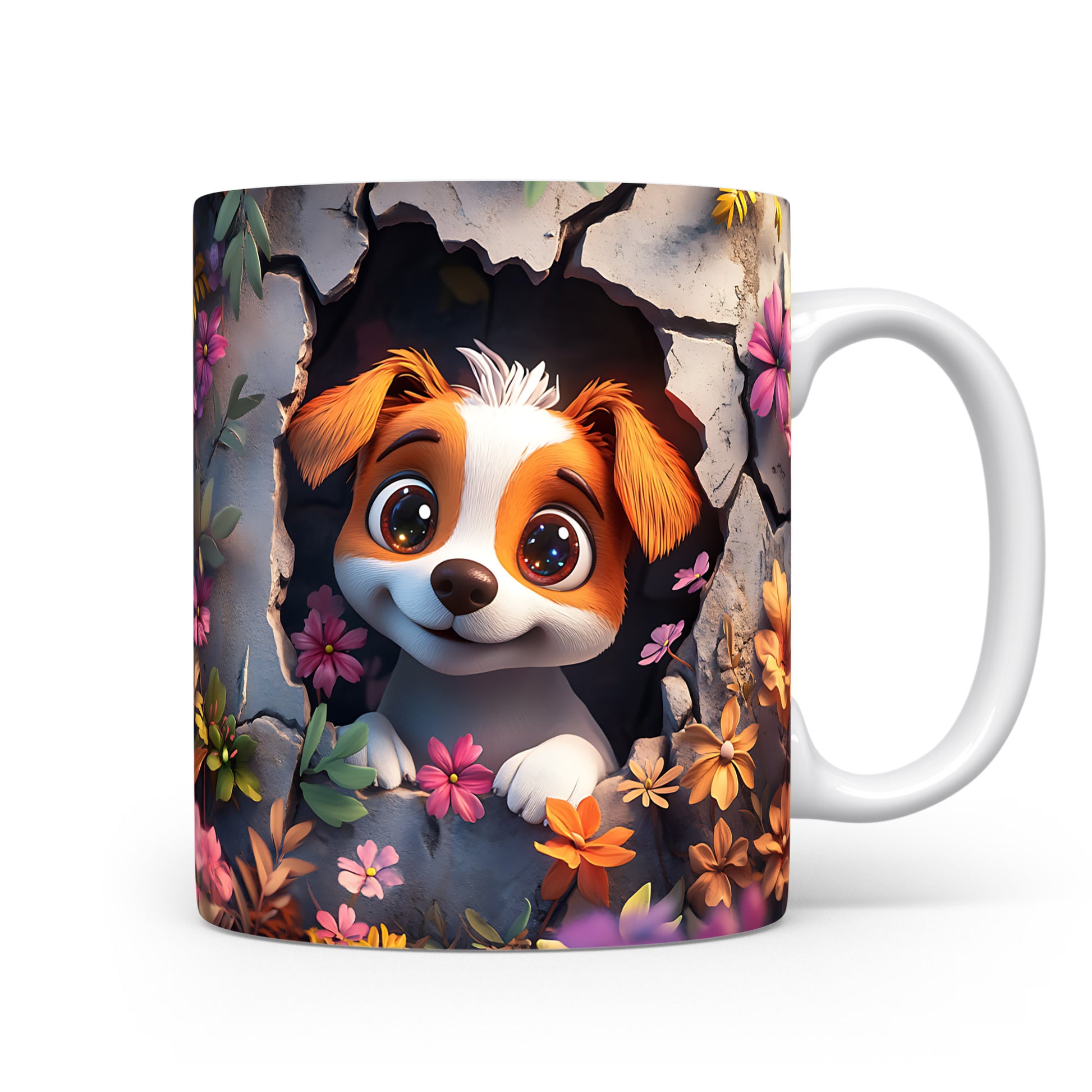 Tento keramický hrnek s veselým štěnětem a květinami je ideální pro milovníky psů a zvířat. Skvělý tip na dárek pro přátele nebo rodinu, kteří ocení originální design. Materiál: keramika. Objem: 330 ml. Vhodné do myčky i mikrovlnky. Používání tohoto hrnku přinese radost a útulnost do každého dne.