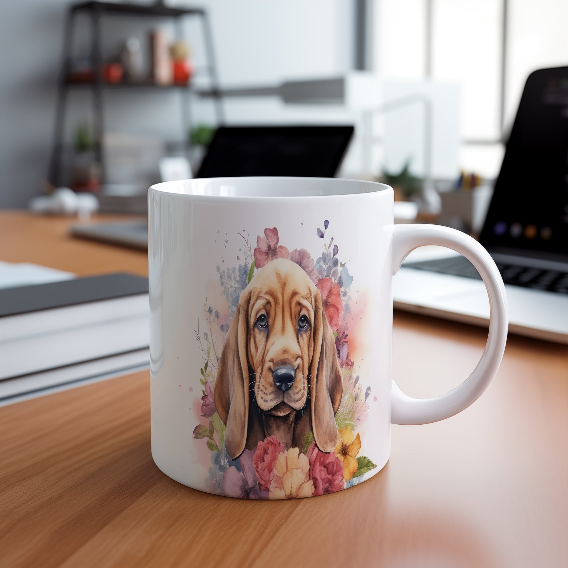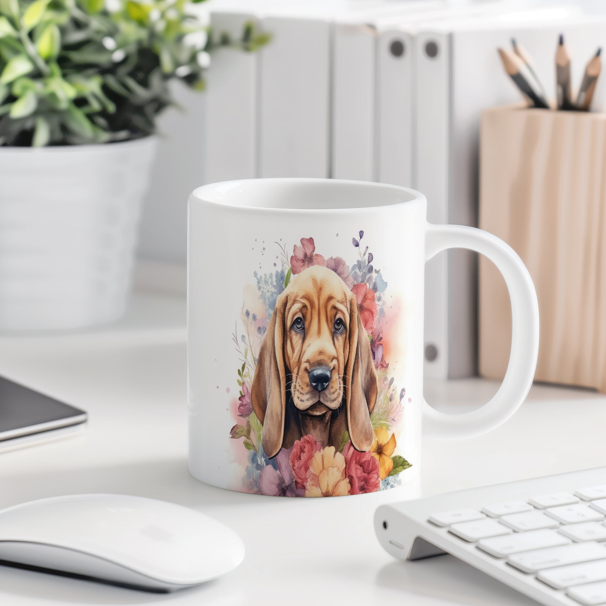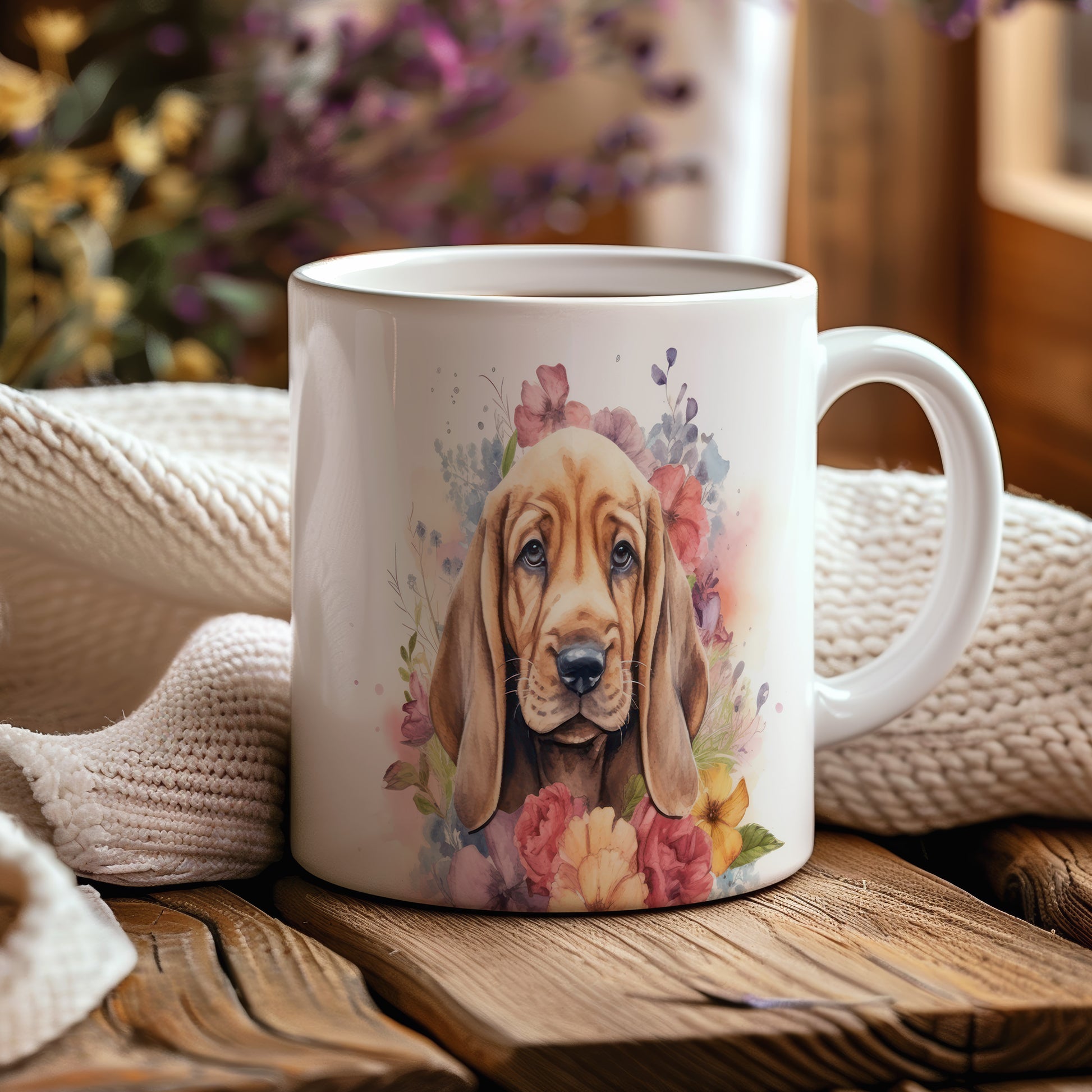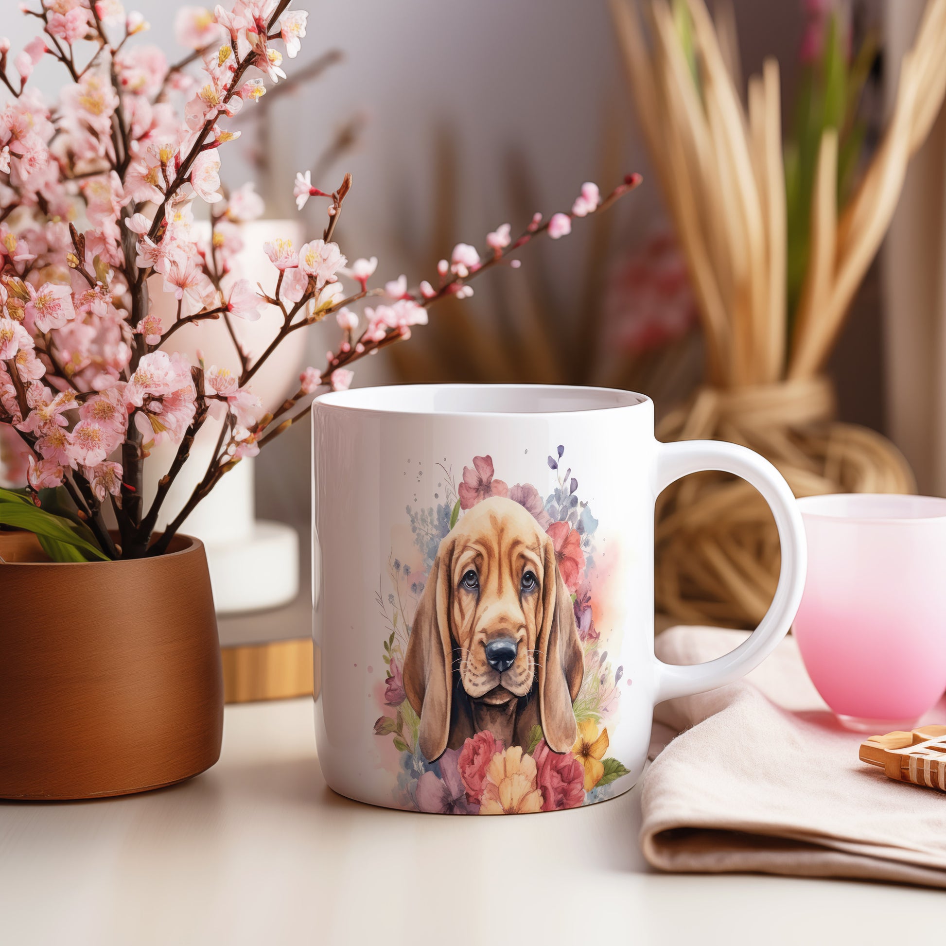 Hrnek s bloodhound štěnětem a květinovým kouzlem