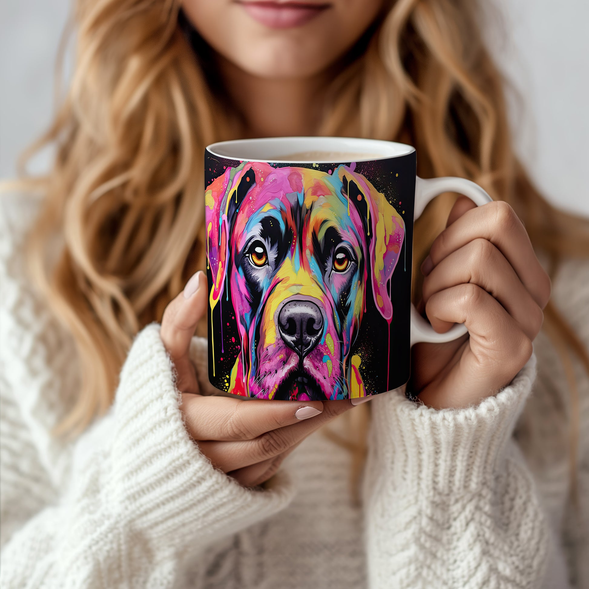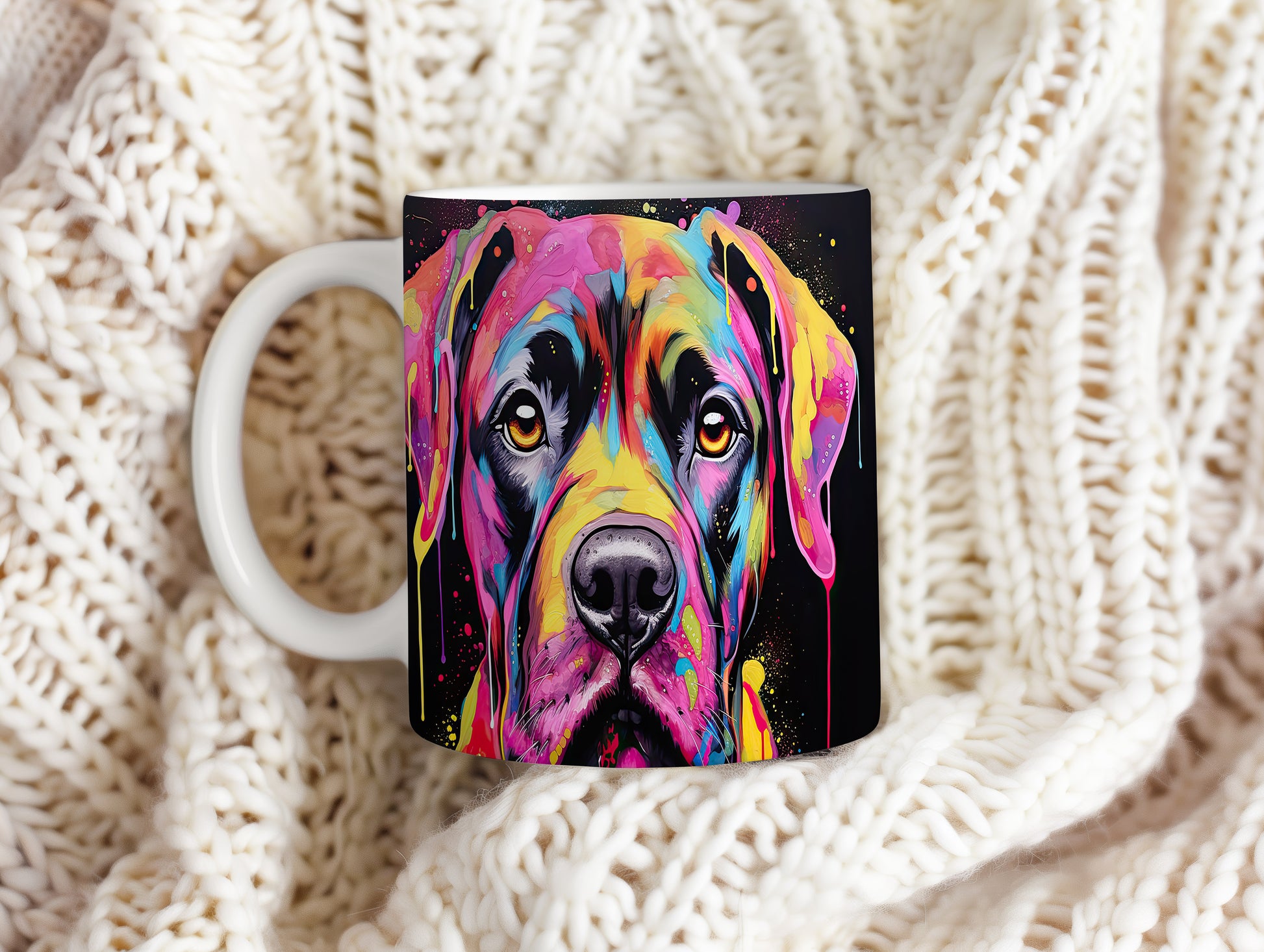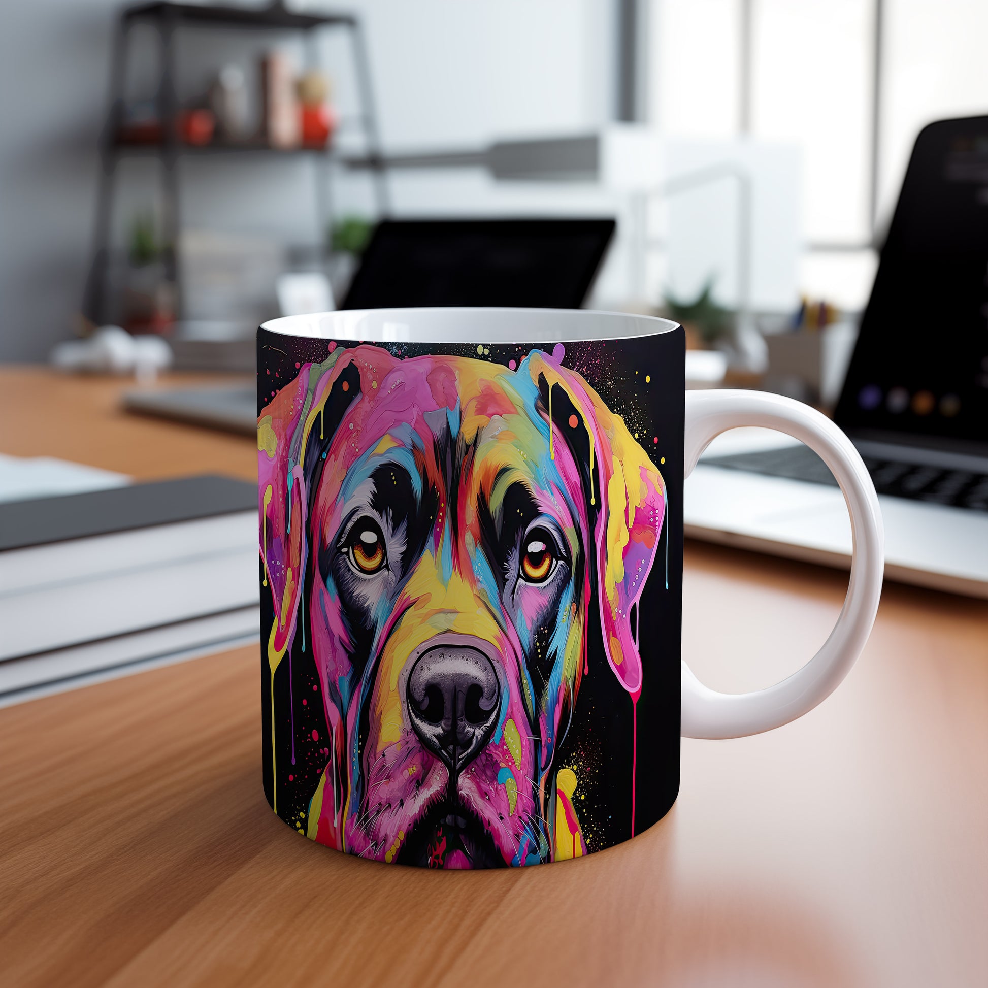 Hrnek s motivem psa v jasných barvách a abstraktním stylu. Tento keramický hrnek je ideální pro každého milovníka psů a skvělým dárkem pro přátele či rodinu. Materiál: keramika. Objem: 330 ml. Vhodné do myčky i mikrovlnky. Používání tohoto hrnku přináší radost a oživí každé pití.