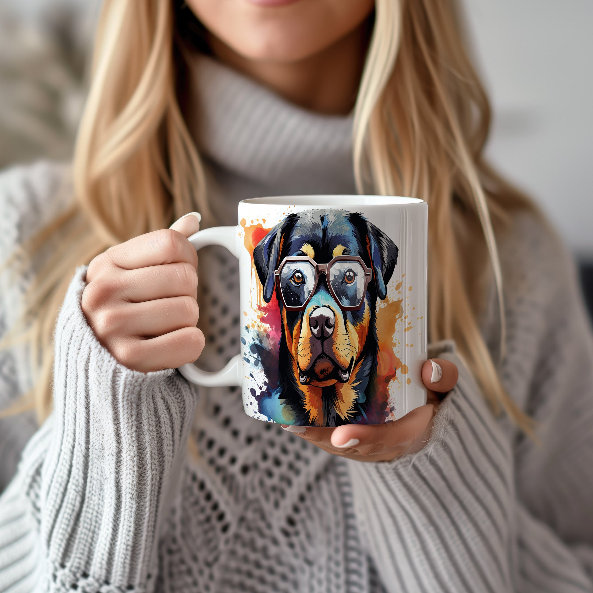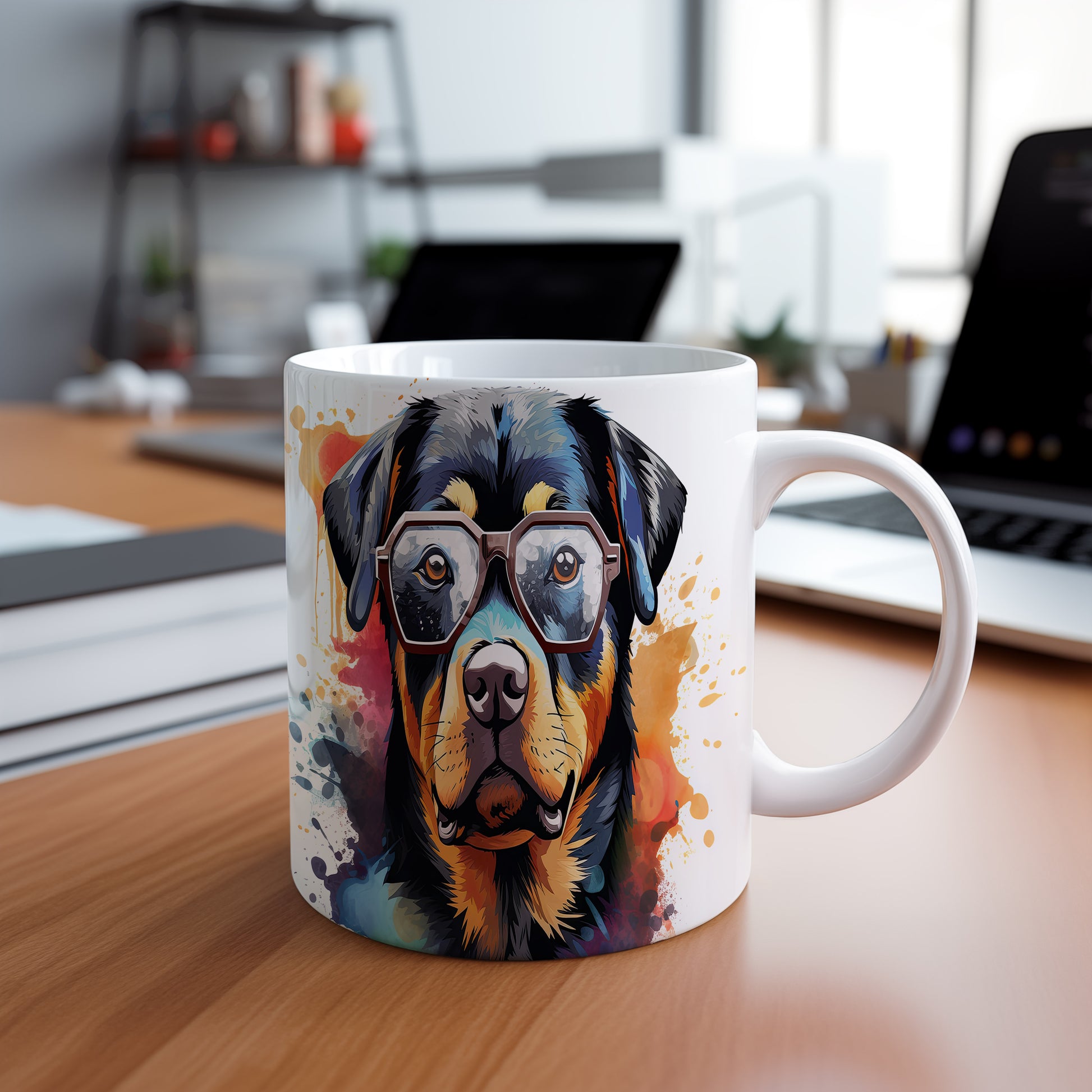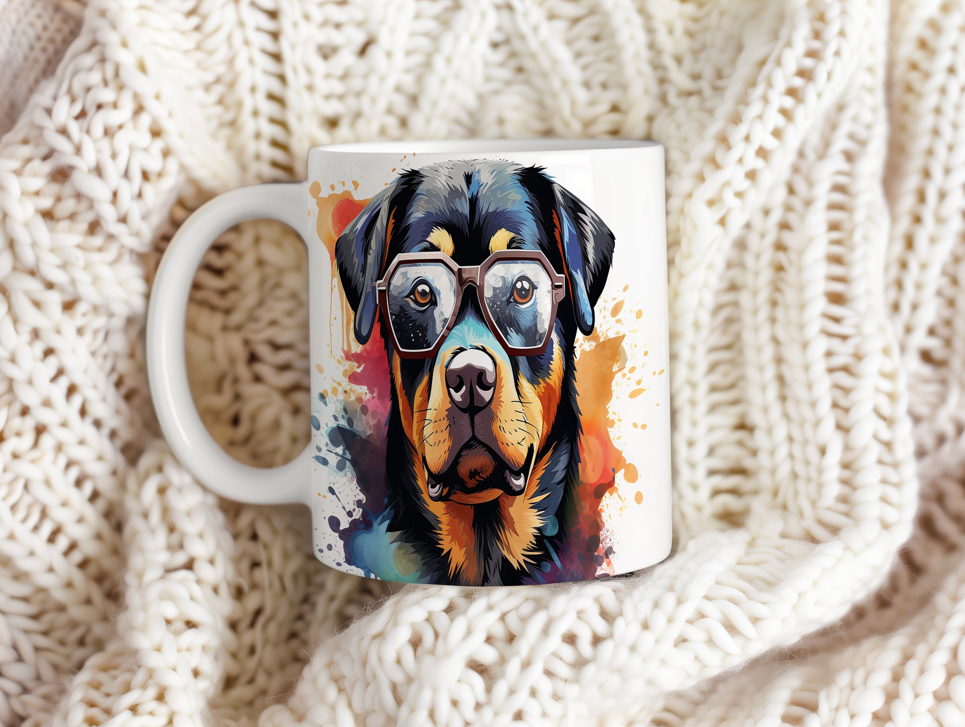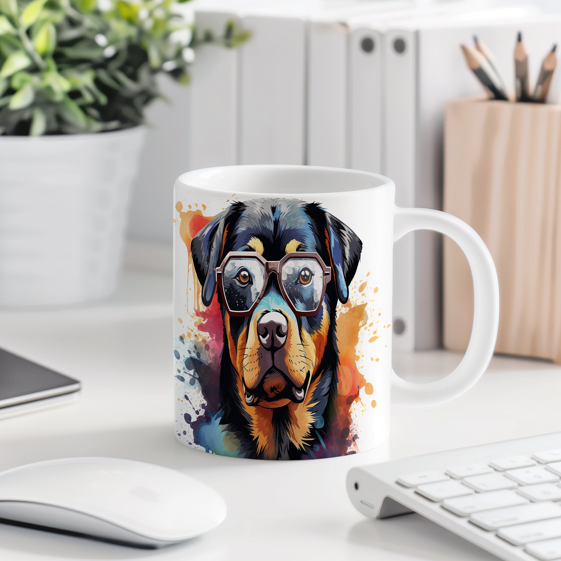 Hrnek s rottweilerem v brýlích je stylový a barevný kousek, který potěší každého milovníka psů. Tento hrnek je skvělým dárkem pro přátele nebo rodinu, kteří mají rádi originální design. Materiál: keramika. Objem: 330 ml. Vhodné do myčky i mikrovlnky. Díky kvalitnímu provedení si můžete vychutnat svůj oblíbený nápoj s úsměvem.