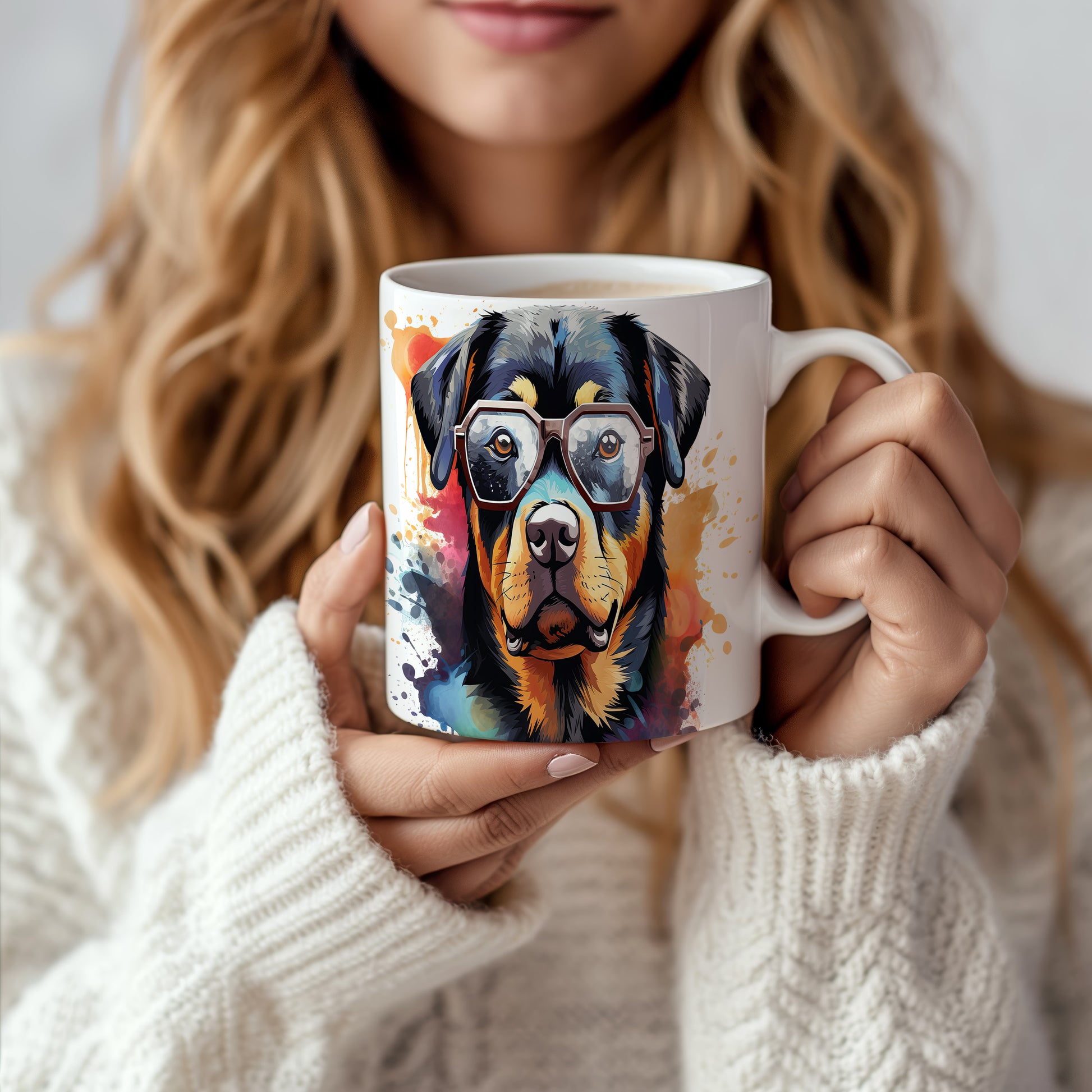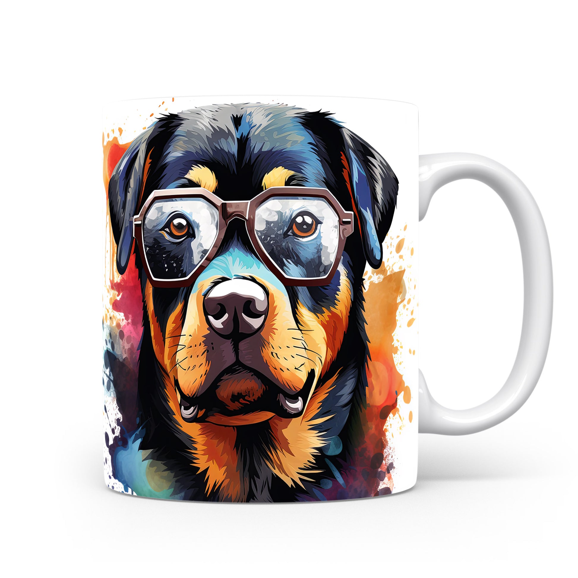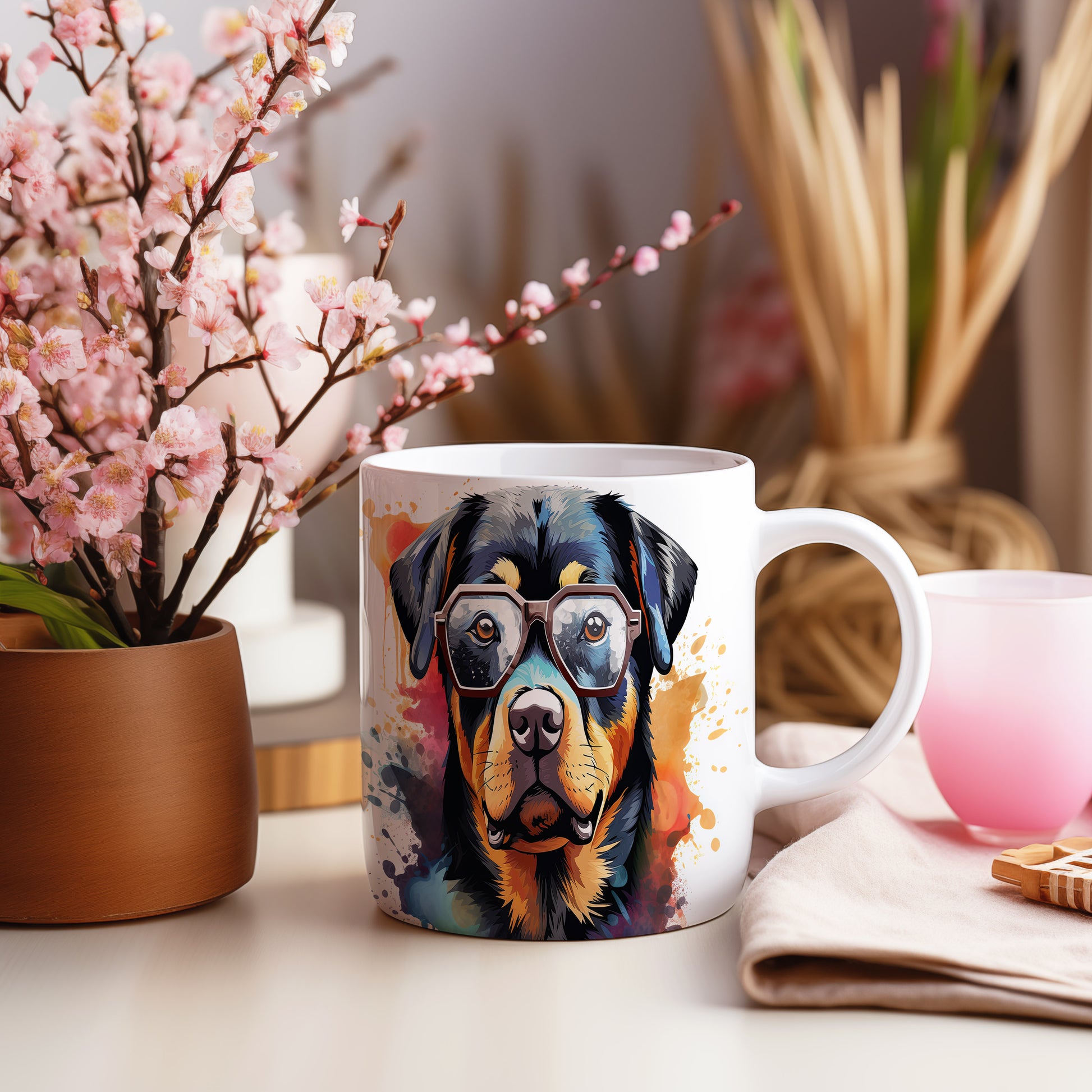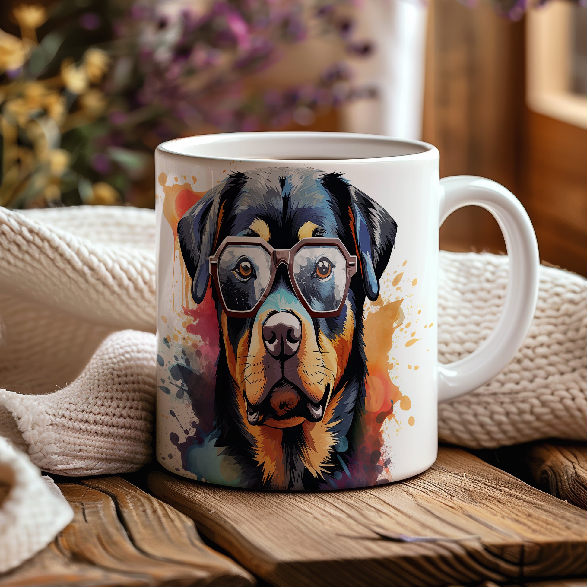Hrnek s rottweilerem v brýlích je stylový a barevný kousek, který potěší každého milovníka psů. Tento hrnek je skvělým dárkem pro přátele nebo rodinu, kteří mají rádi originální design. Materiál: keramika. Objem: 330 ml. Vhodné do myčky i mikrovlnky. Díky kvalitnímu provedení si můžete vychutnat svůj oblíbený nápoj s úsměvem.