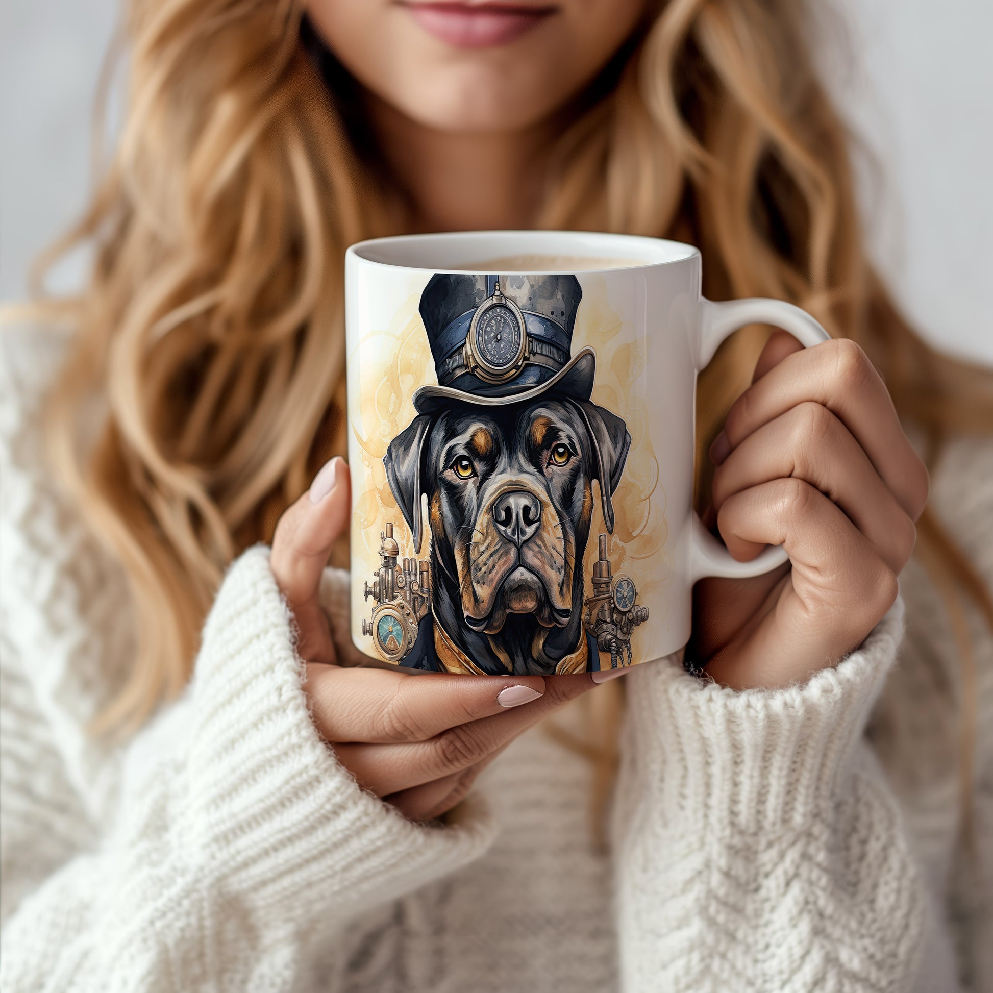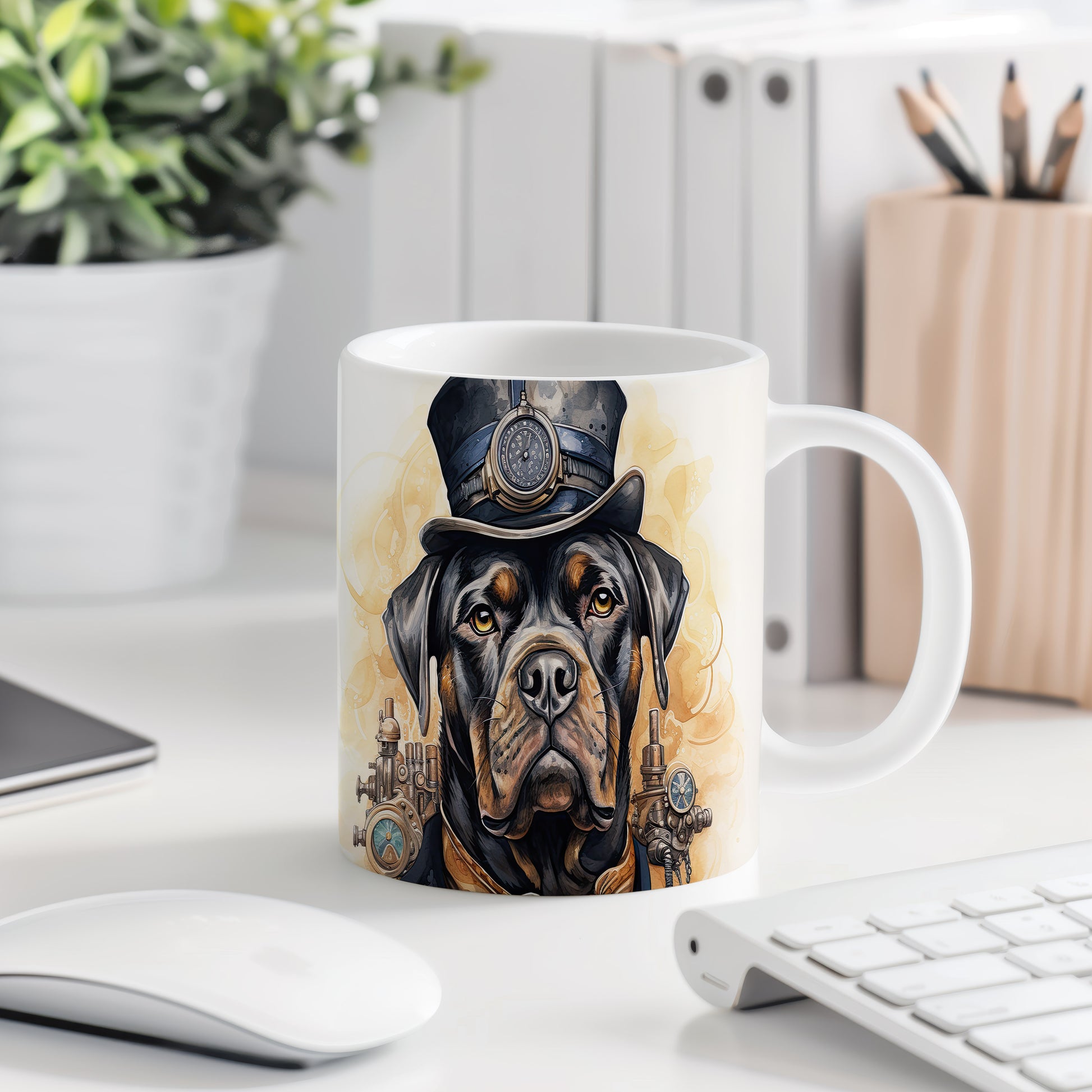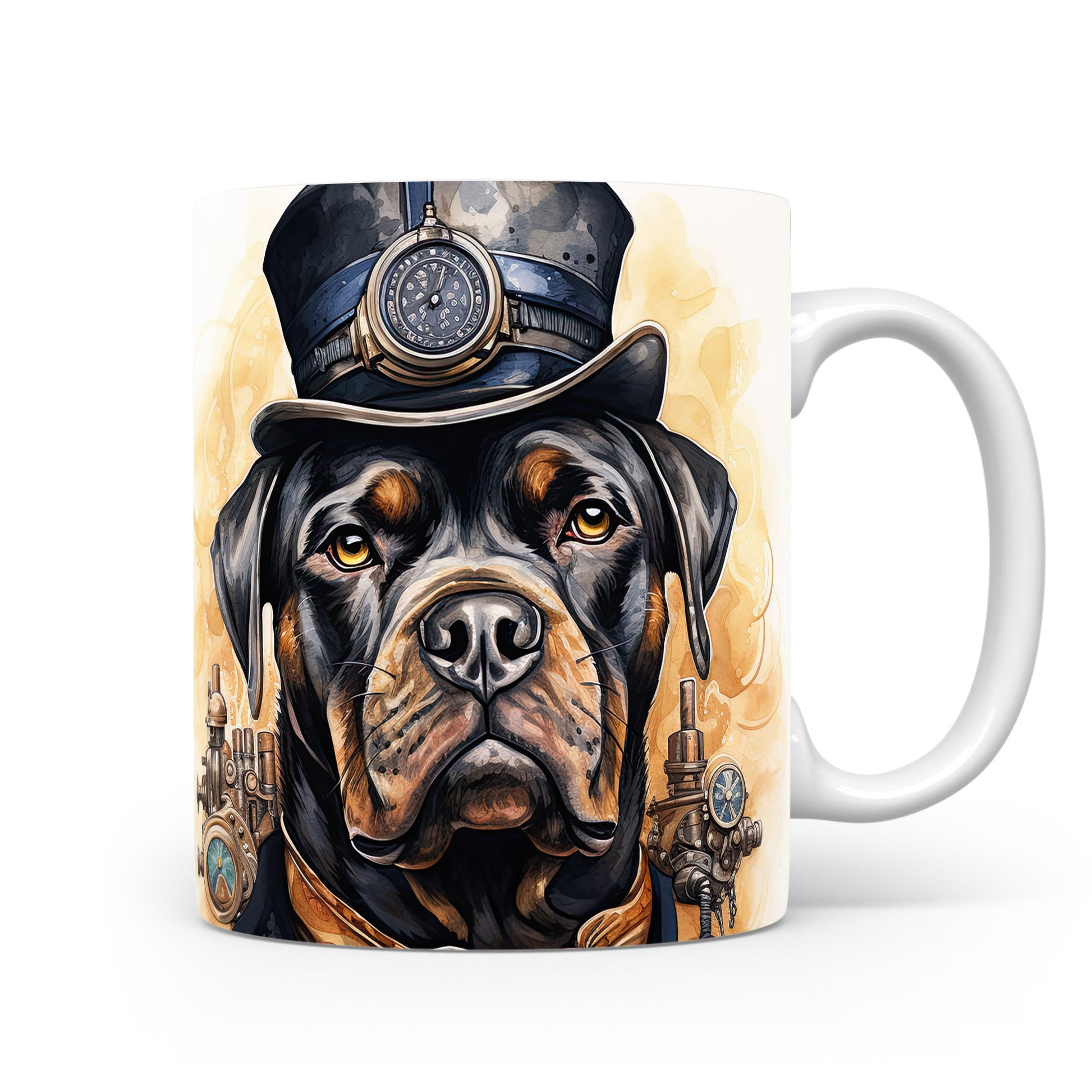 Stylový hrnek s motivem rottweilera v cylindru. Tento hrnek je ideální pro milovníky psů a skvělým dárkem pro každého, kdo ocení originální design. Materiál: keramika. Objem: 330 ml. Vhodné do myčky i mikrovlnky. Díky svému jedinečnému vzhledu přináší radost do každodenního pití.