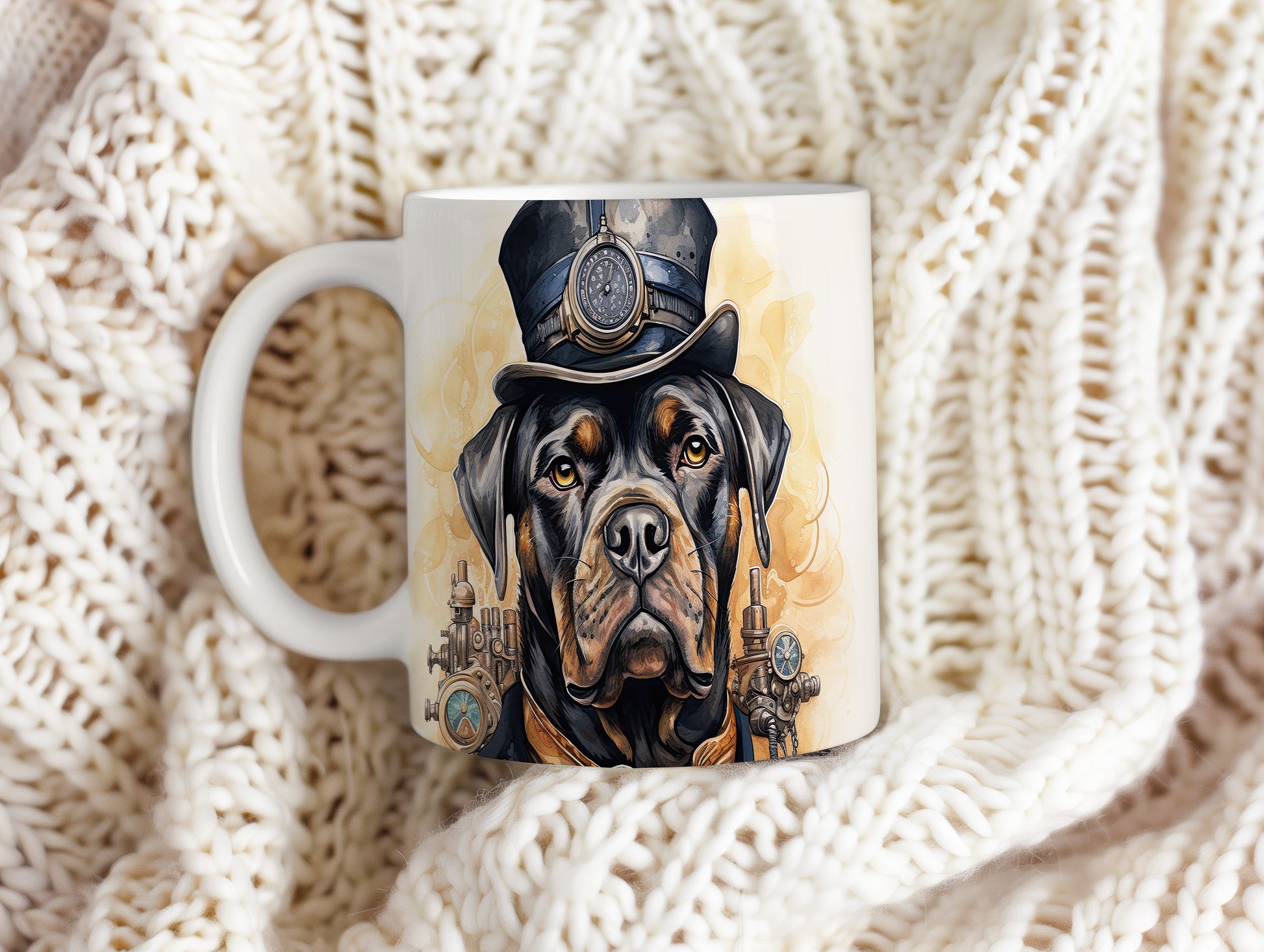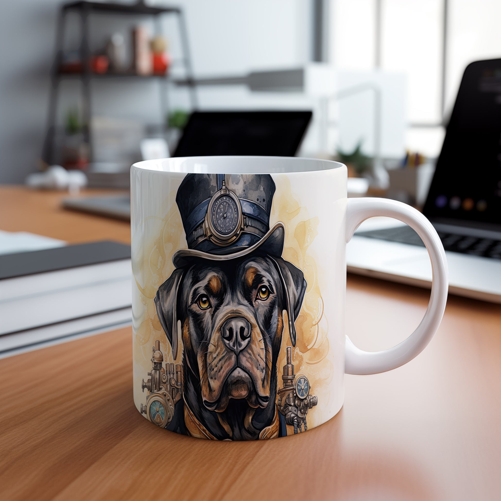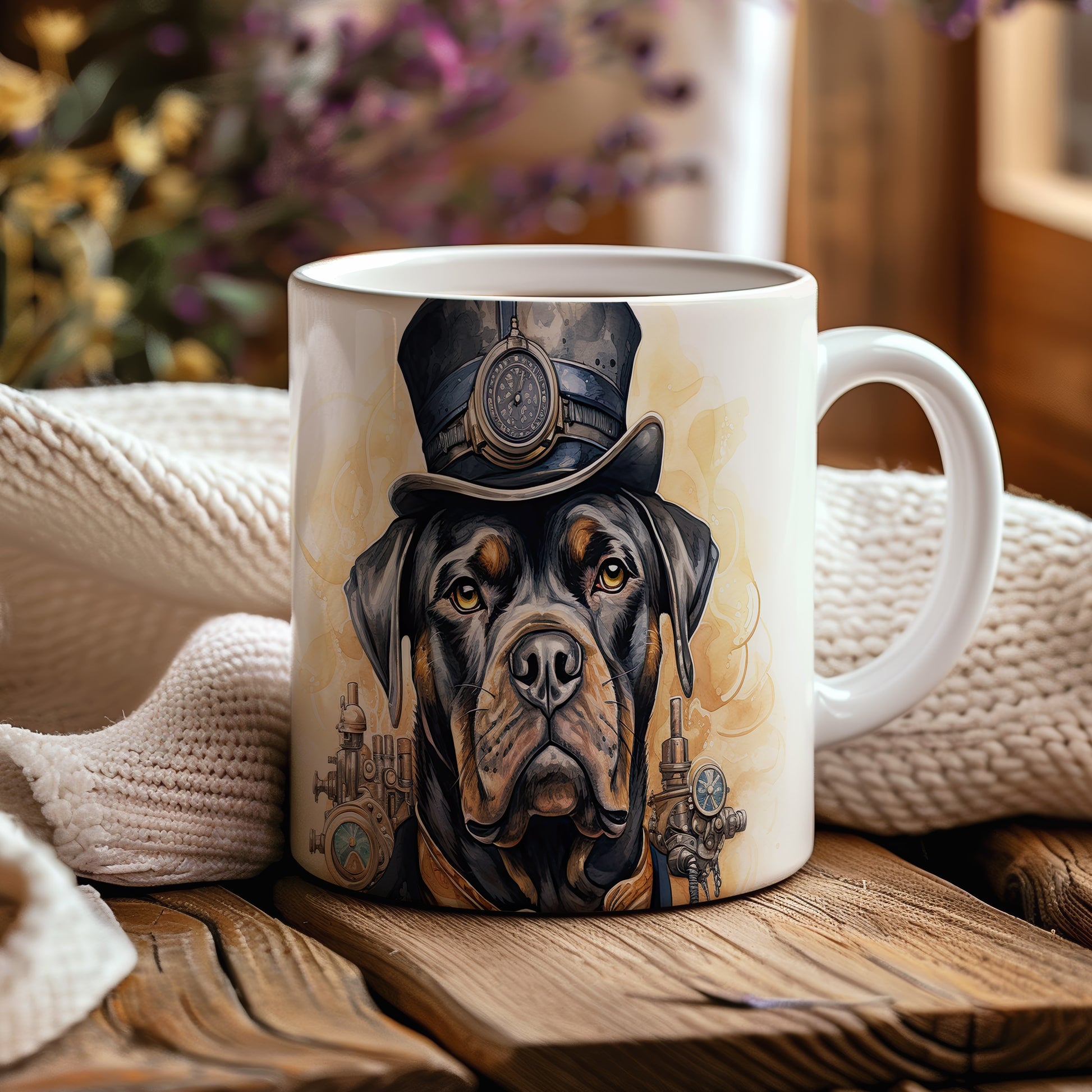 Stylový hrnek s motivem rottweilera v cylindru. Tento hrnek je ideální pro milovníky psů a skvělým dárkem pro každého, kdo ocení originální design. Materiál: keramika. Objem: 330 ml. Vhodné do myčky i mikrovlnky. Díky svému jedinečnému vzhledu přináší radost do každodenního pití.