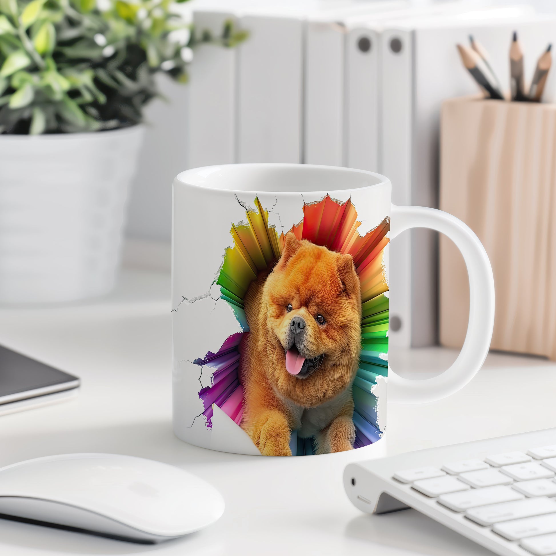 Tento keramický hrnek s motivem rozkošného psa plemene Chow je skvělou volbou pro všechny milovníky psů. Je ideální jako dárek pro přátele nebo rodinu, kteří mají rádi tento jedinečný plemeno. Materiál: keramika. Objem: 330 ml. Vhodné do myčky i mikrovlnky. Používání tohoto hrnku přináší radost z každého doušku a potěšení z oblíbeného nápoje.
