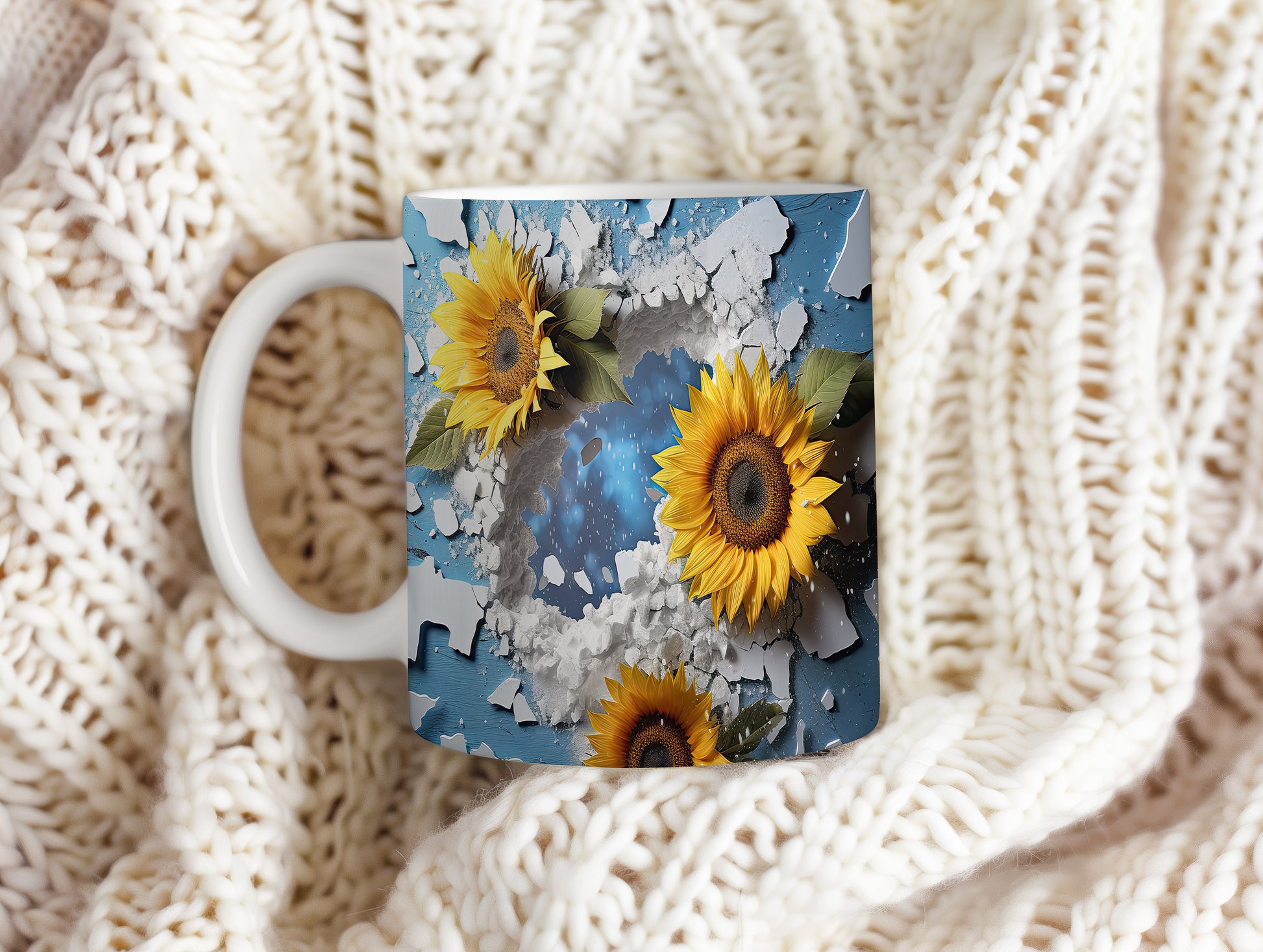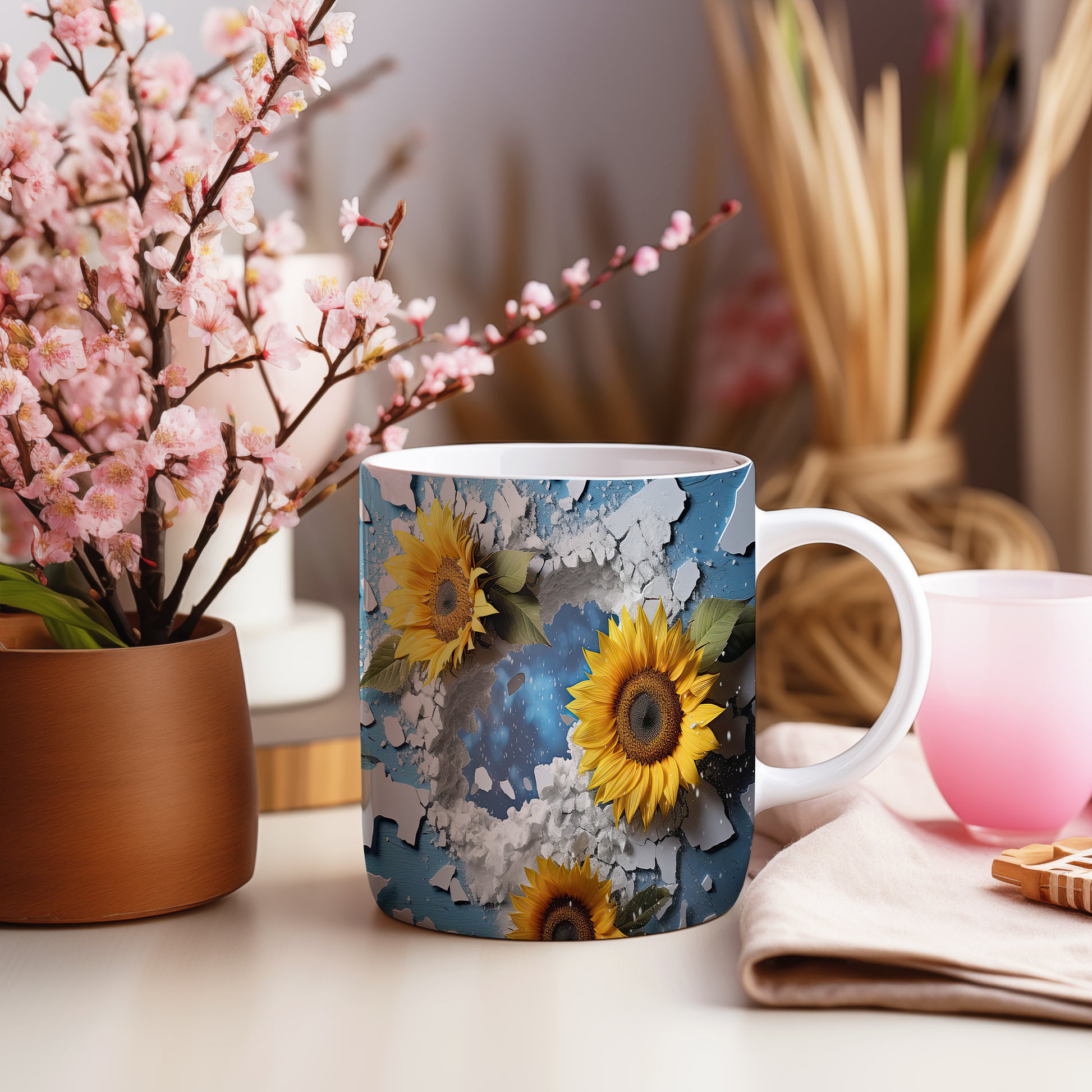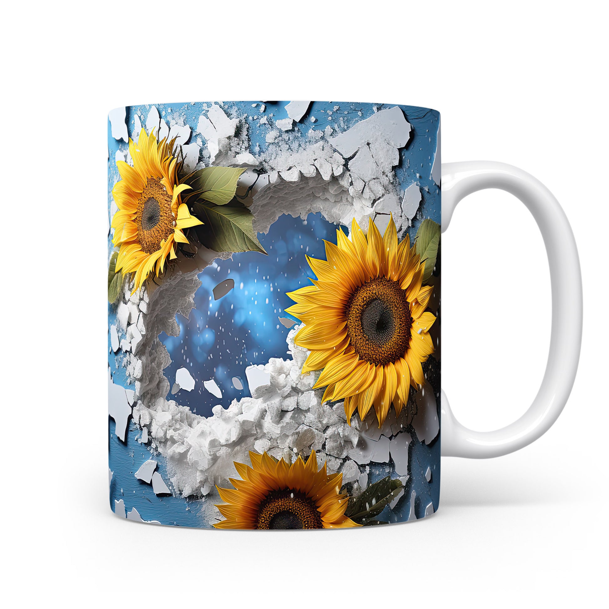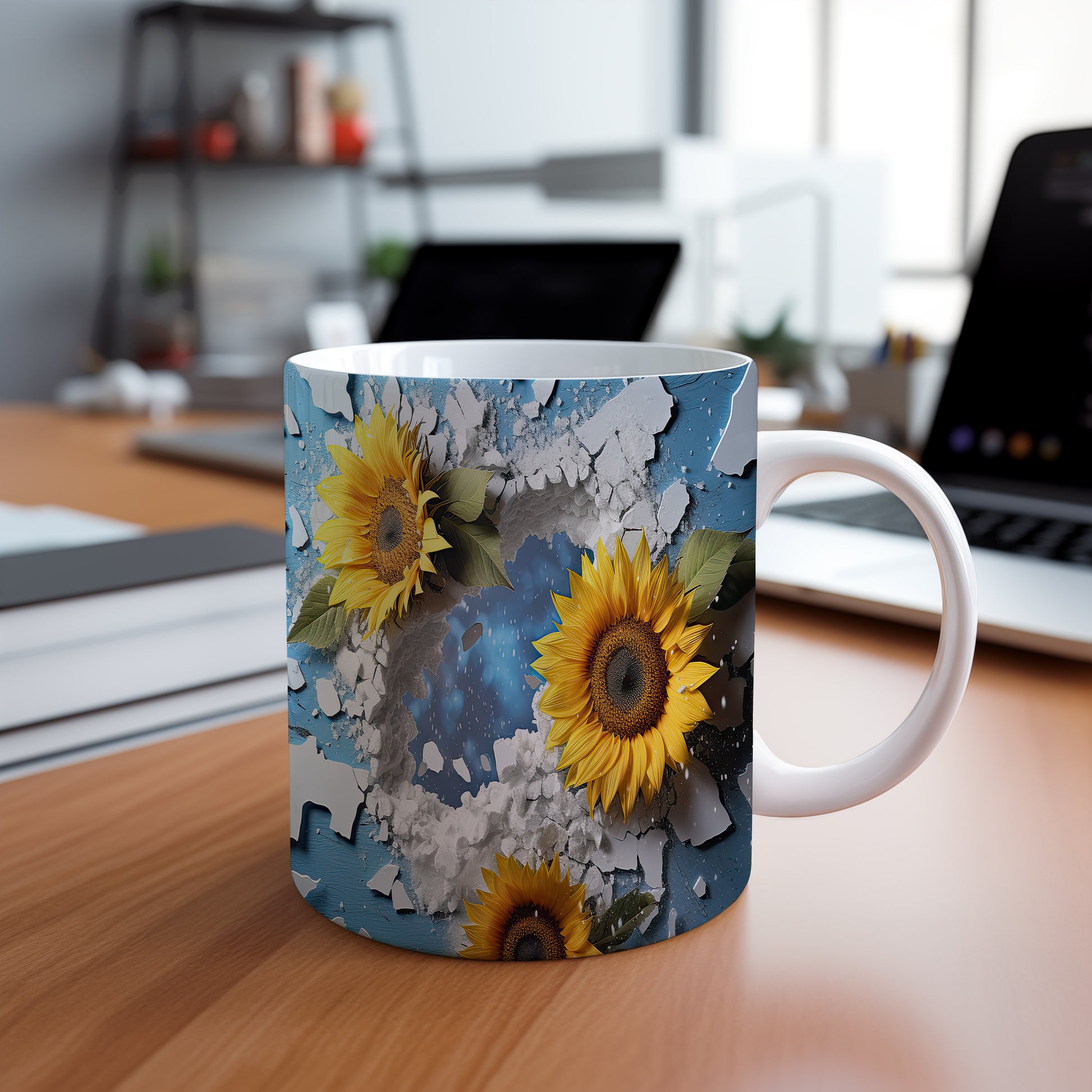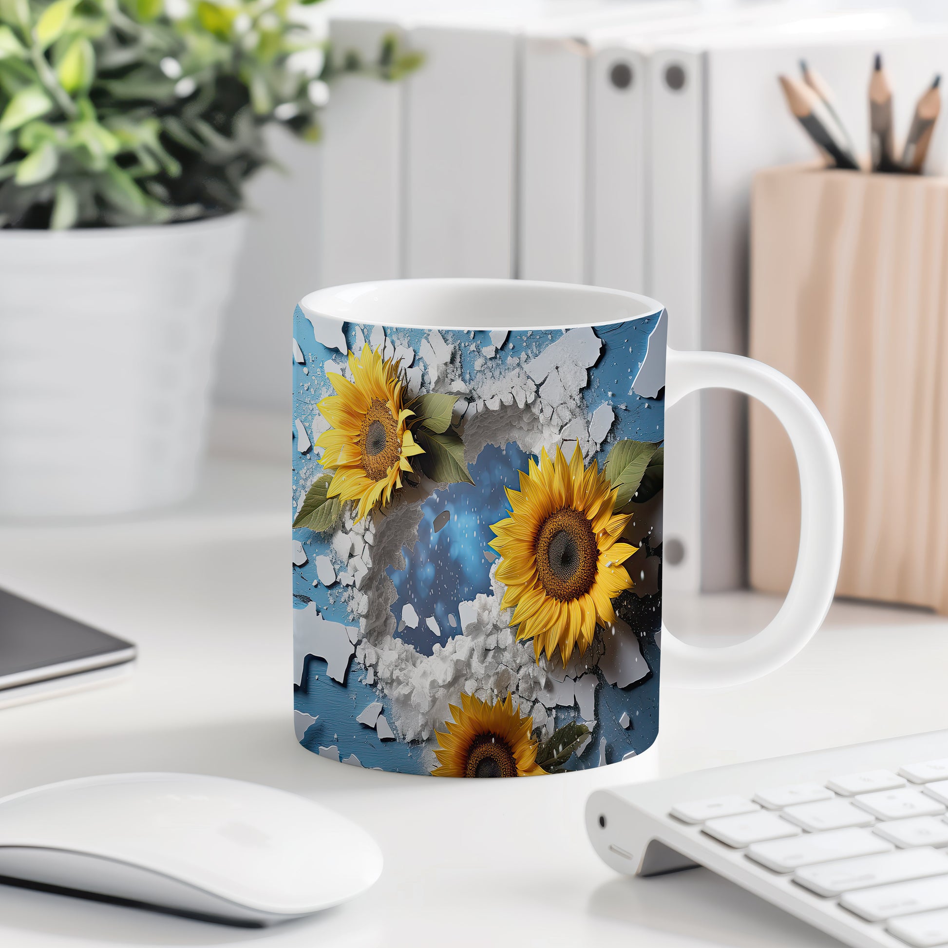 Hrnek s rozkvetlými slunečnicemi 3D efektem
