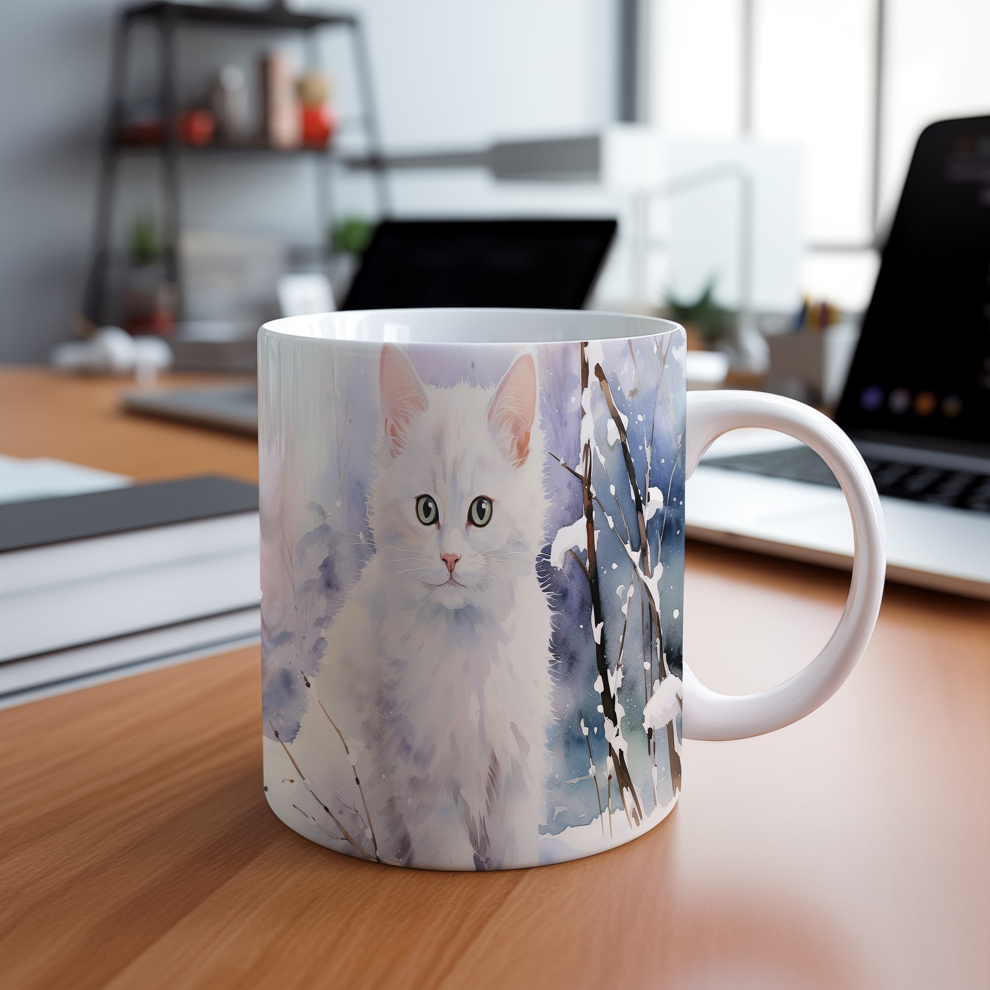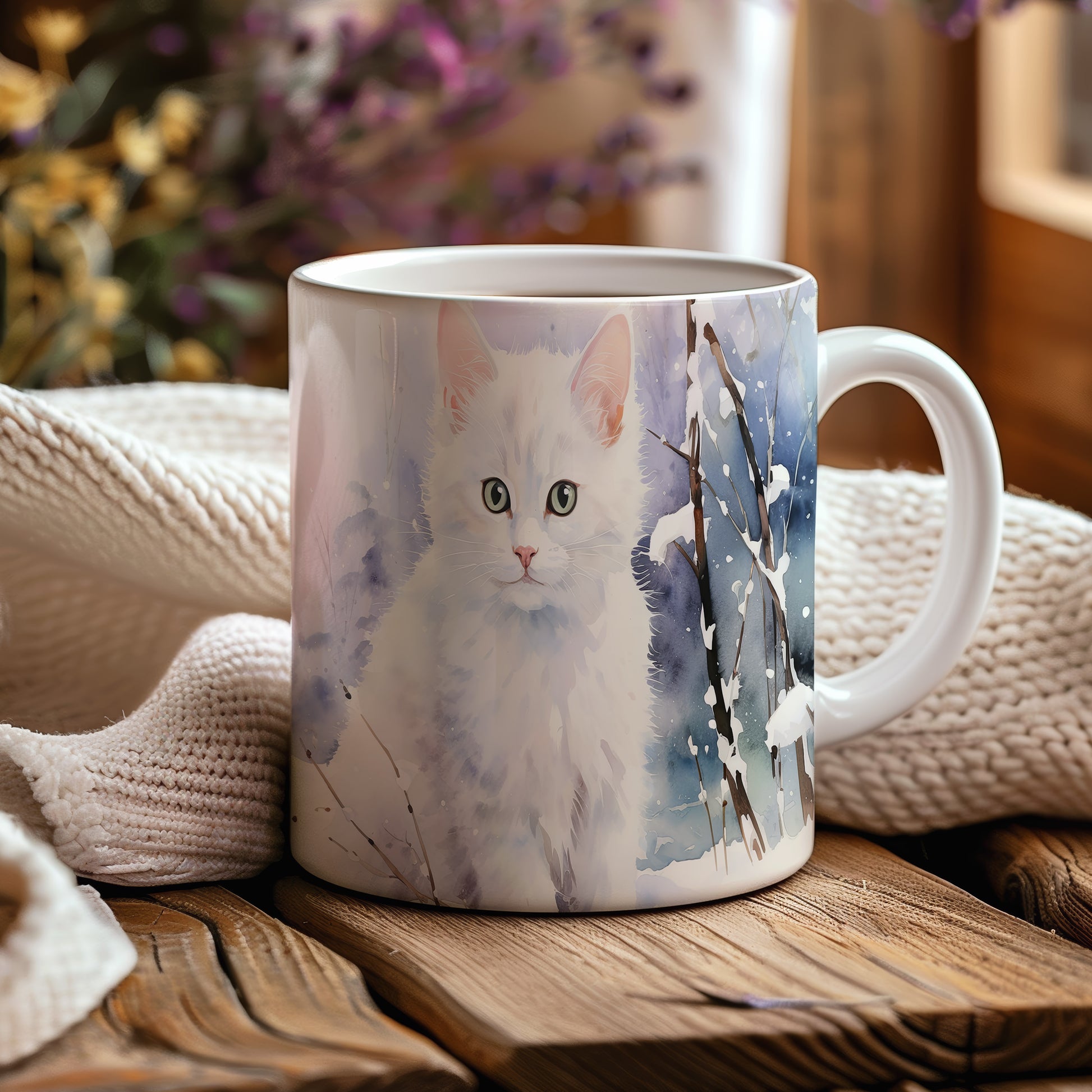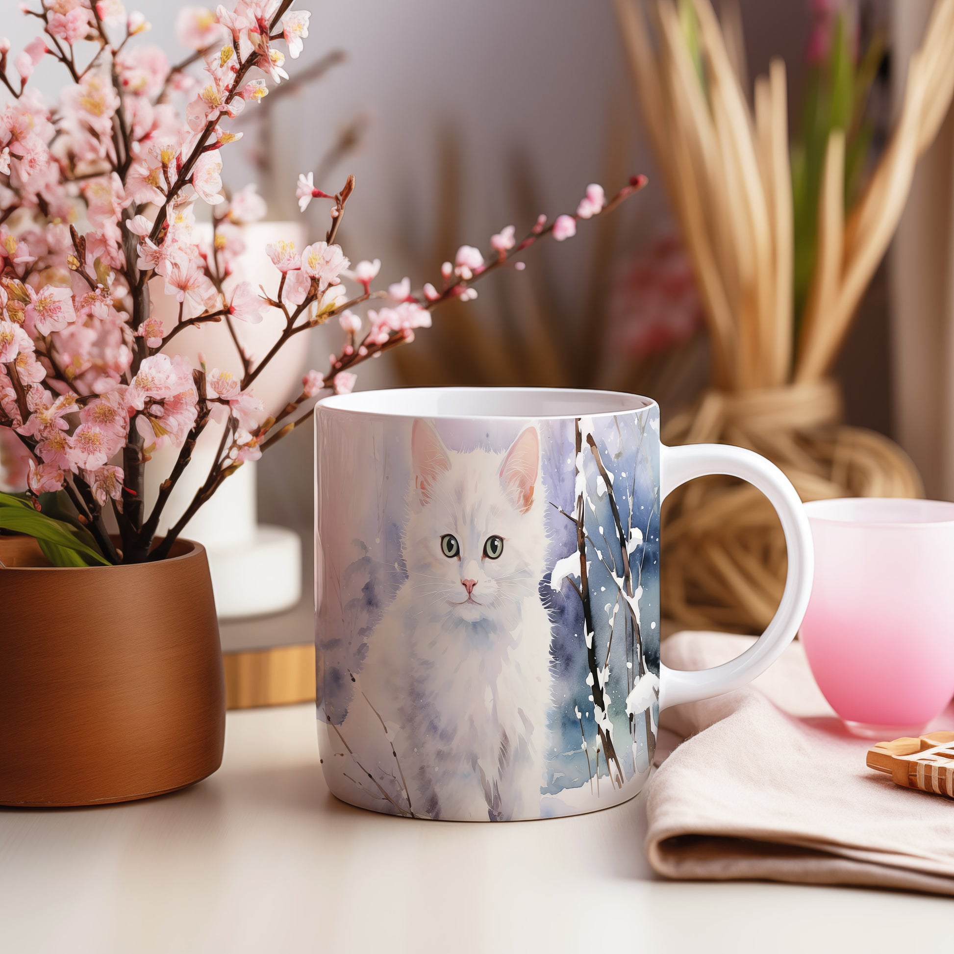 Hrnek s roztomilou bílou kočkou v zimní přírodě je ideální pro milovníky koček a zimních scenérií. Skvělý tip na dárek pro přátele nebo rodinu, kteří si rádi vychutnávají teplé nápoje. Materiál: keramika. Objem: 330 ml. Vhodné do myčky i mikrovlnky. Tento hrnek přináší radost a útulnost do každého dne.
