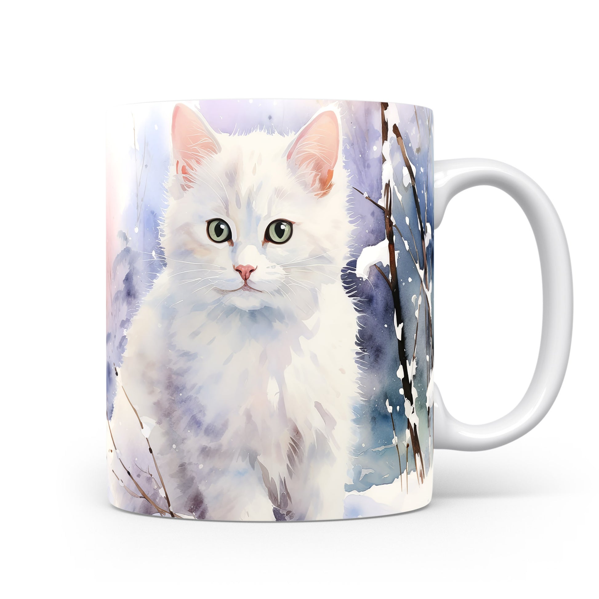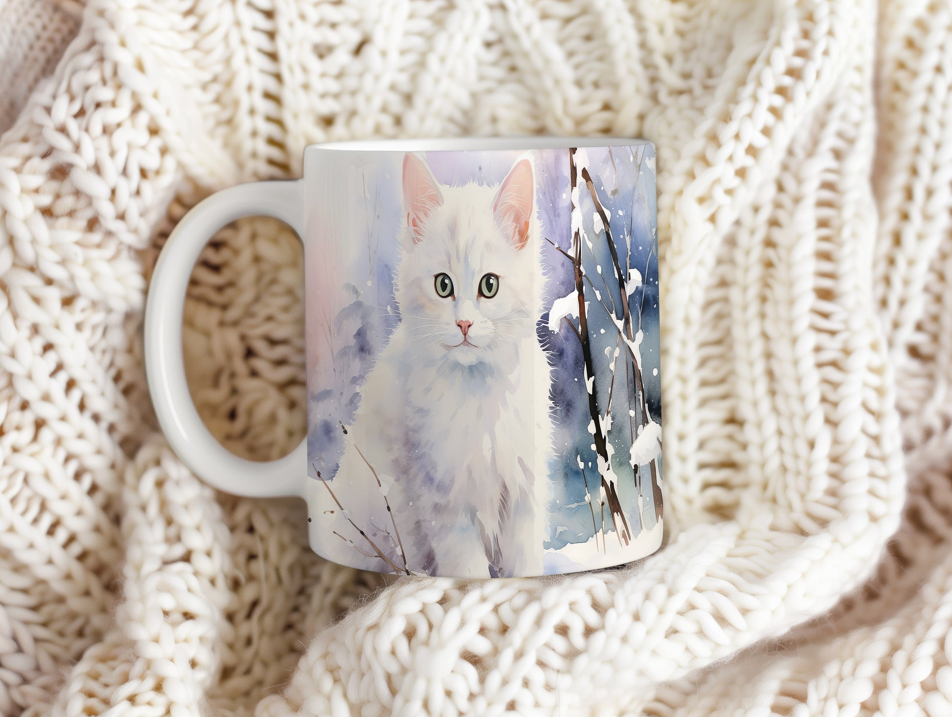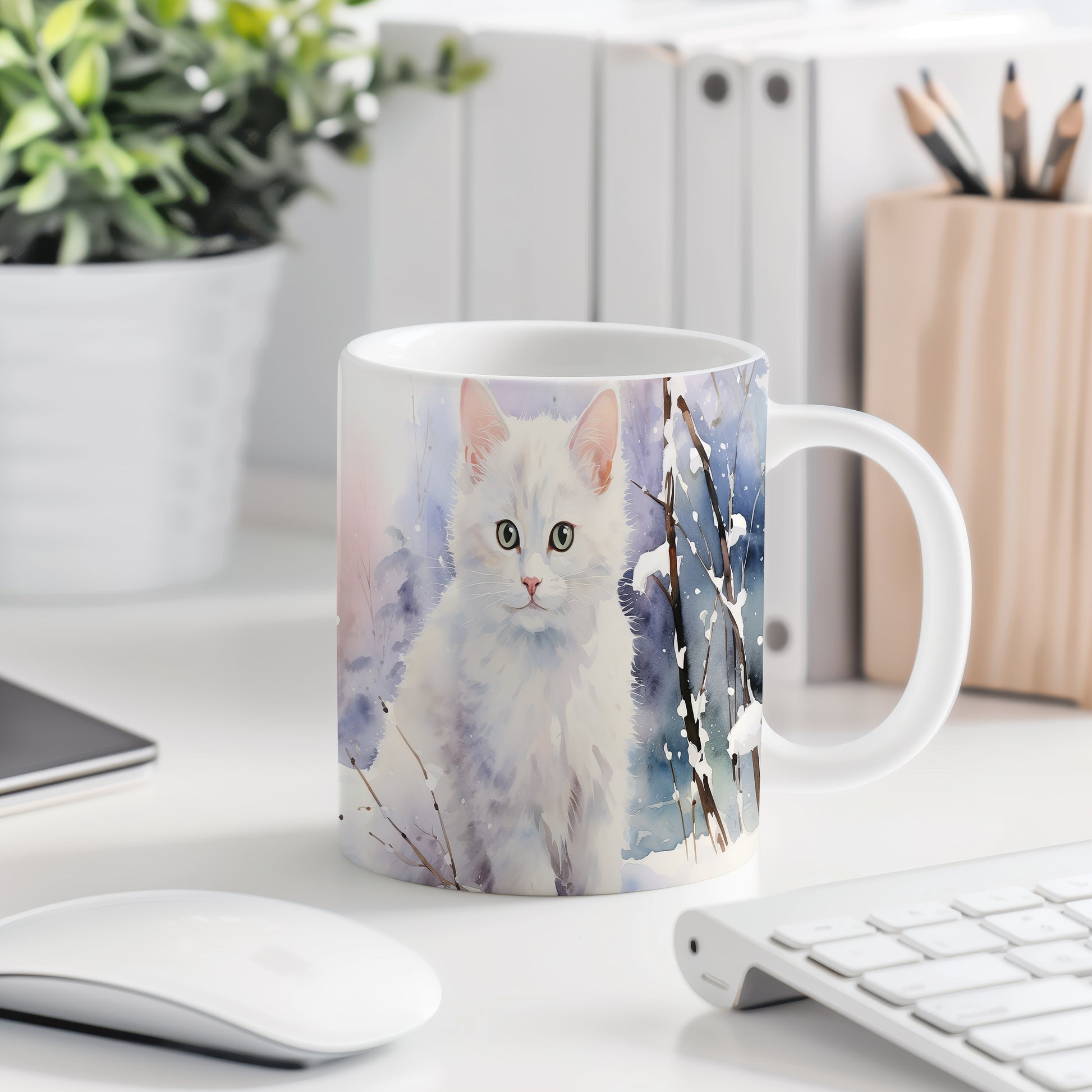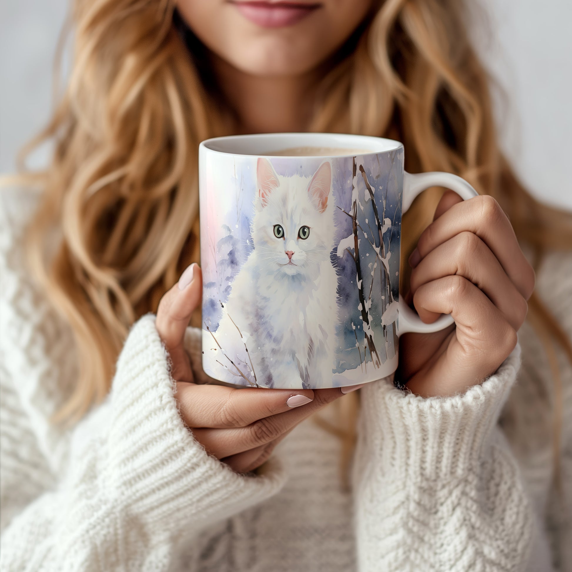 Hrnek s roztomilou bílou kočkou v zimní přírodě je ideální pro milovníky koček a zimních scenérií. Skvělý tip na dárek pro přátele nebo rodinu, kteří si rádi vychutnávají teplé nápoje. Materiál: keramika. Objem: 330 ml. Vhodné do myčky i mikrovlnky. Tento hrnek přináší radost a útulnost do každého dne.