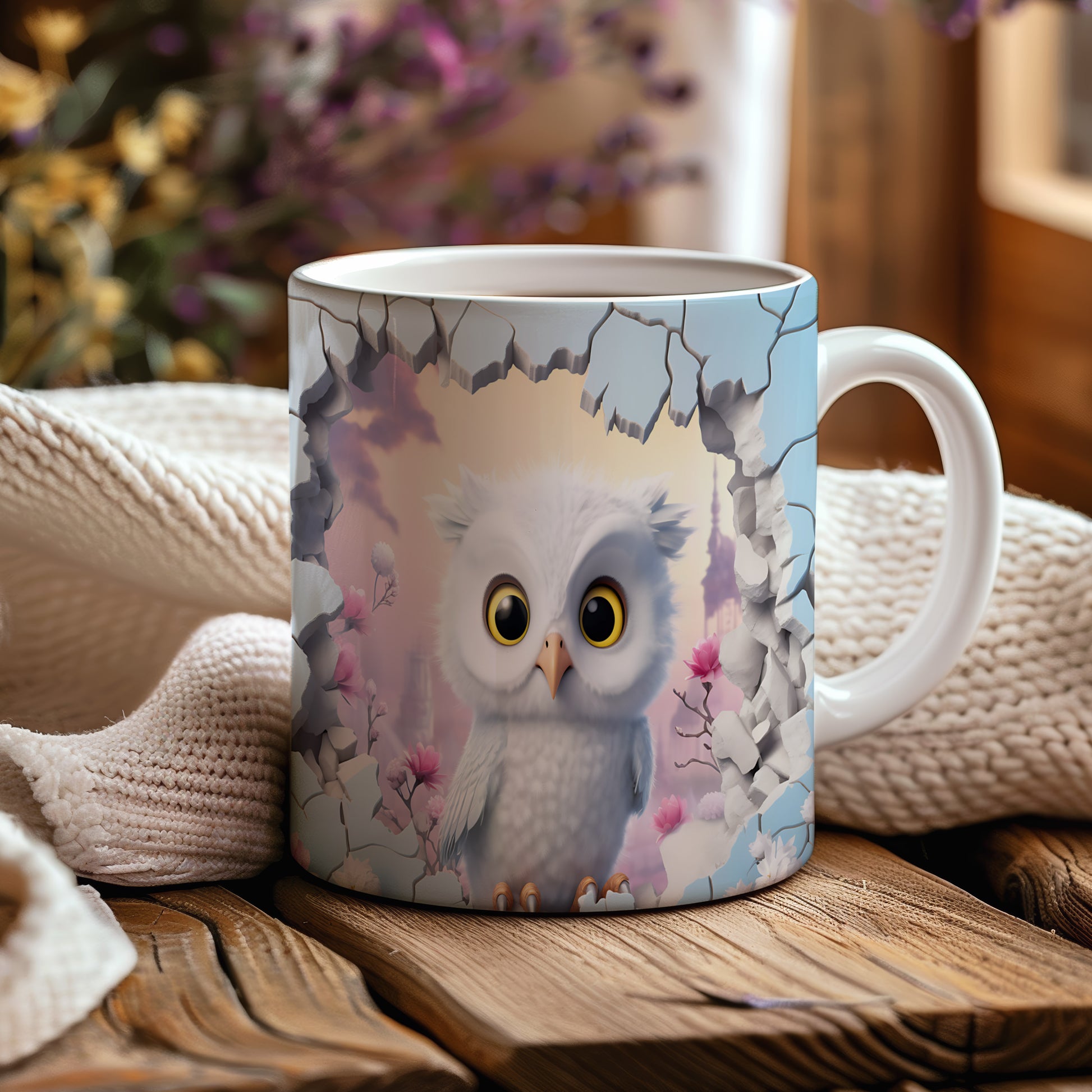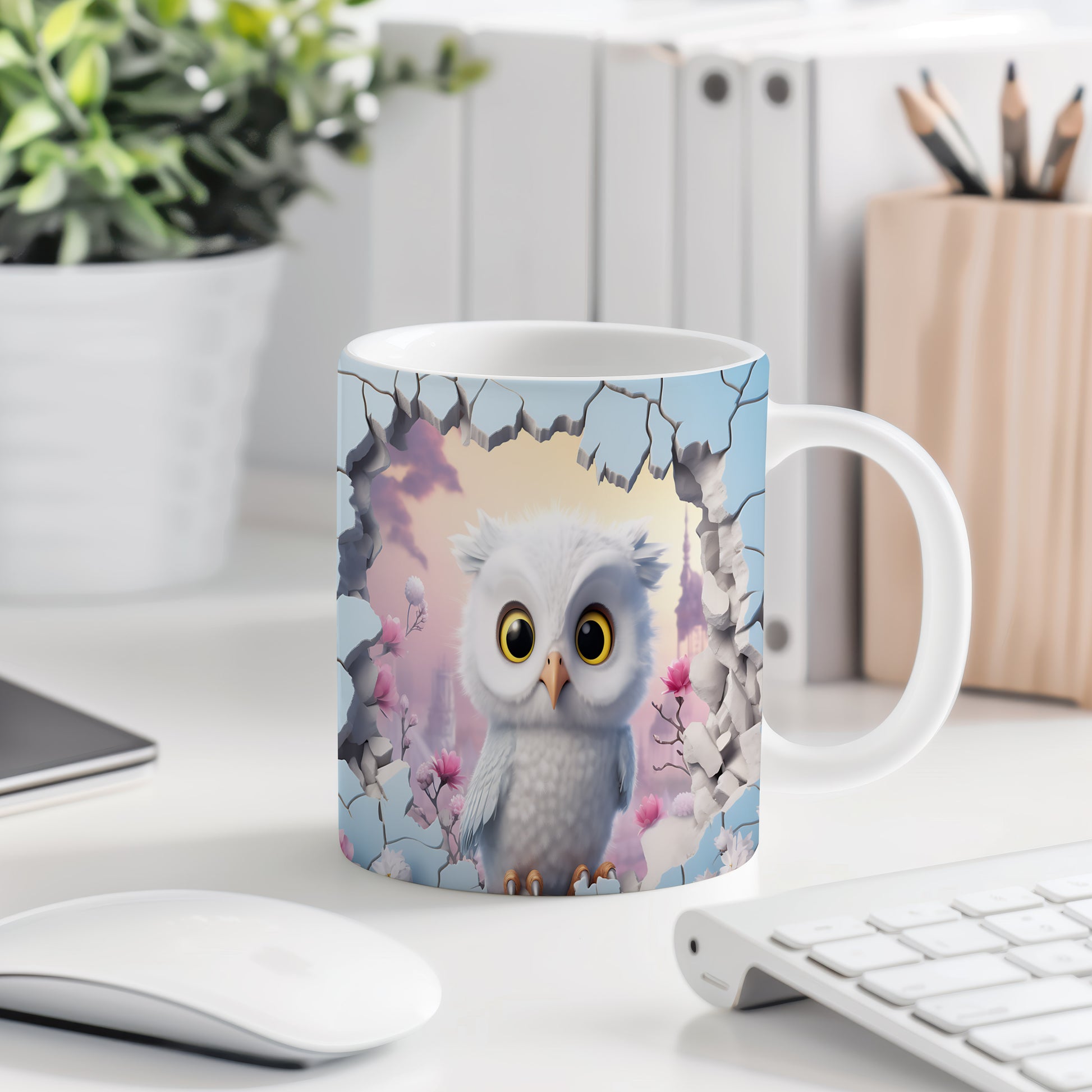 Tento hrnek zobrazuje roztomilou bílou sovu, ideální pro milovníky přírody a zvířat. Skvělý tip na dárek pro přátele nebo rodinu, kteří ocení jedinečný design. Materiál: keramika. Objem: 330 ml. Vhodné do myčky i mikrovlnky. Používáním tohoto hrnku si užijete nejen krásný vzhled, ale také pohodlné pití vašich oblíbených nápojů.
