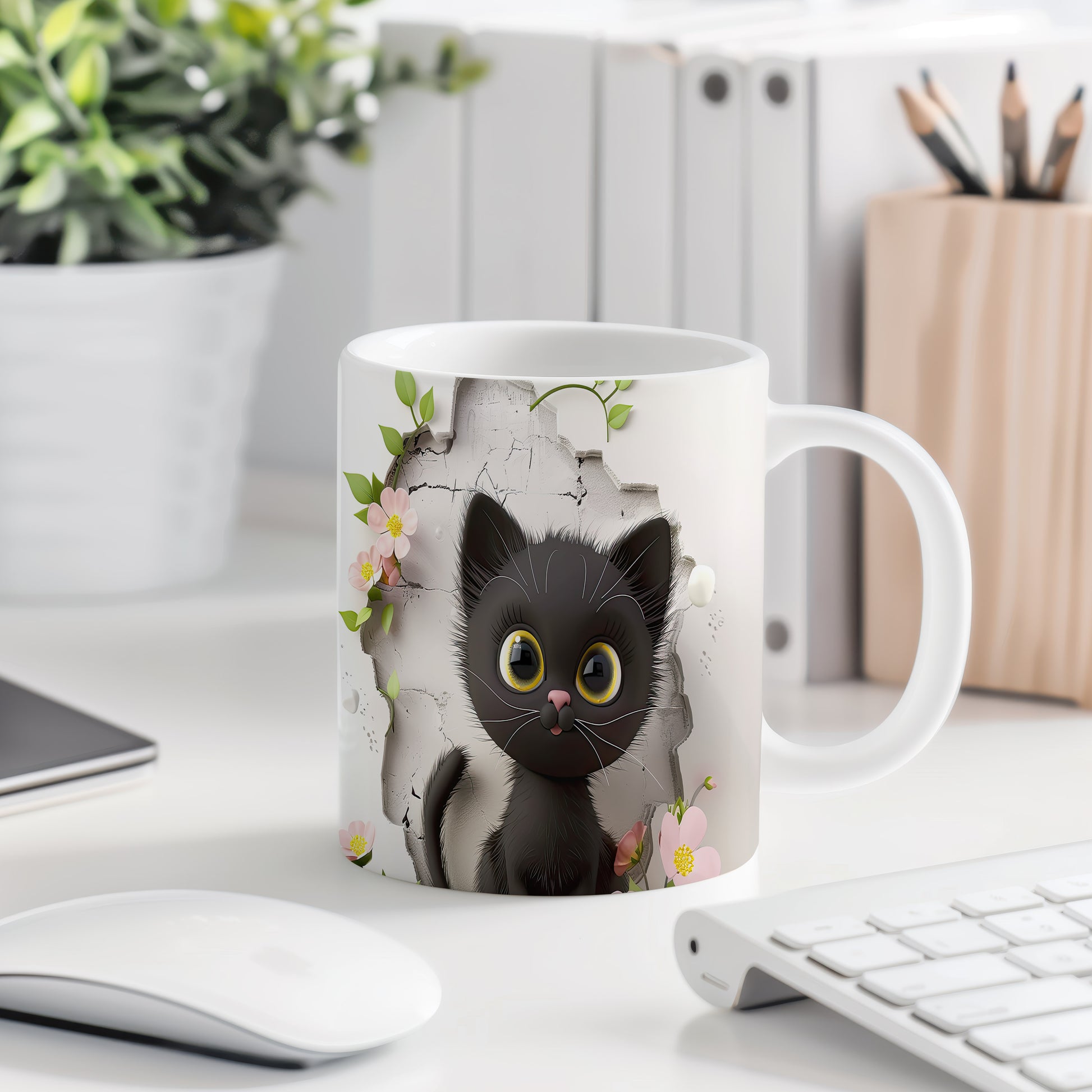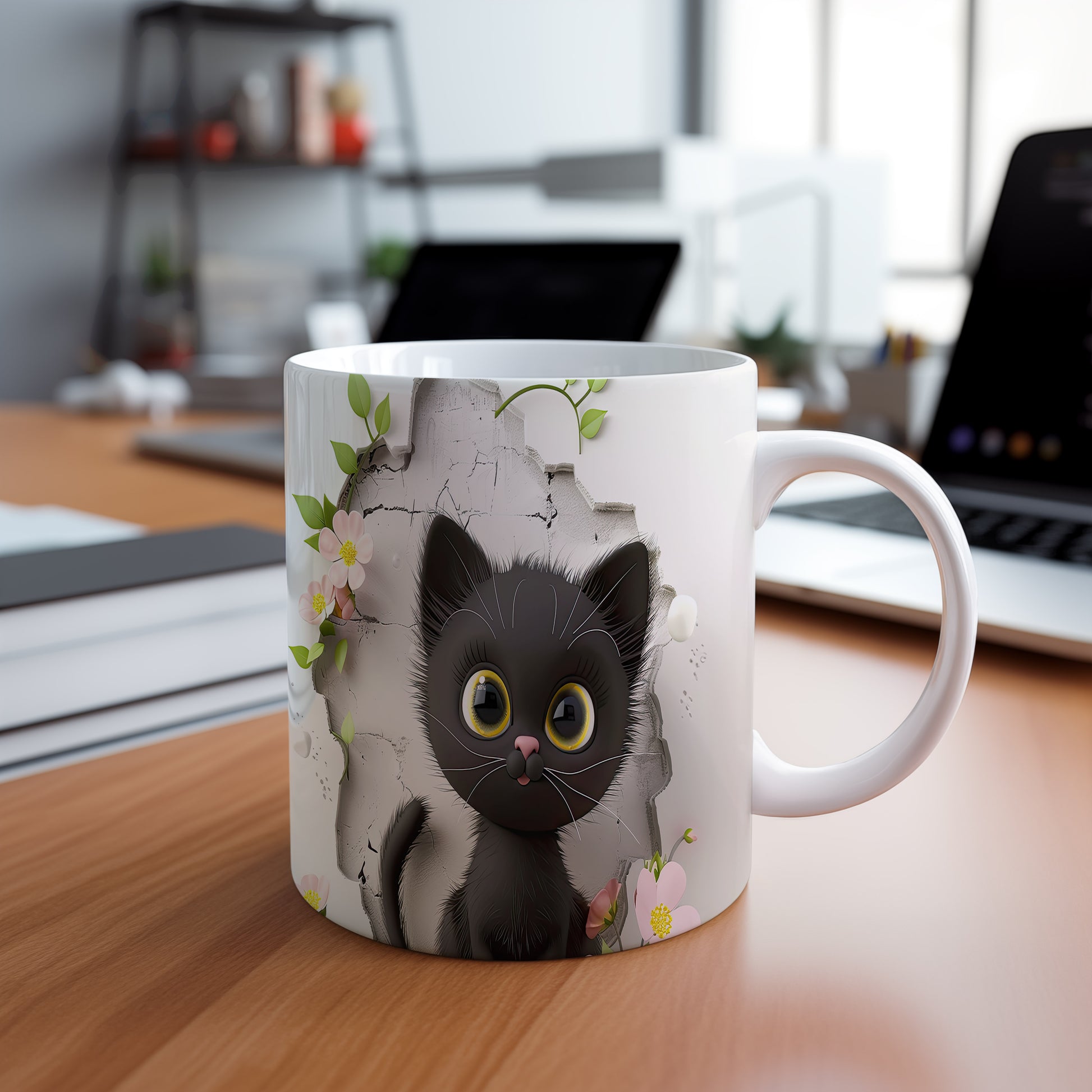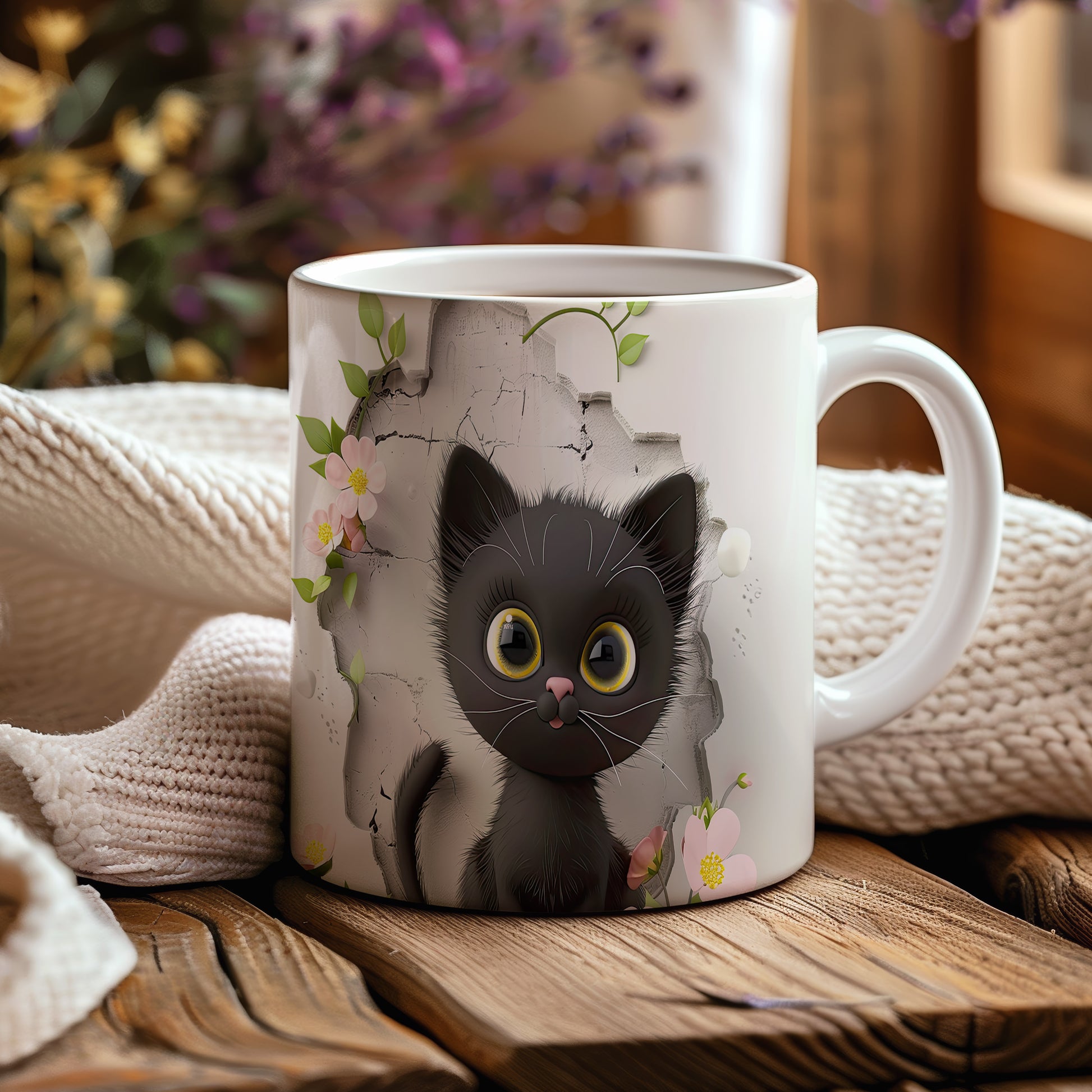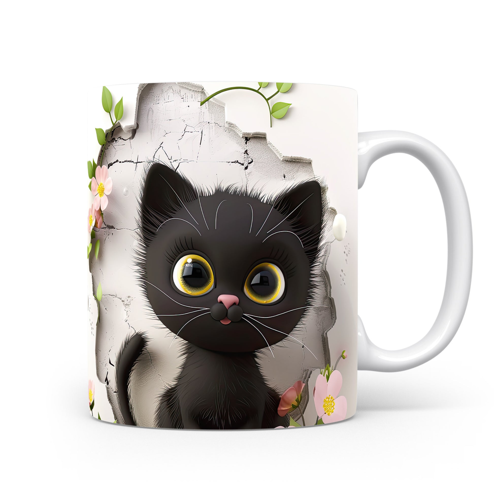 Na hrnku je zobrazená roztomilá černá kočička s velkýma očima, která přináší hravou atmosféru. Tento hrnek je ideální pro milovníky koček a skvělým dárkem pro přátele nebo rodinu. Materiál: keramika. Objem: 330 ml. Vhodné do myčky i mikrovlnky. Používáním tohoto hrnku si zpříjemníte každodenní pití kávy nebo čaje.