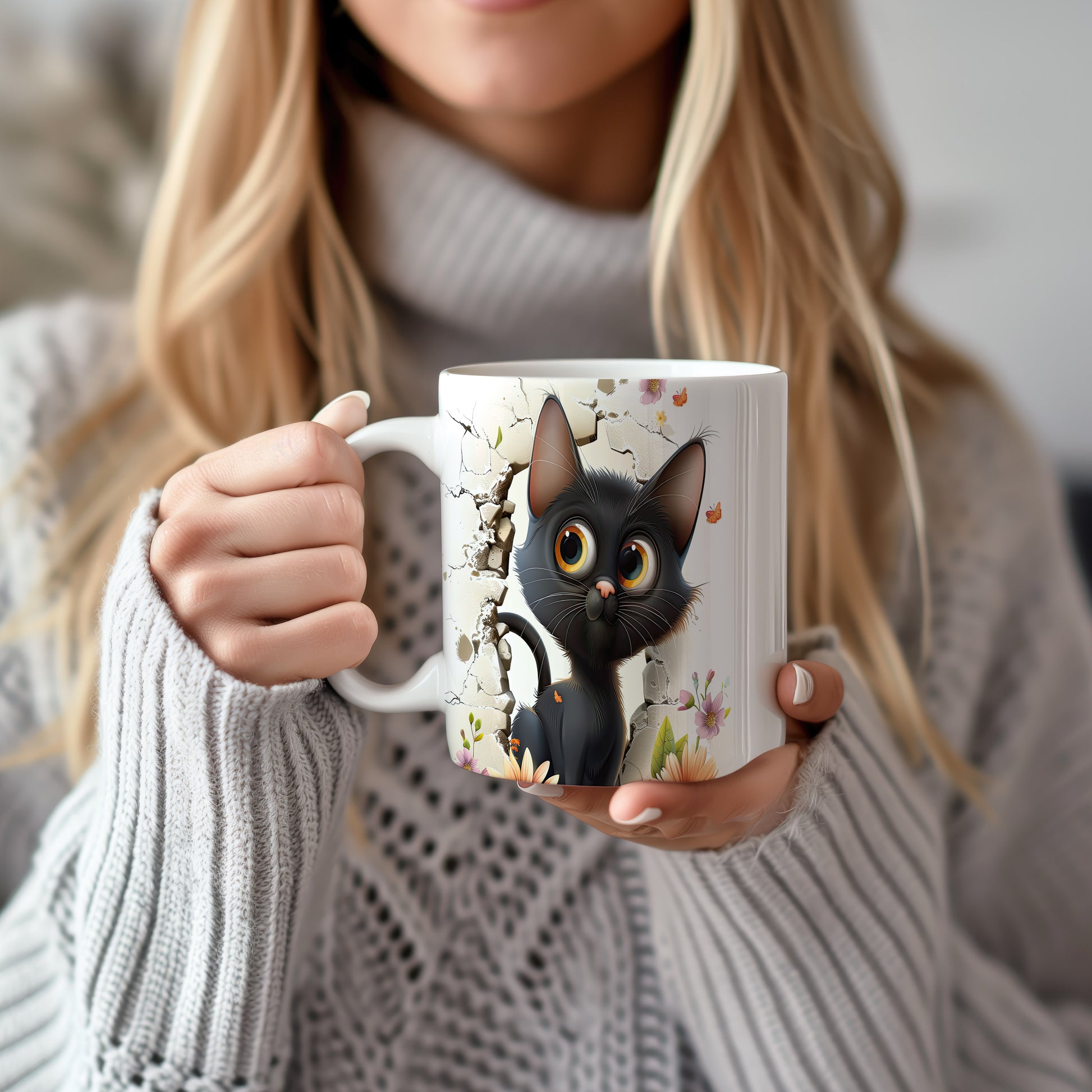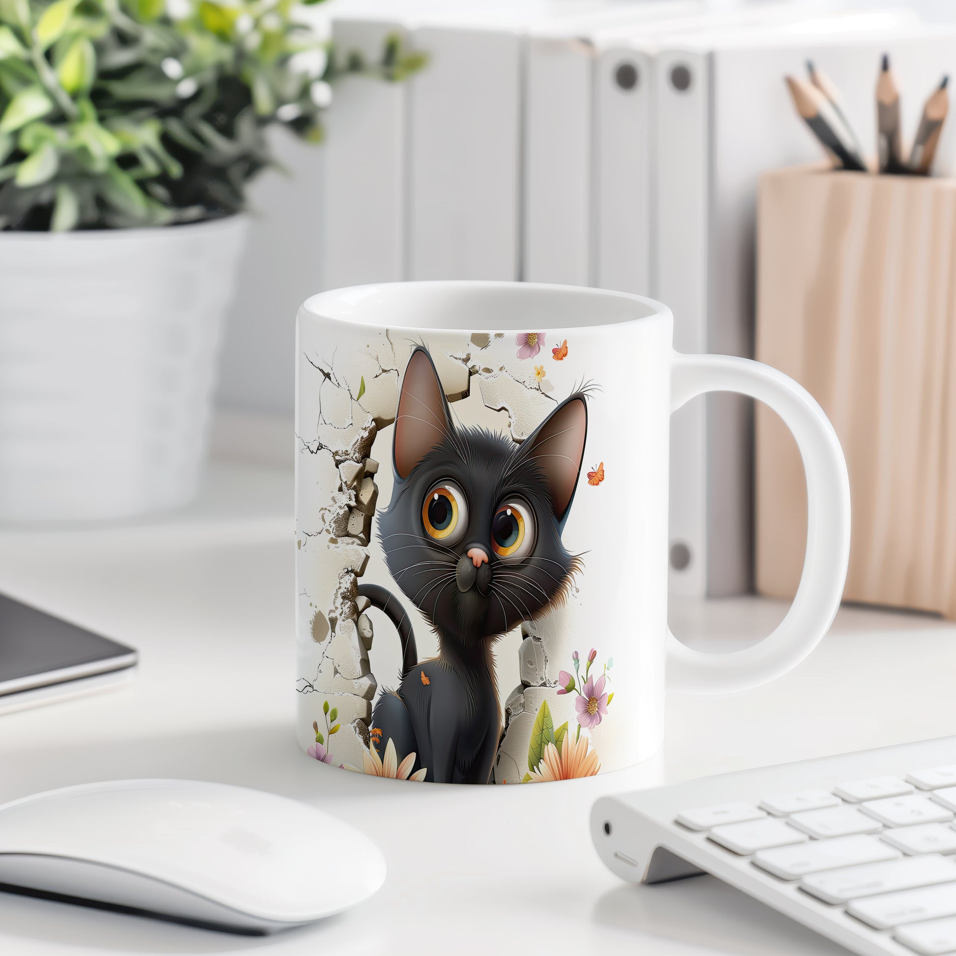 Tento hrnek zobrazuje roztomilou černou kočku s velkýma očima, ideální pro milovníky těchto domácích mazlíčků. Skvělý tip na dárek pro každého, kdo ocení kvalitní design a osobitý styl. Materiál: keramika. Objem: 330 ml. Vhodné do myčky i mikrovlnky. Používáním tohoto hrnku si užijete nejen oblíbený nápoj, ale také potěšení z jeho jedinečného vzhledu.
