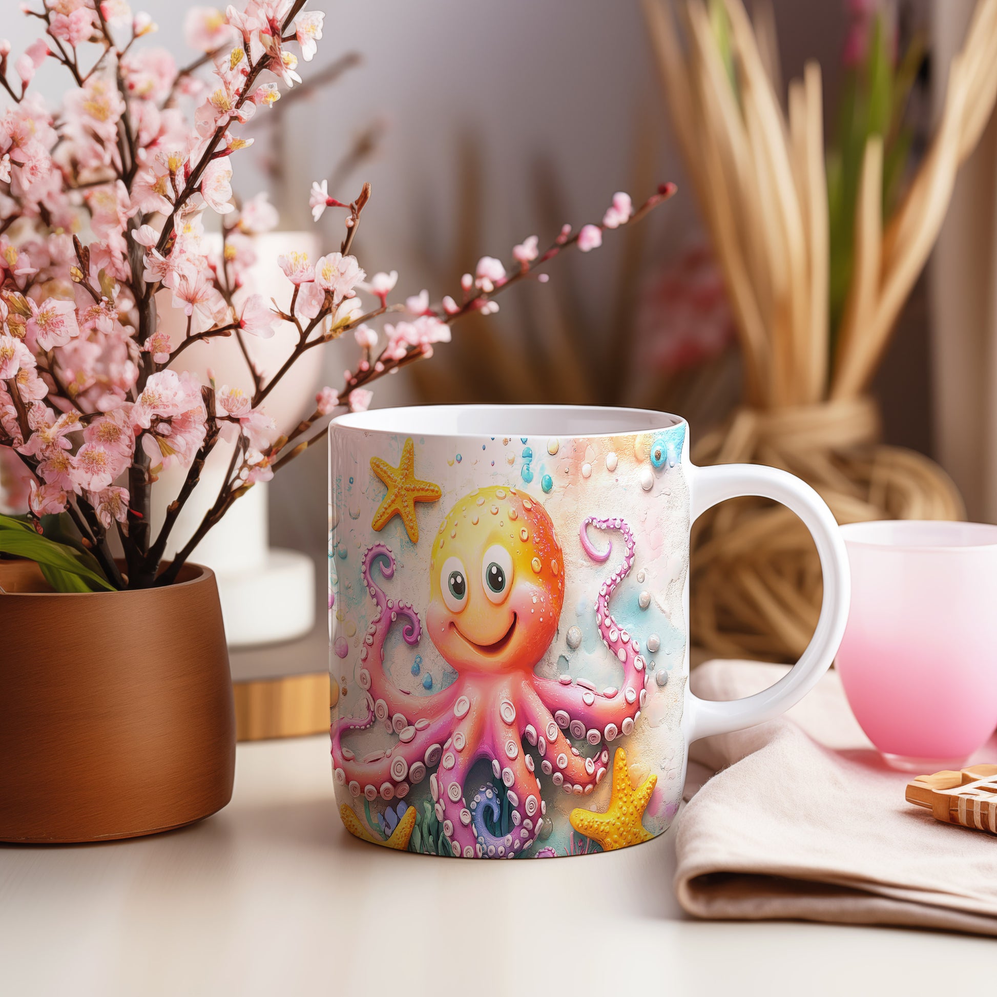 Hrnek s roztomilou chobotnicí – komiksovým stylem
