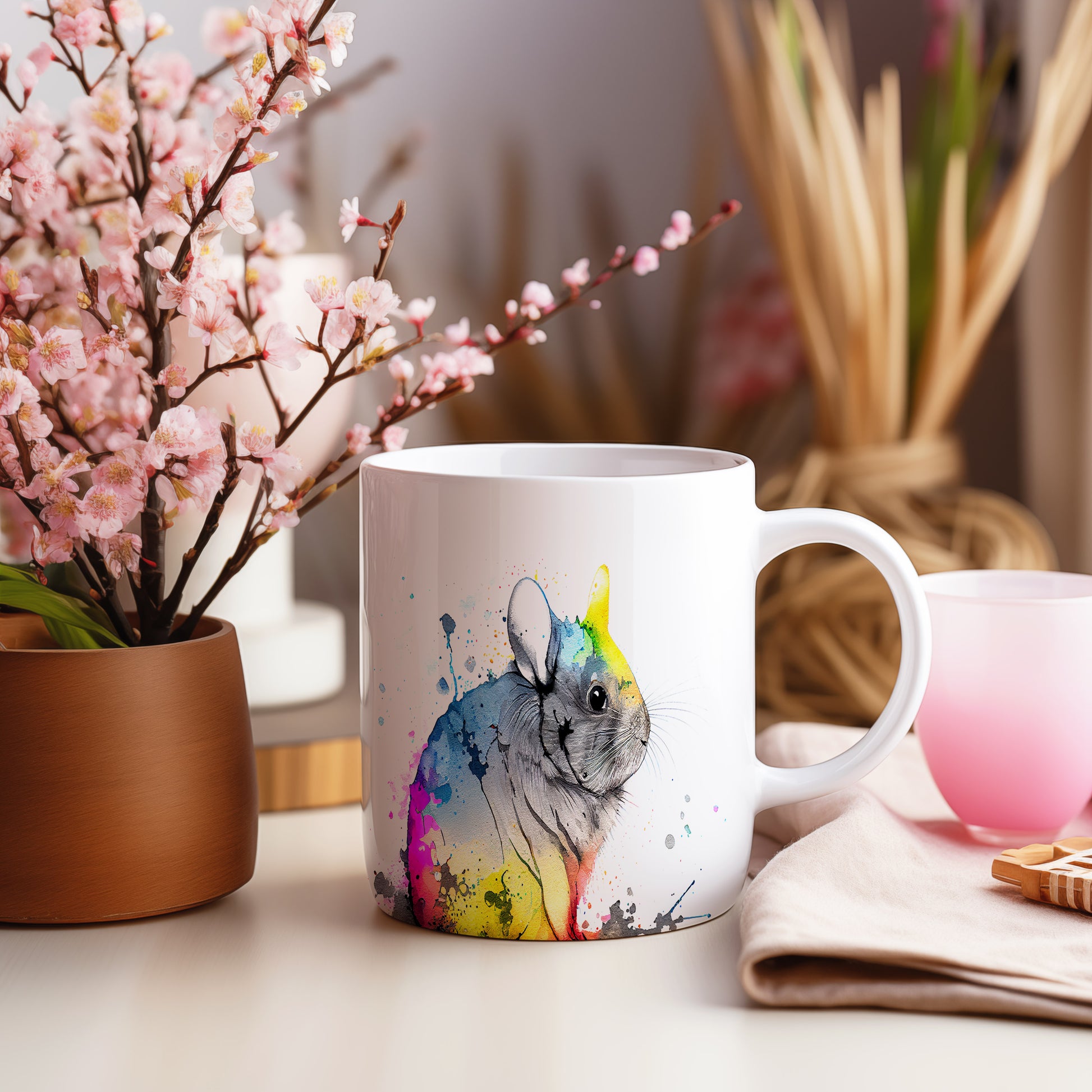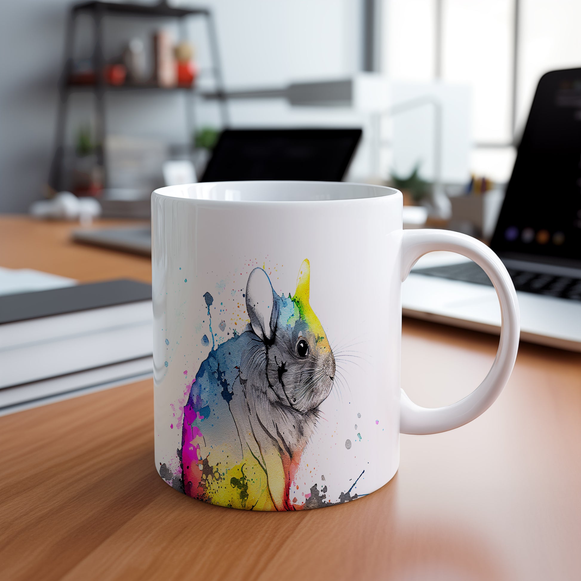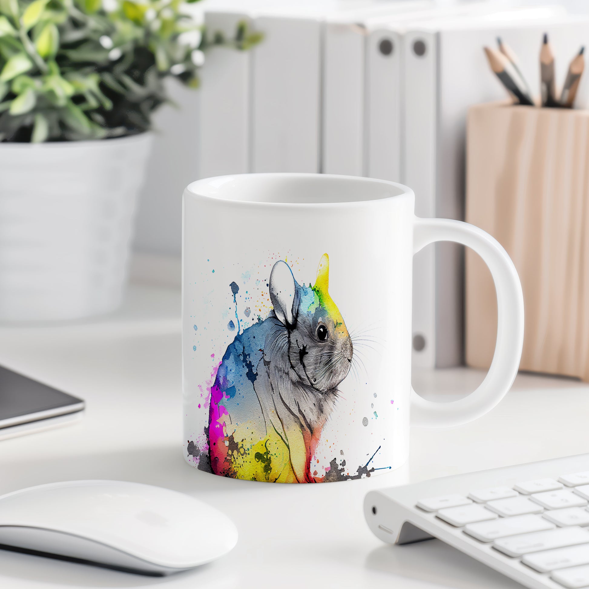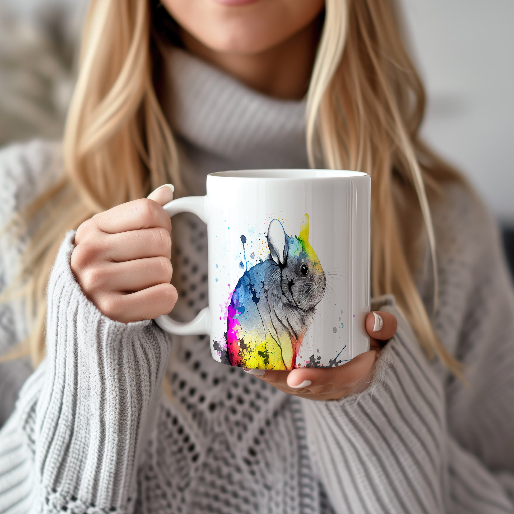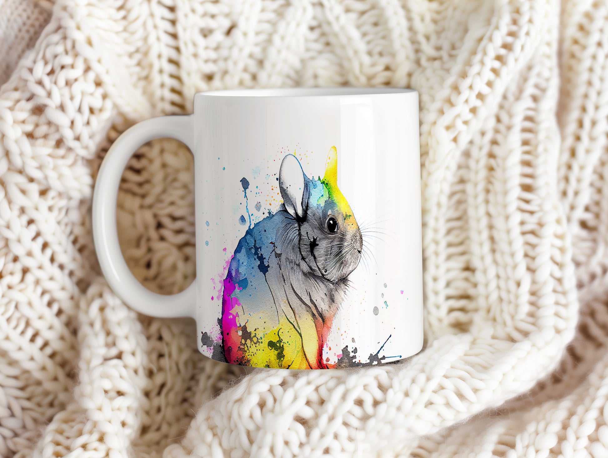 Tento keramický hrnek s motivem roztomilé činčily v akvarelovém stylu přináší do vašeho dne radost a barevnost. Je ideální pro milovníky zvířat a skvělým dárkem pro přátele či rodinu. Materiál: keramika. Objem: 330 ml. Vhodné do myčky i mikrovlnky. Díky svému originálnímu vzhledu se stane oblíbeným společníkem při každém doušku.