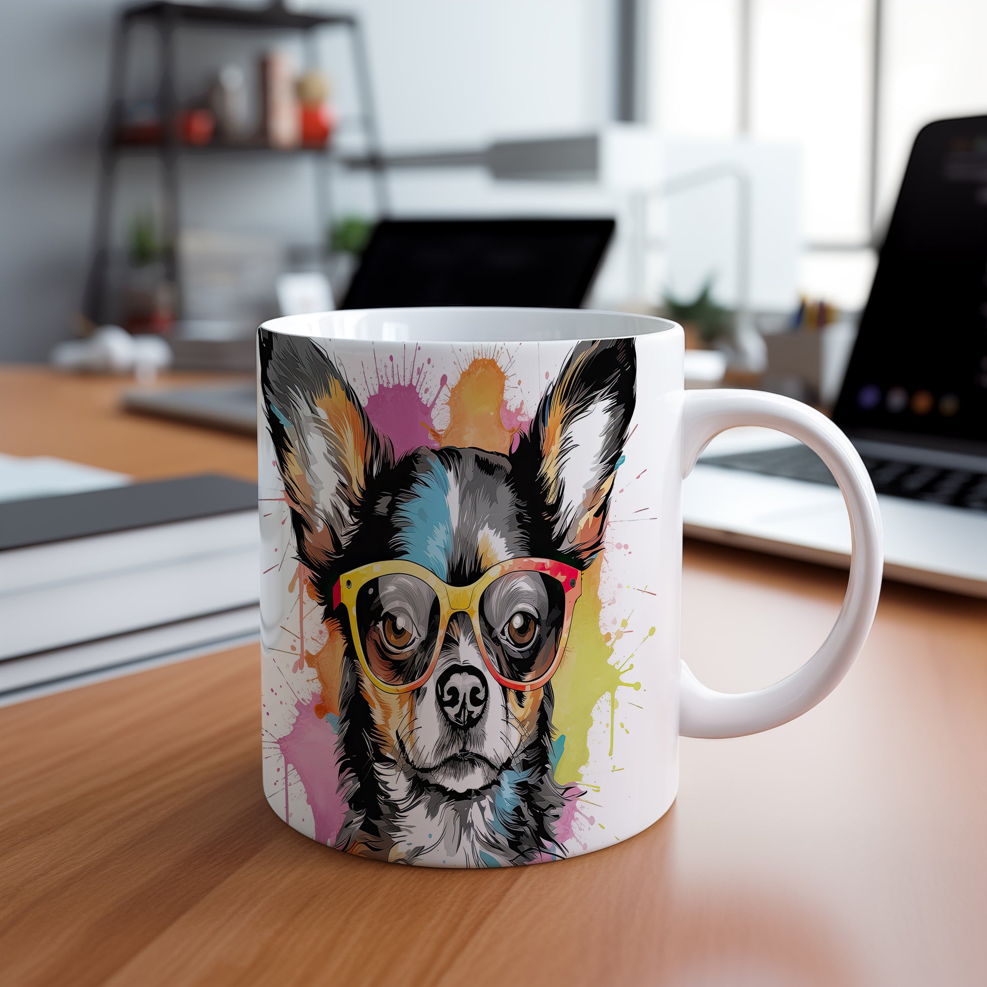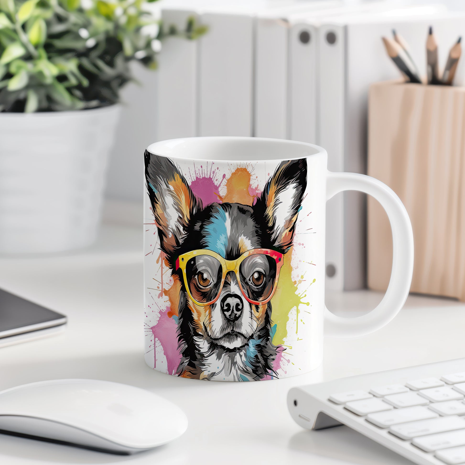 Tento keramický hrnek s motivem čivavy v brýlích přináší hravou atmosféru a stylový design. Je ideální pro milovníky psů a skvělým dárkem pro přátele či rodinu. Materiál: keramika. Objem: 330 ml. Vhodné do myčky i mikrovlnky. Používání tohoto hrnku vám zpříjemní každé ráno a dodá úsměv na tvář.