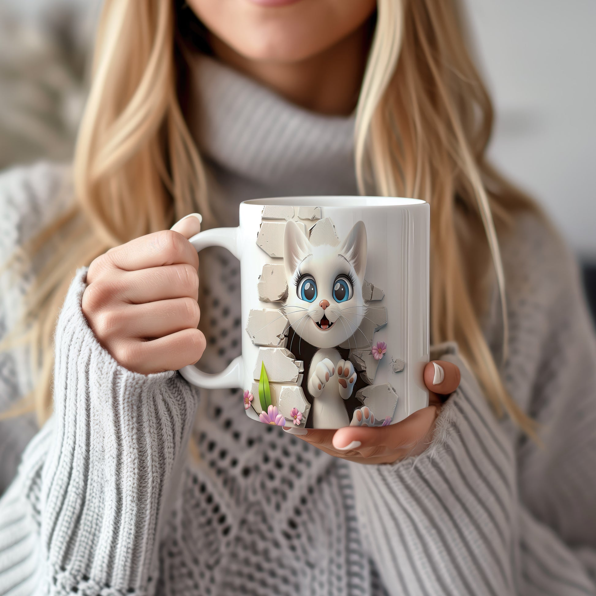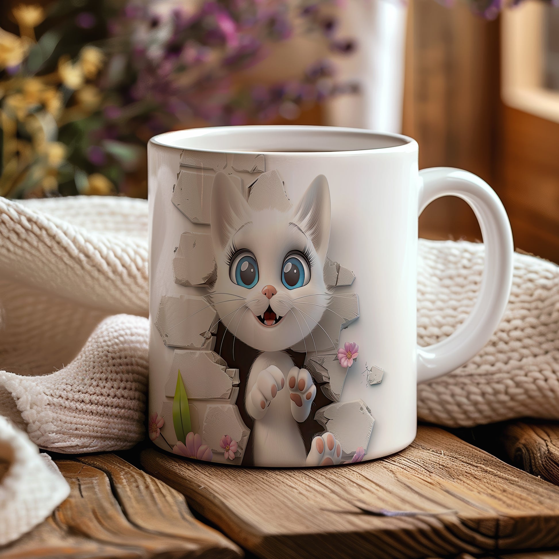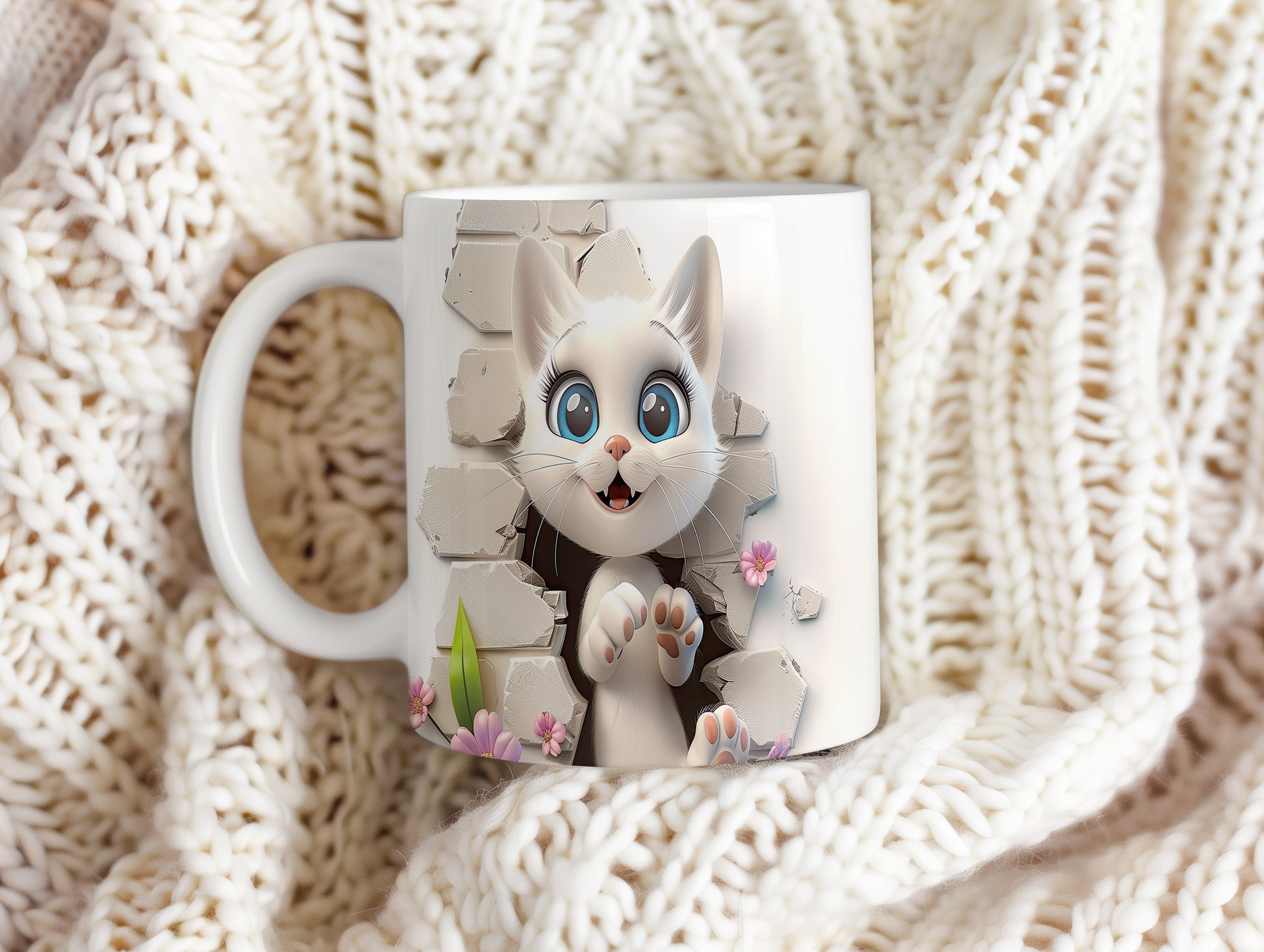 Hrnek s roztomilou kočičkou 3D efektem – 3D efektem