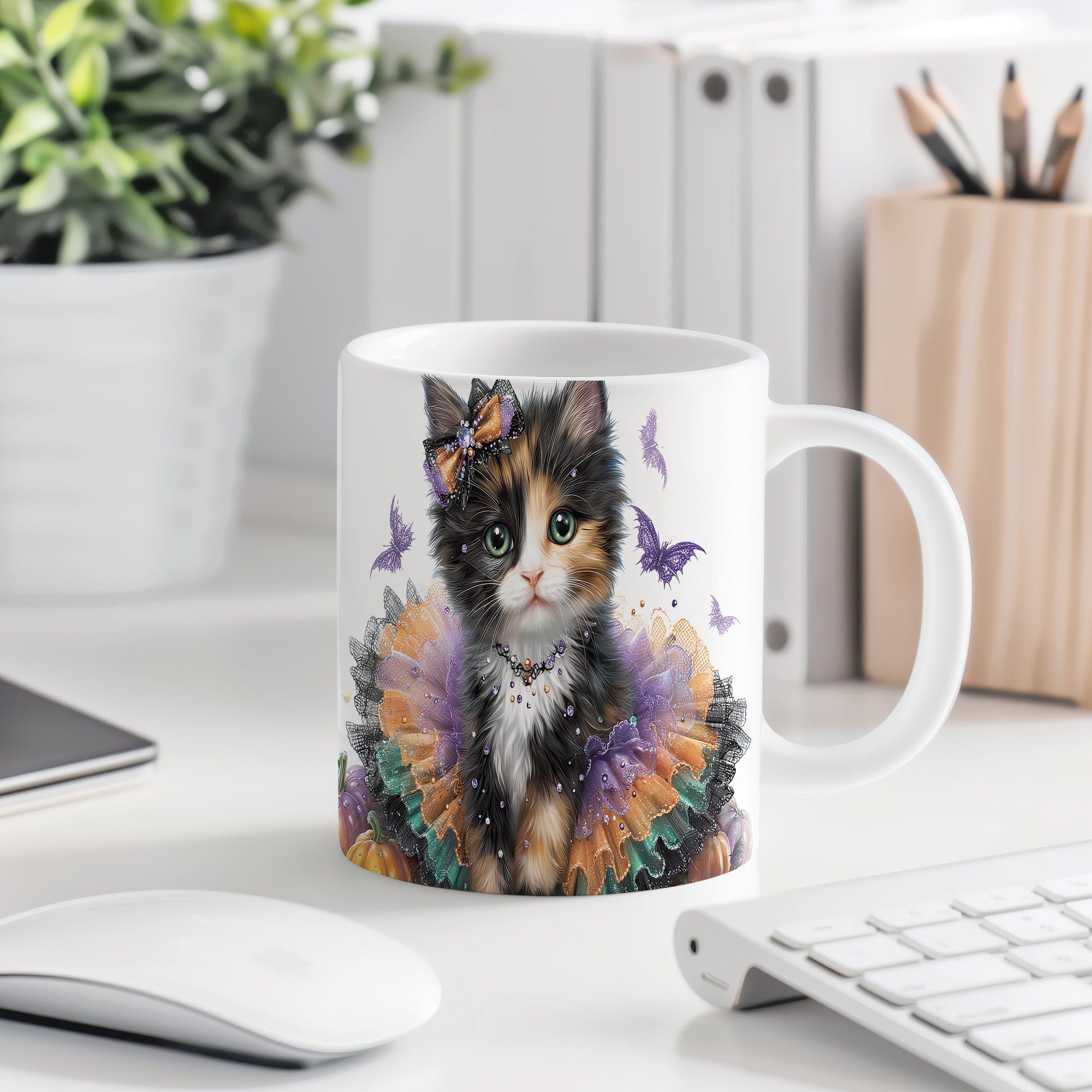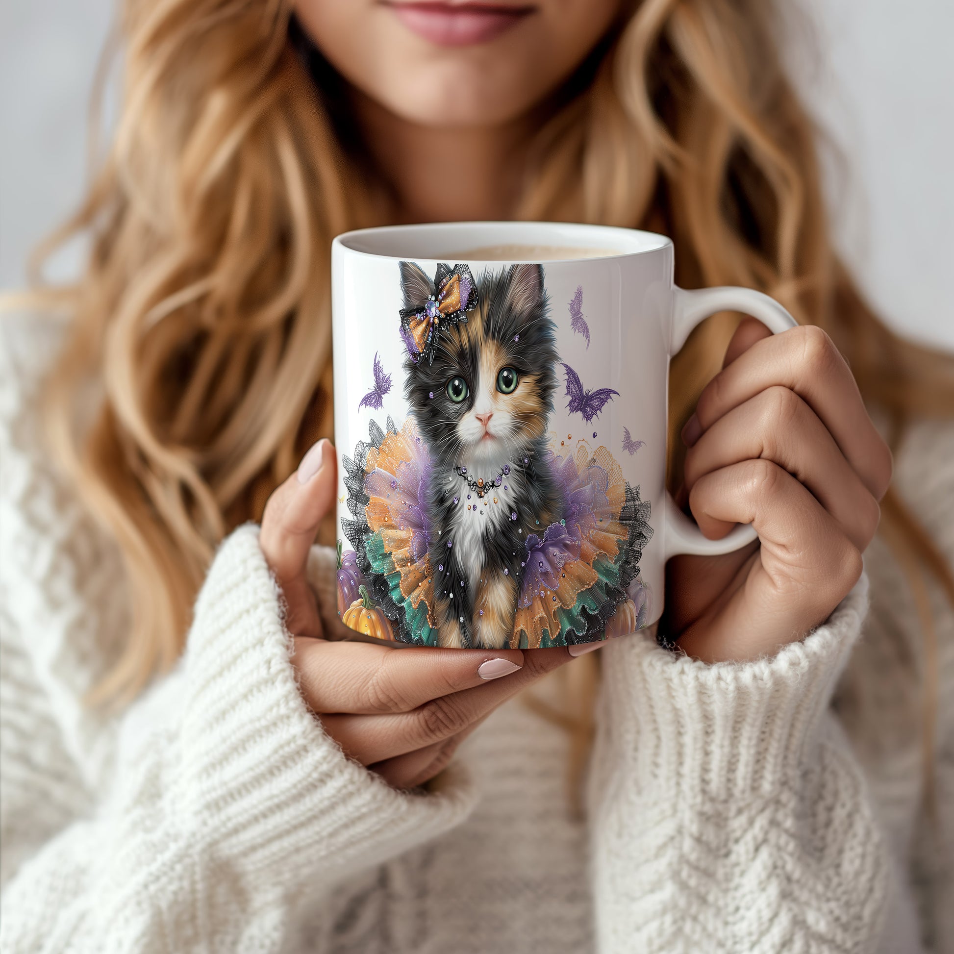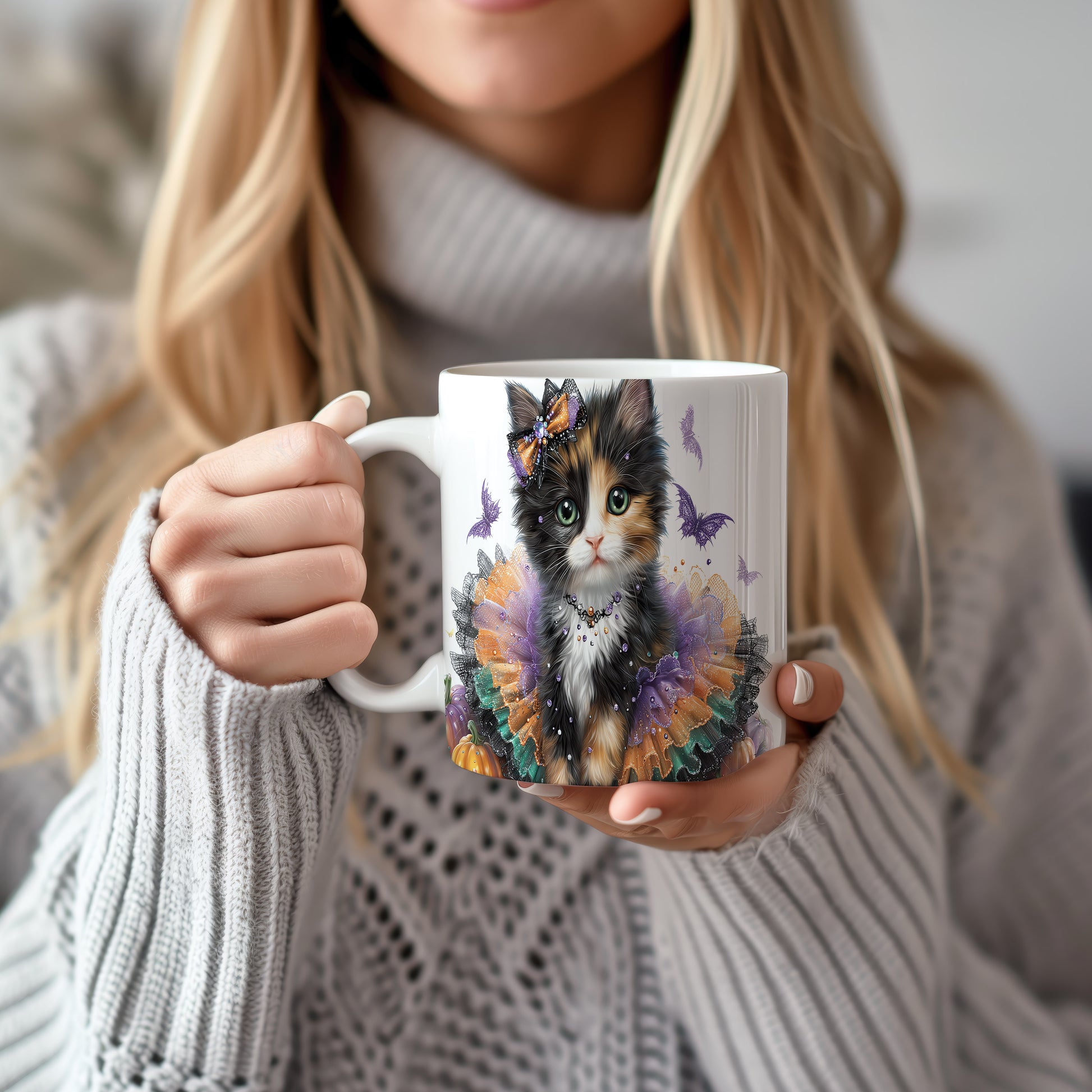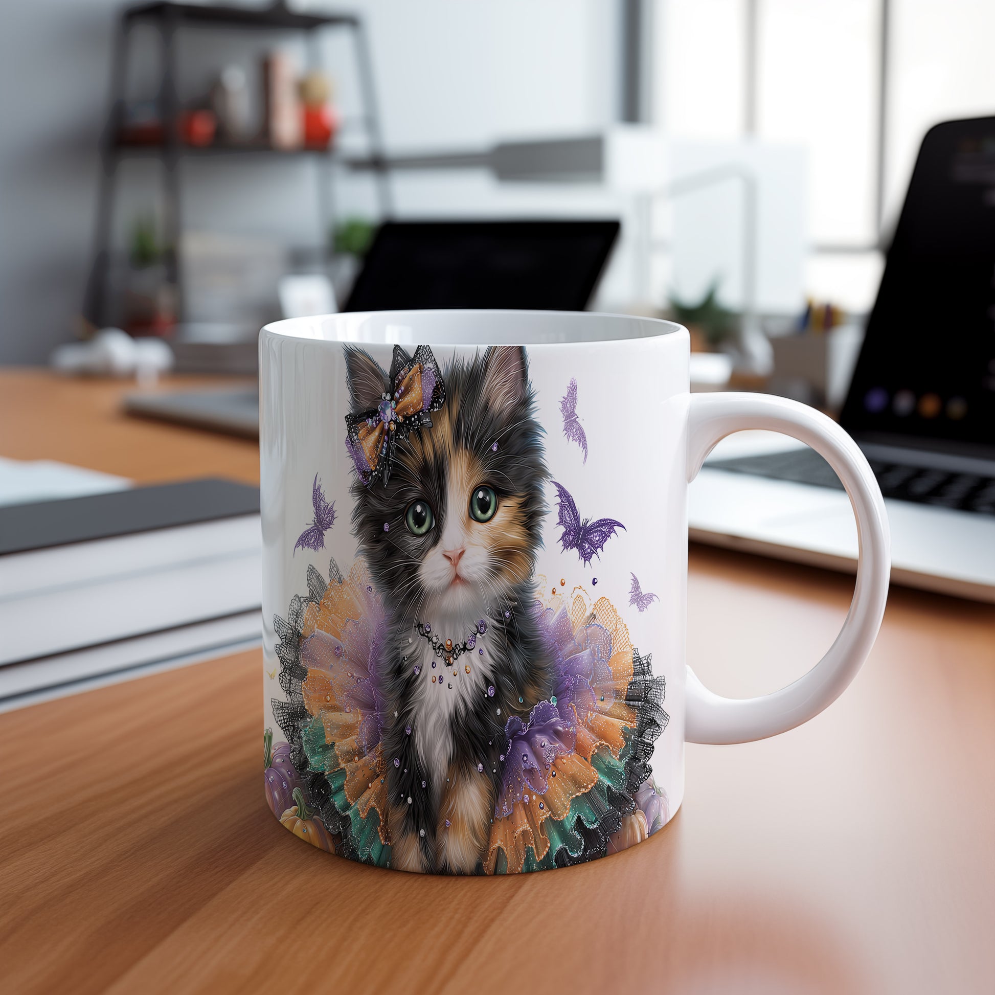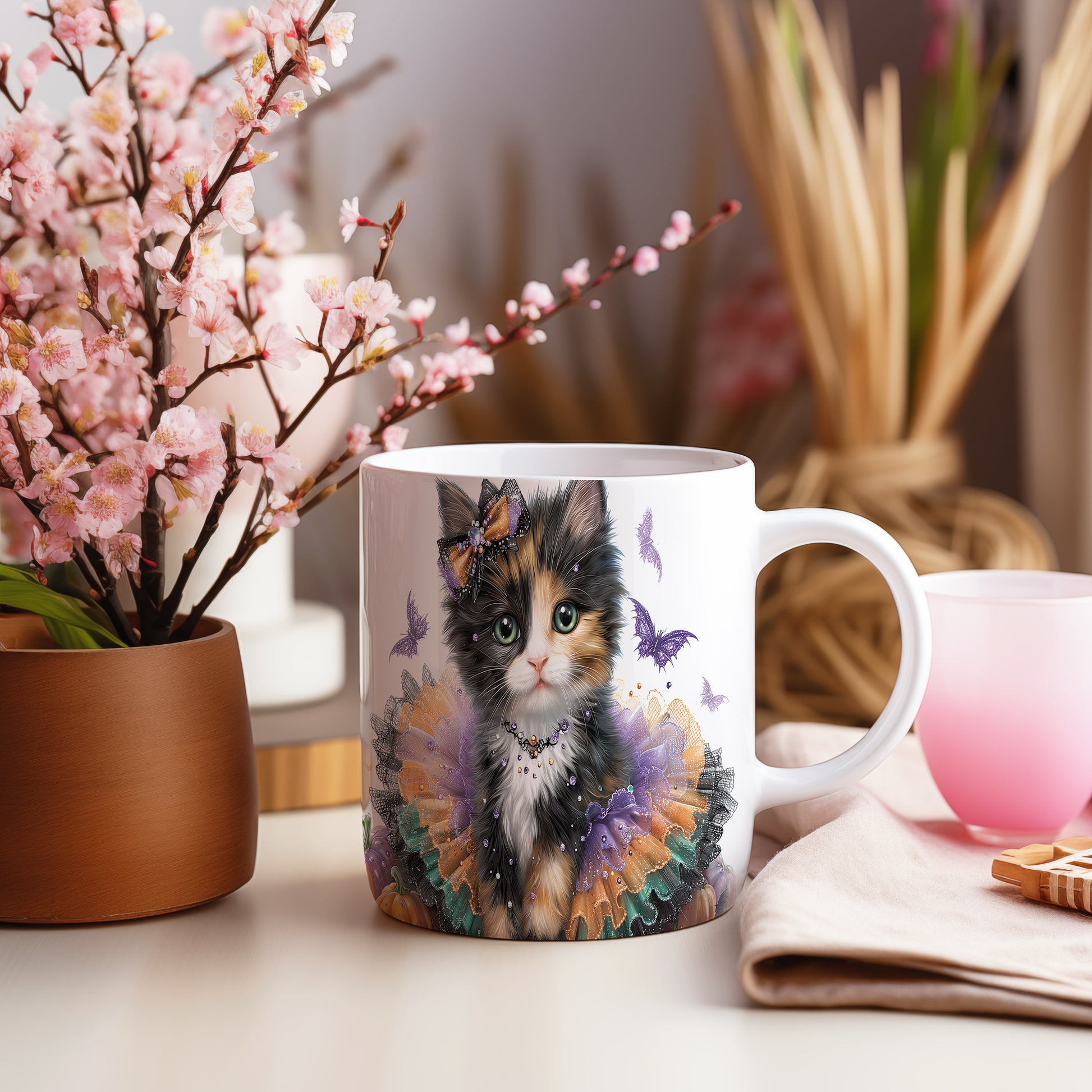Tento hrnek zobrazuje roztomilou kočičku s velkou mašlí a šperky. Je ideální pro milovníky zvířat a skvělým dárkem pro děti i dospělé. Materiál: keramika. Objem: 330 ml. Vhodné do myčky i mikrovlnky. Díky svému designu přináší radost do každodenního pití.