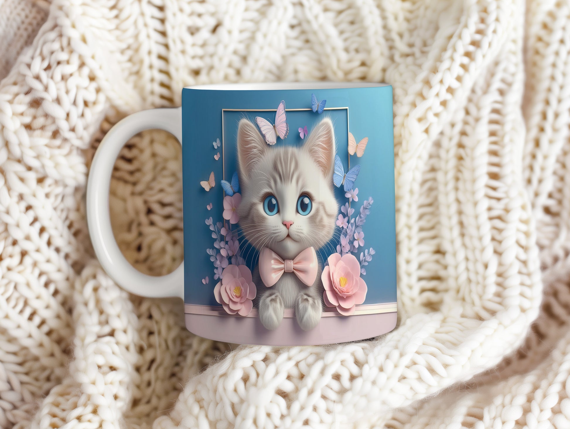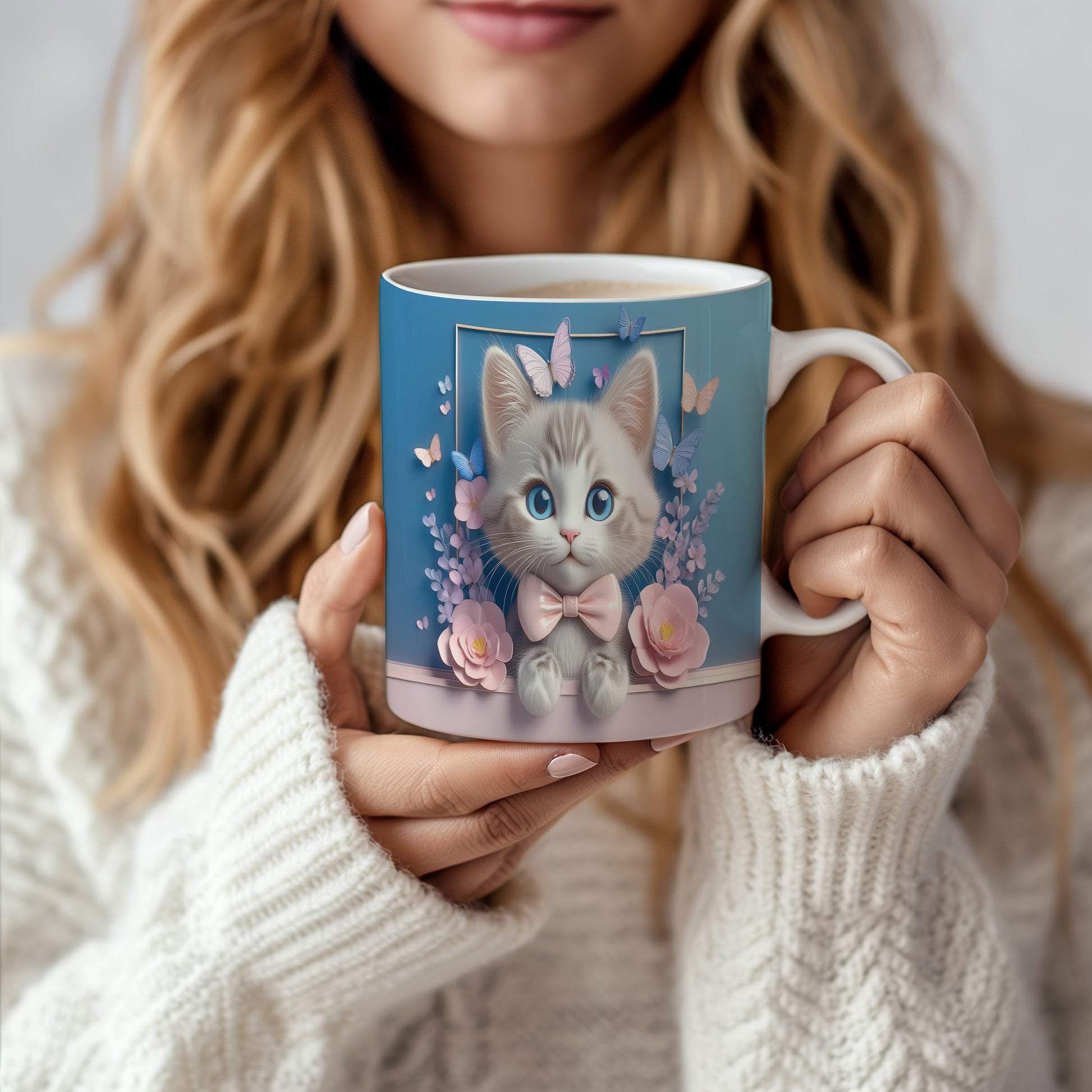 Hrnek s roztomilou kočičkou – modrýma očima