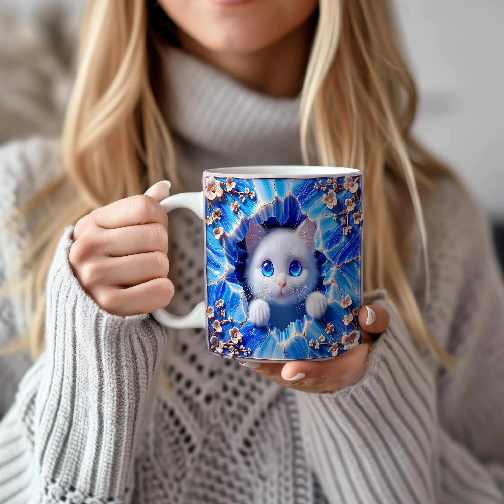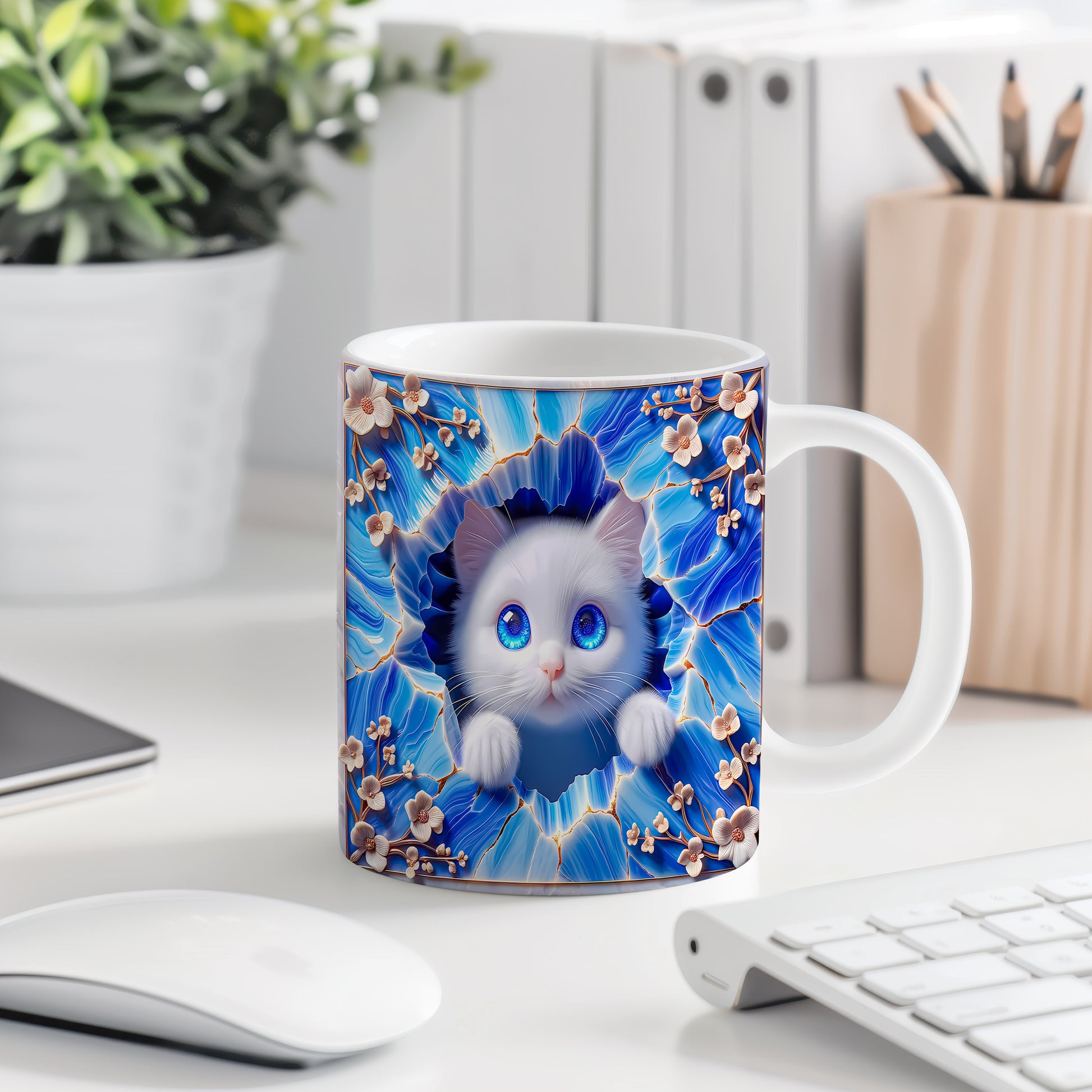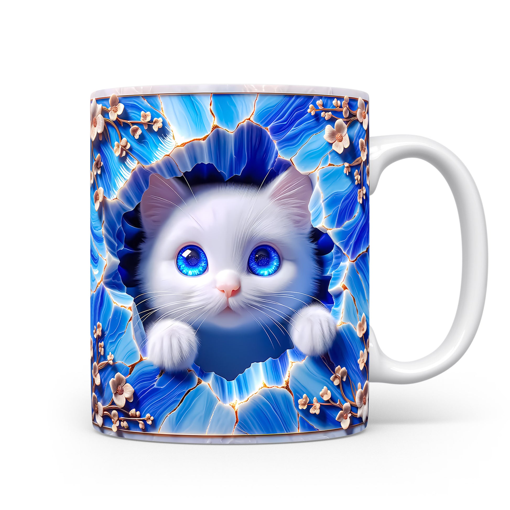 Tento keramický hrnek zobrazuje roztomilou bílou kočičku s velkýma modrýma očima. Je ideální pro milovníky koček a skvělý tip na dárek pro přátele nebo rodinu. Materiál: keramika. Objem: 330 ml. Vhodné do myčky i mikrovlnky. Používání tohoto hrnku přináší radost a útulnost do každého dne.