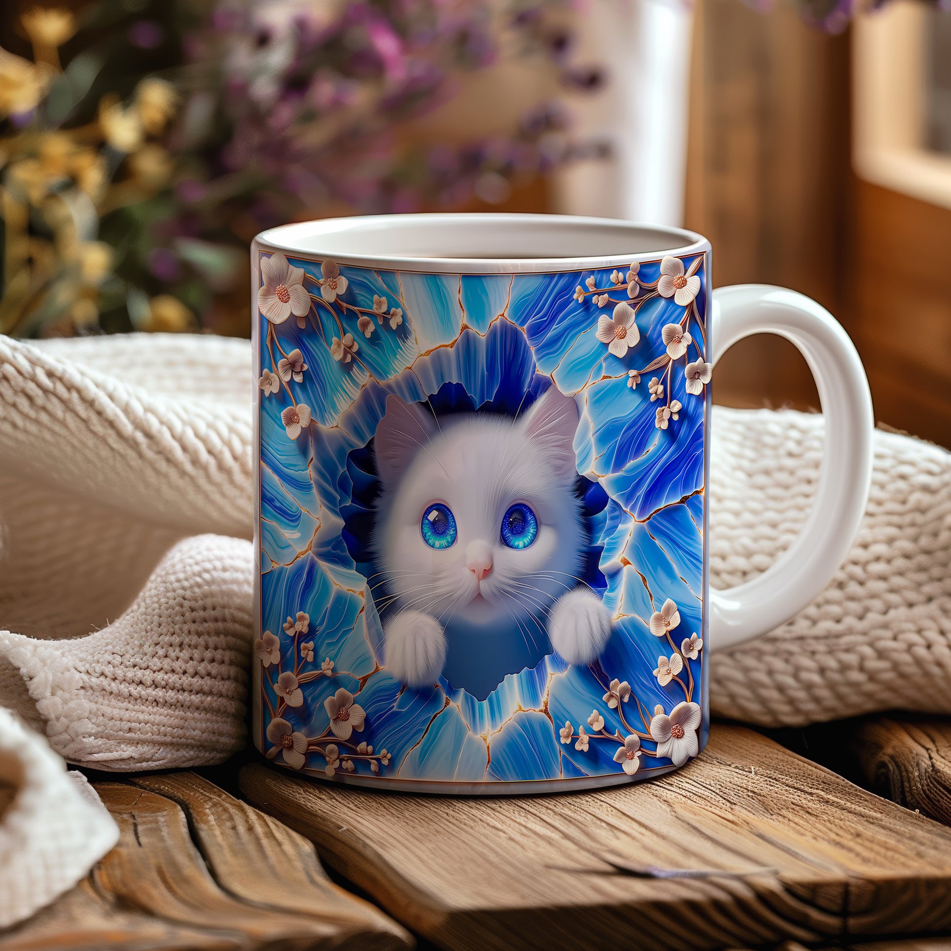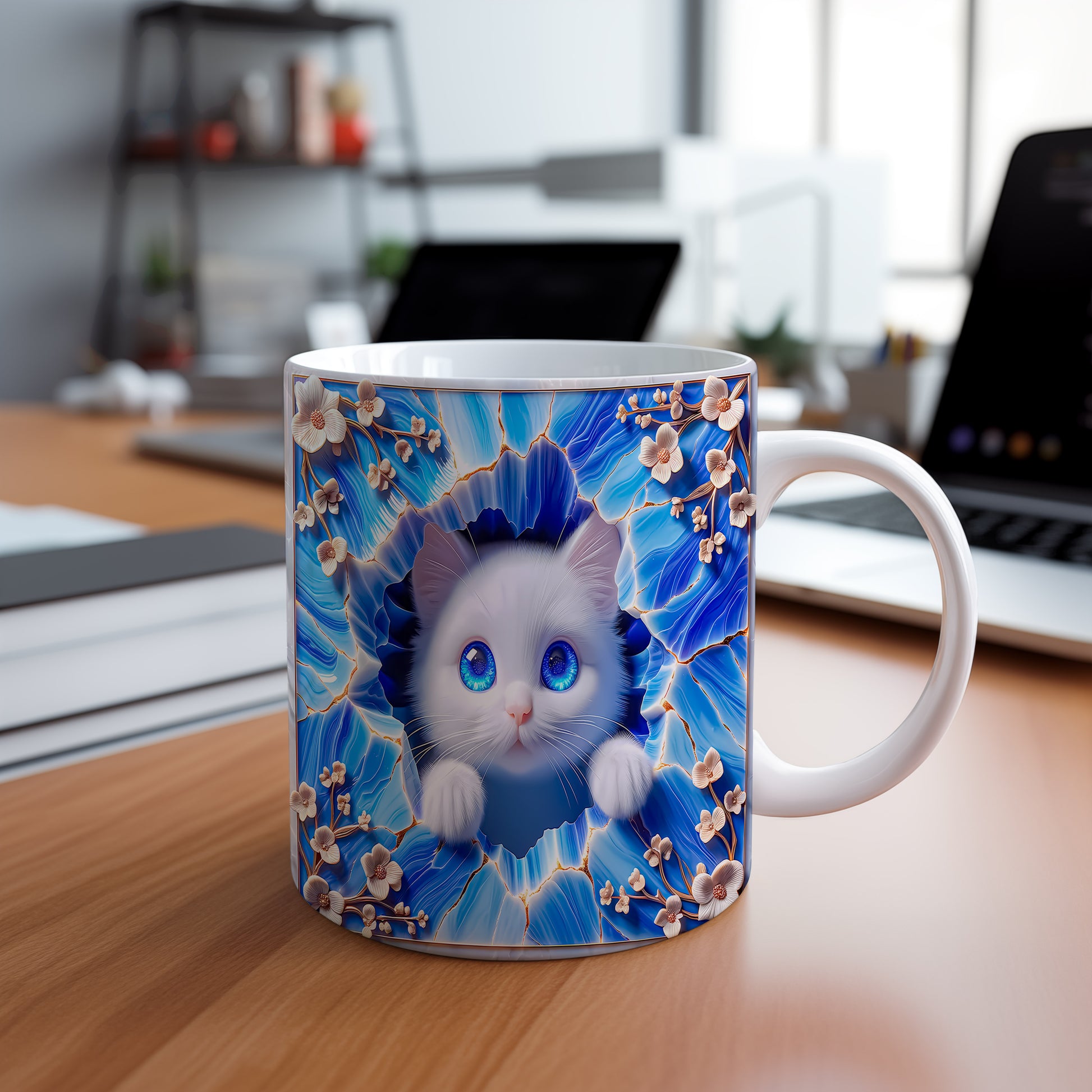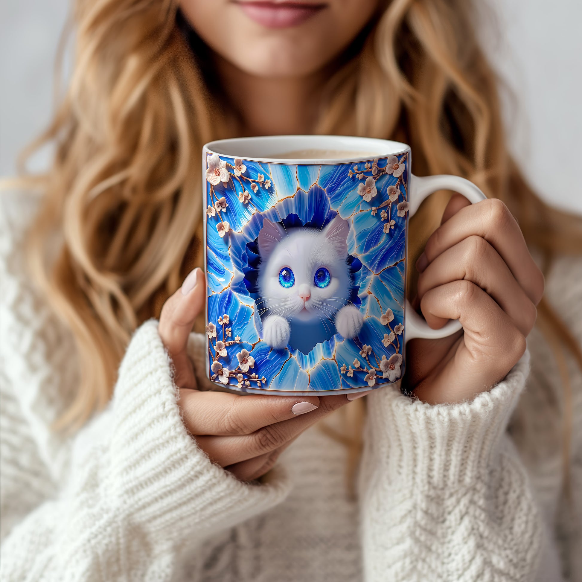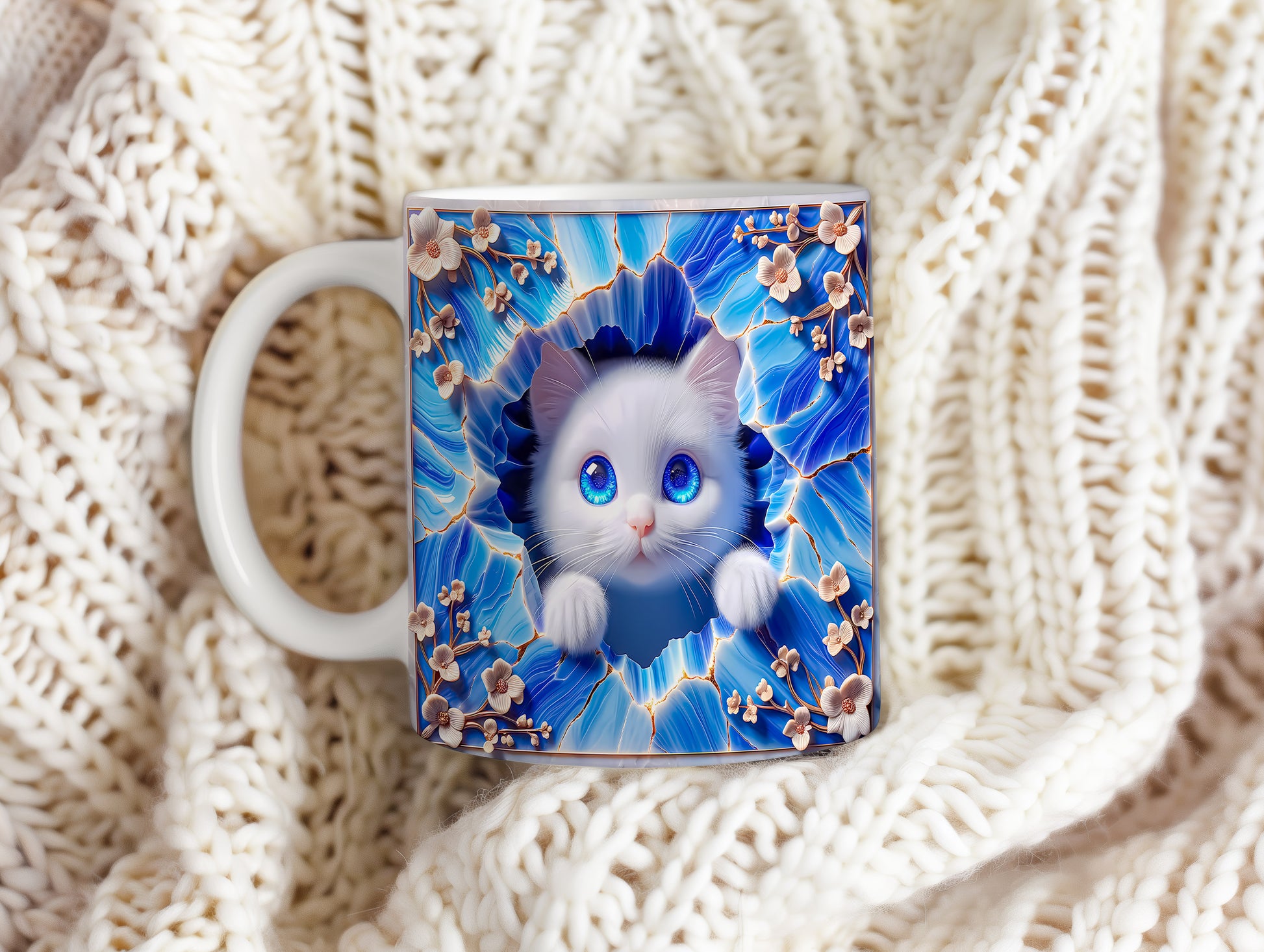 Tento keramický hrnek zobrazuje roztomilou bílou kočičku s velkýma modrýma očima. Je ideální pro milovníky koček a skvělý tip na dárek pro přátele nebo rodinu. Materiál: keramika. Objem: 330 ml. Vhodné do myčky i mikrovlnky. Používání tohoto hrnku přináší radost a útulnost do každého dne.