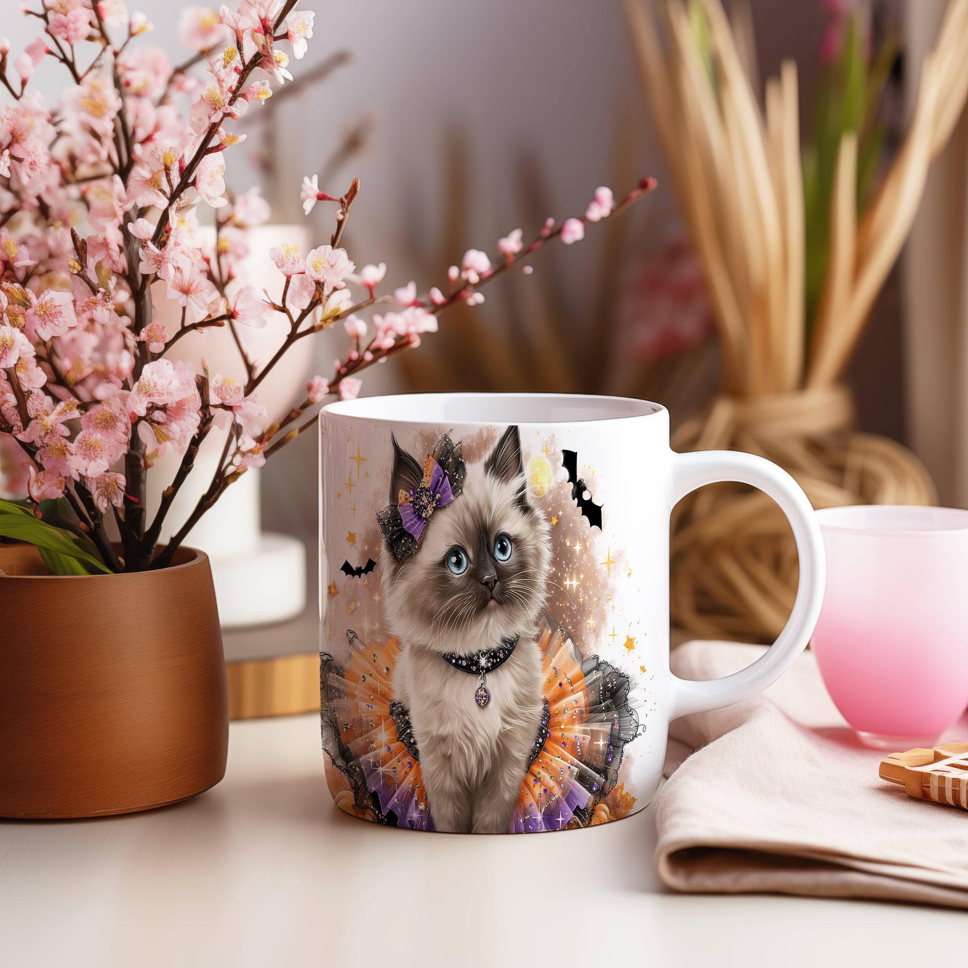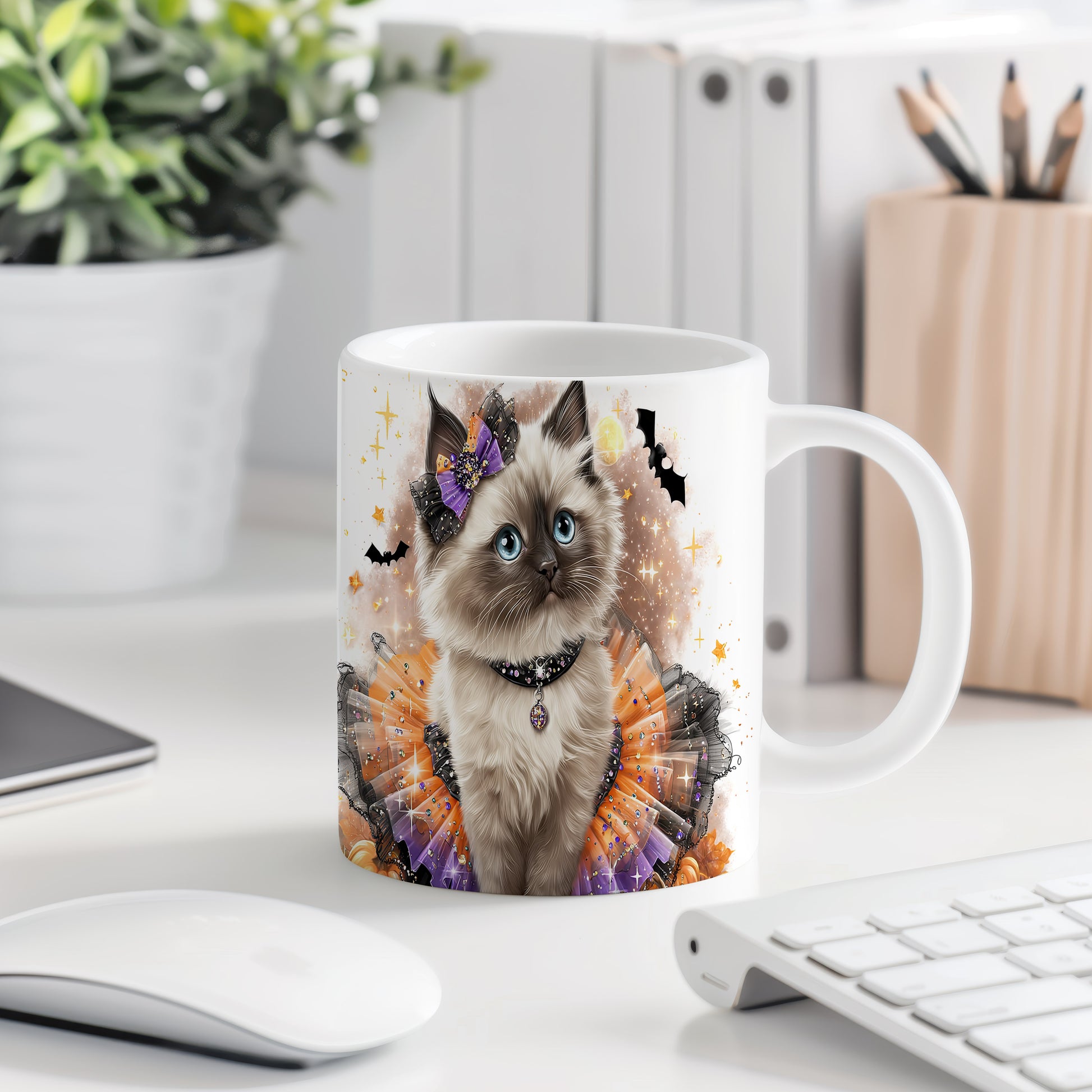 Tento keramický hrnek zdobí roztomilá kočička v kostýmu s mašlí, ideální pro milovníky koček a originální design. Skvělý tip na dárek pro přátele nebo rodinu, kteří ocení nejen vzhled, ale i praktické využití. Materiál: keramika. Objem: 330 ml. Vhodné do myčky i mikrovlnky. Používáním tohoto hrnku si užijete každé sousto a nápoj.