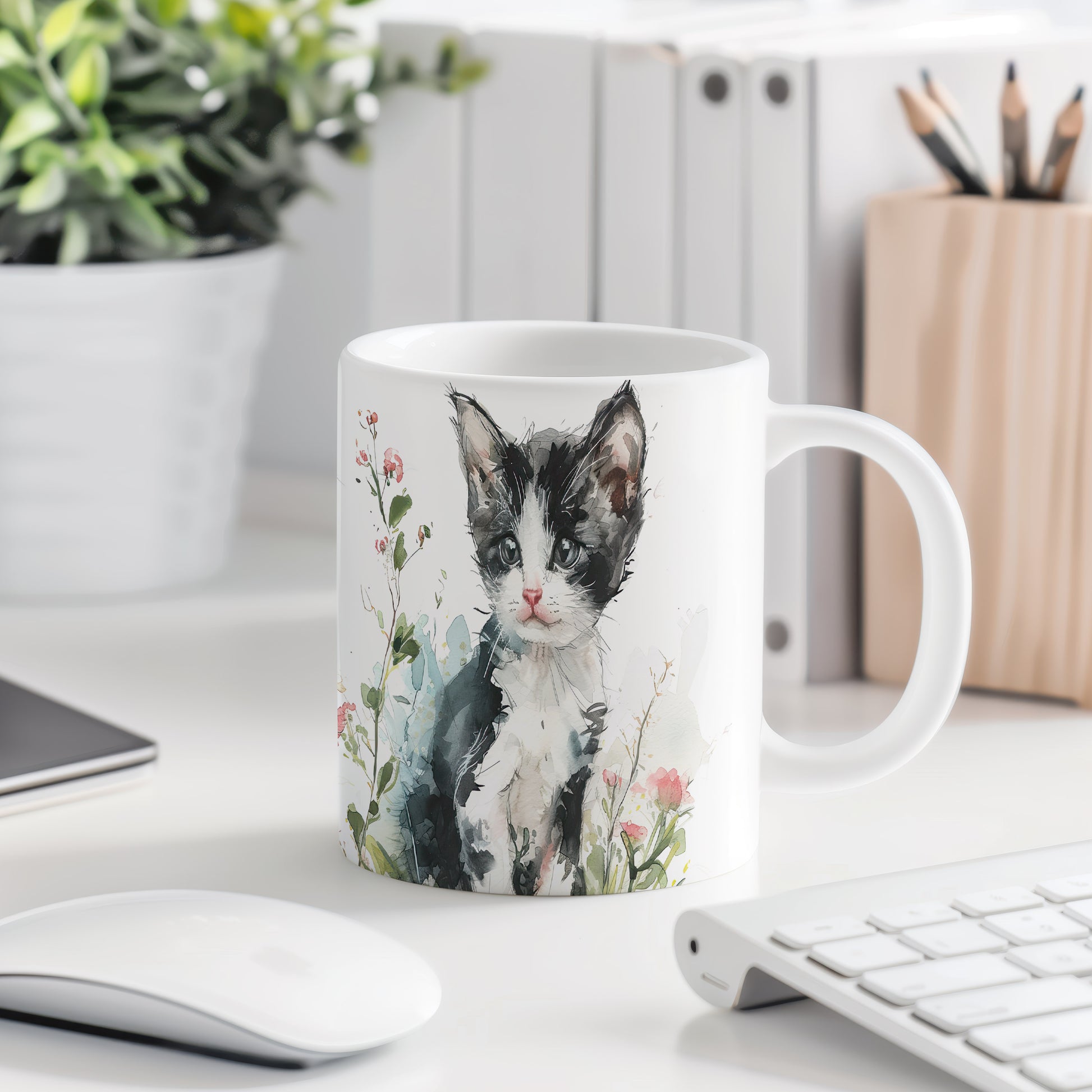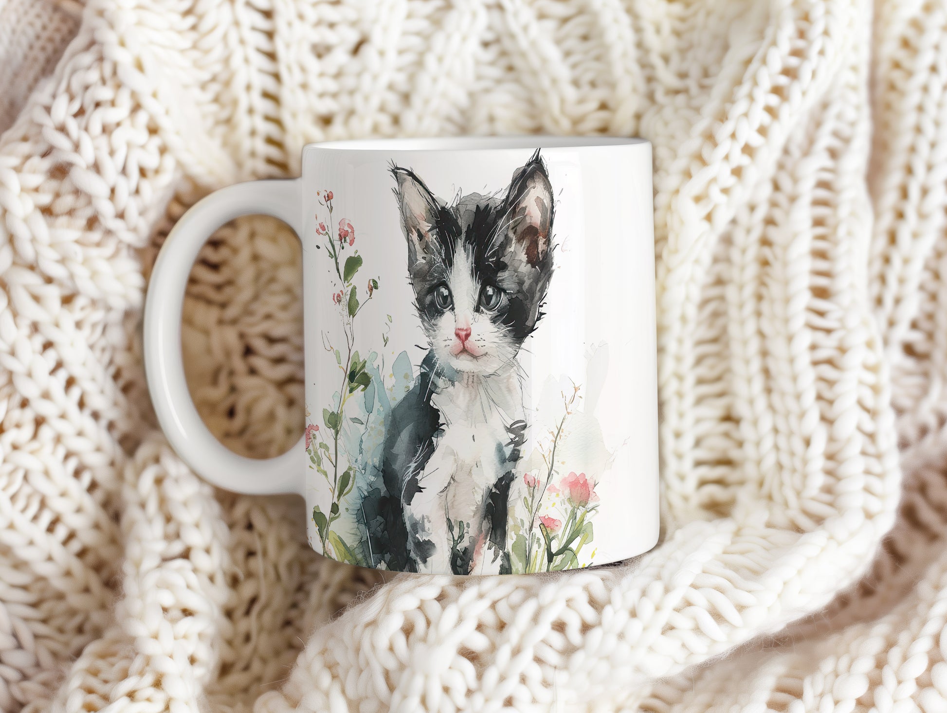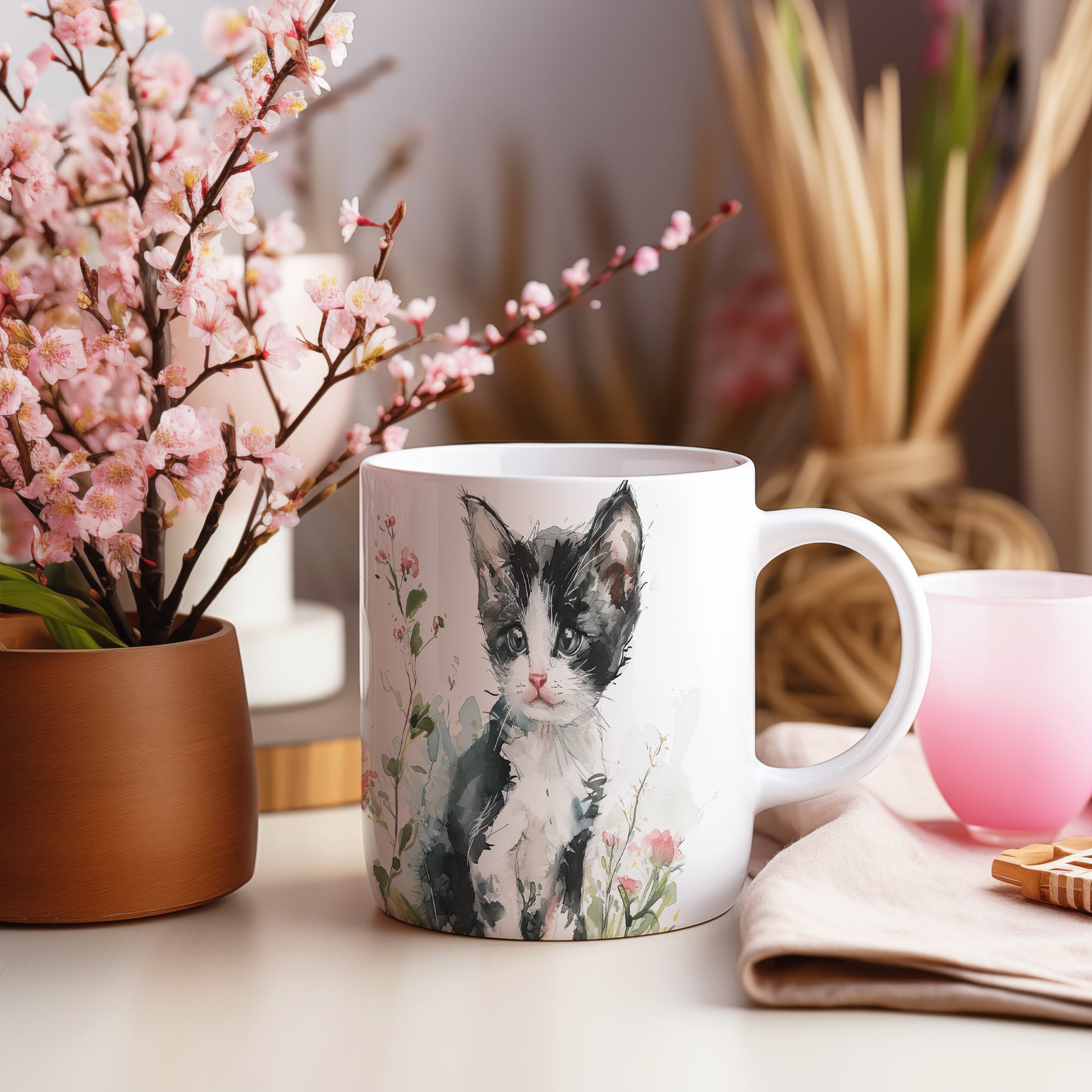 Hrnek s motivem roztomilé černobílé kočičky obklopené květinami je ideální pro milovníky zvířat a útulnou atmosféru. Skvělý tip na dárek pro přátele nebo rodinu, kteří ocení originální design. Materiál: keramika. Objem: 330 ml. Vhodné do myčky i mikrovlnky. Tento hrnek přináší radost z každého doušku a zútulní váš domov.