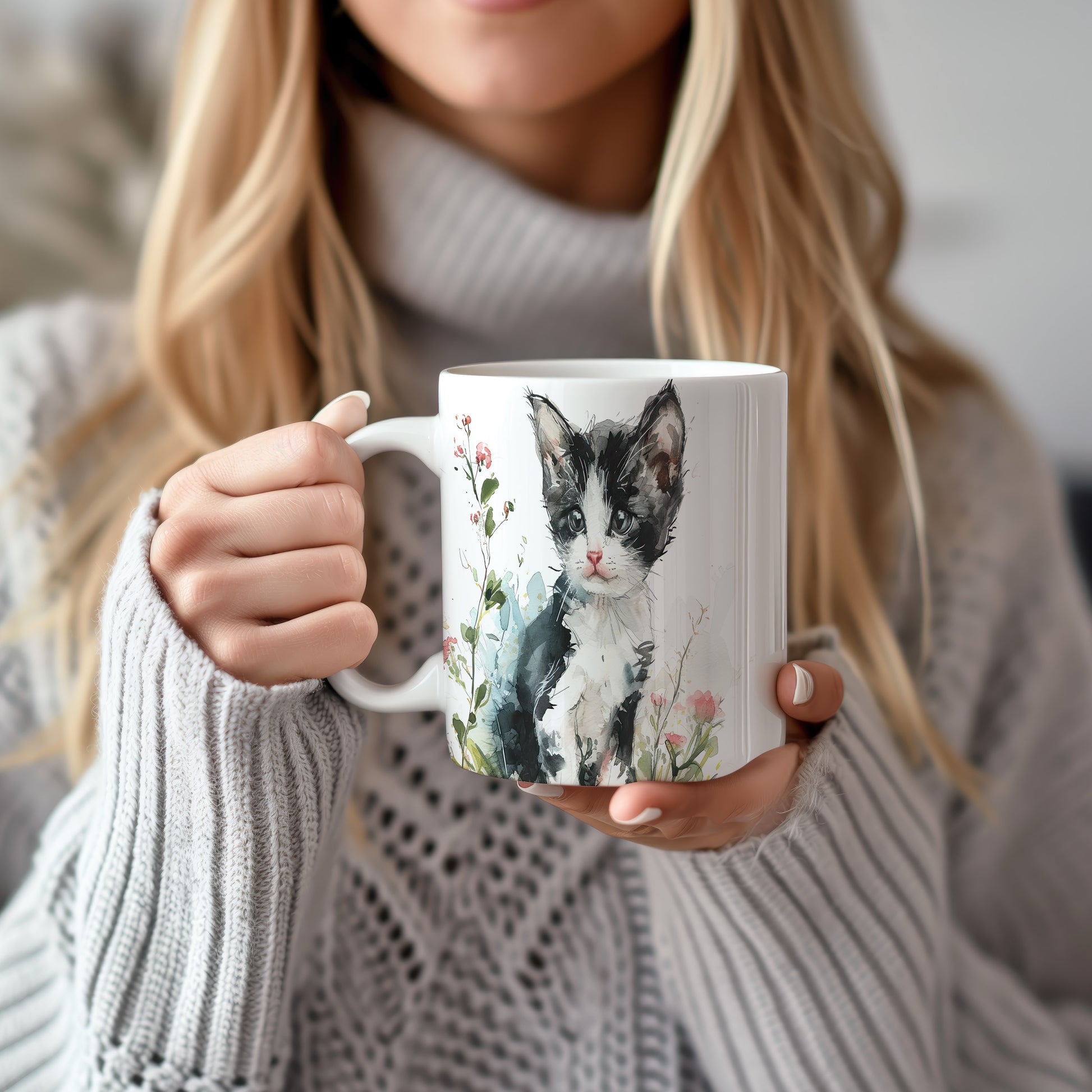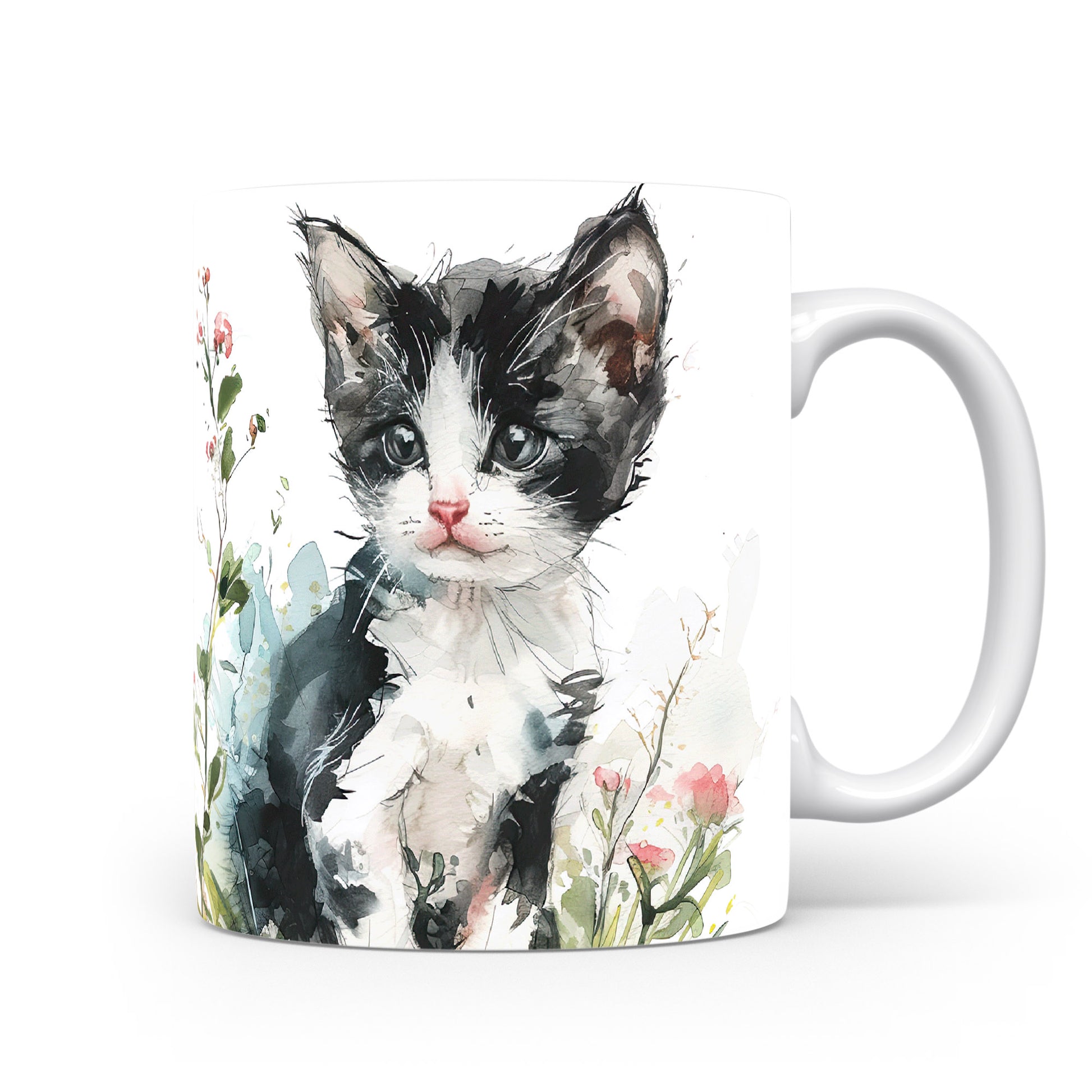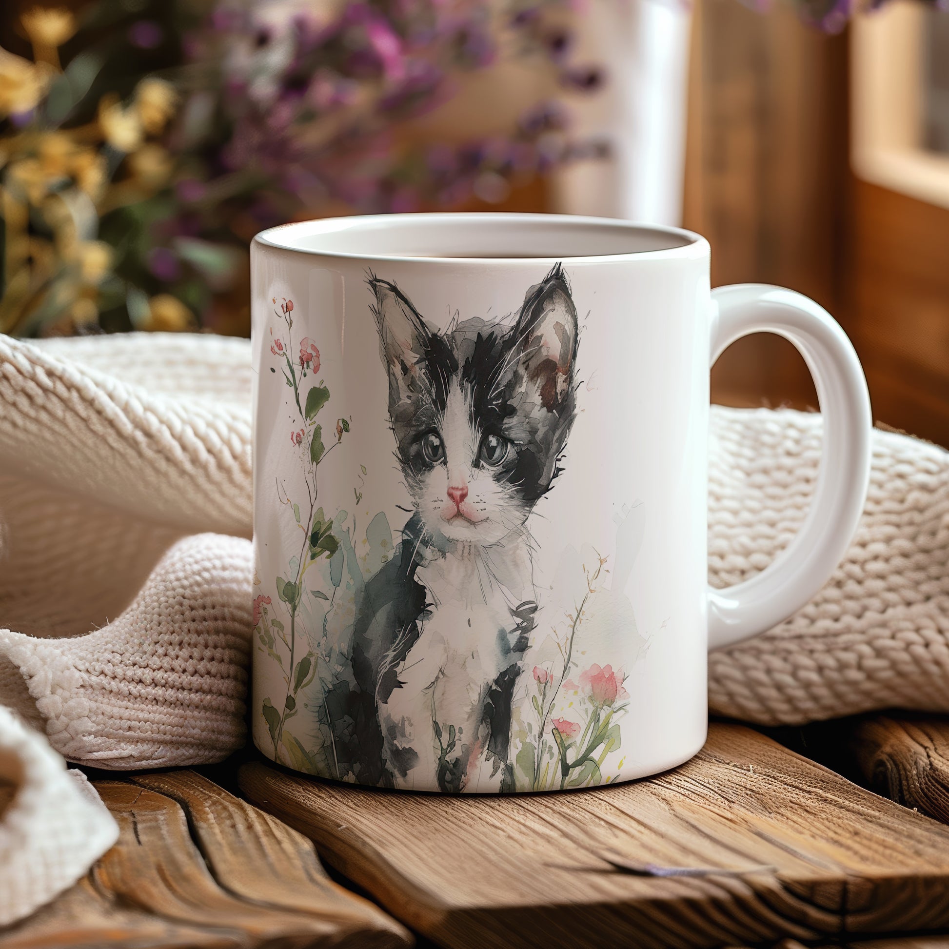 Hrnek s motivem roztomilé černobílé kočičky obklopené květinami je ideální pro milovníky zvířat a útulnou atmosféru. Skvělý tip na dárek pro přátele nebo rodinu, kteří ocení originální design. Materiál: keramika. Objem: 330 ml. Vhodné do myčky i mikrovlnky. Tento hrnek přináší radost z každého doušku a zútulní váš domov.