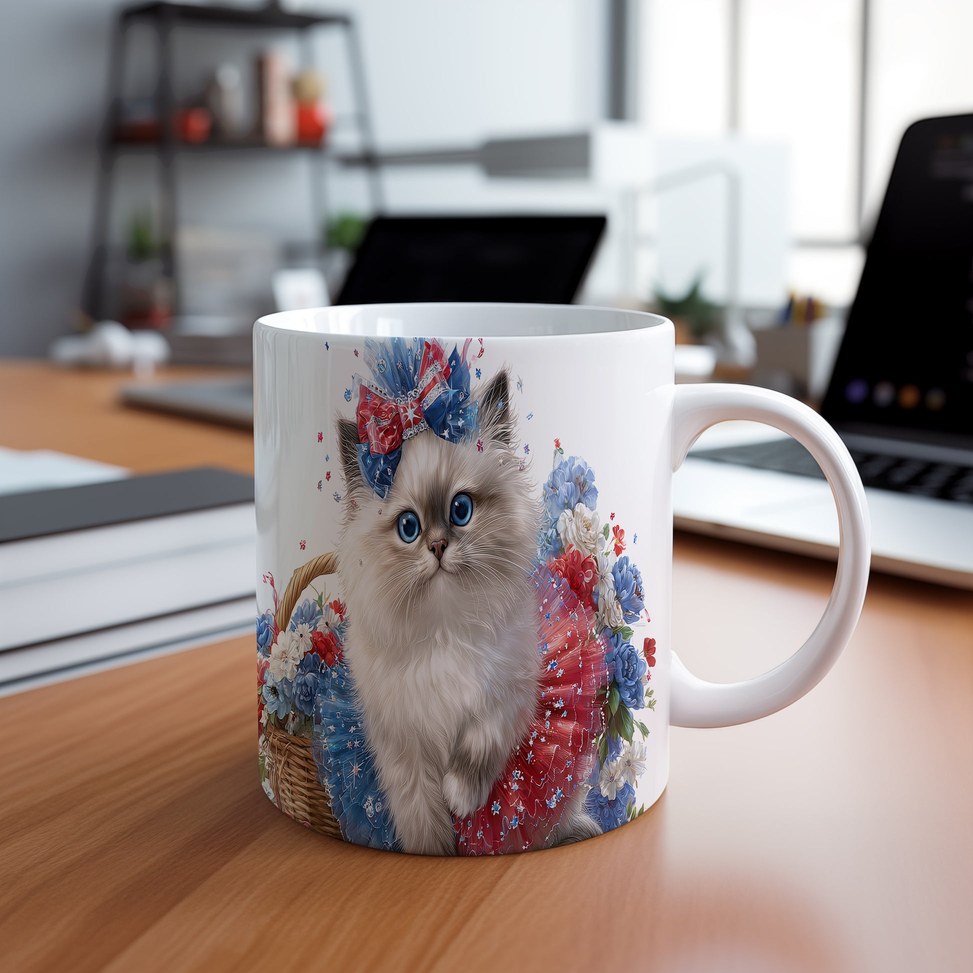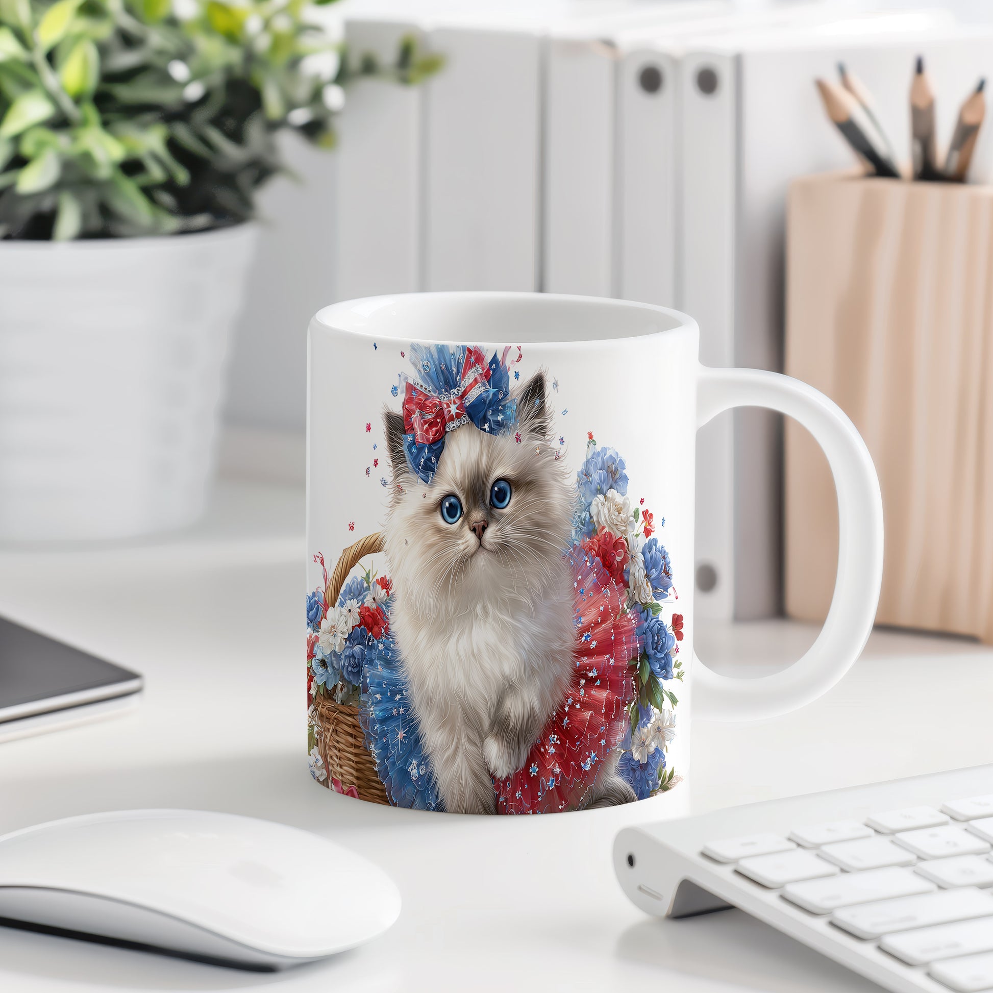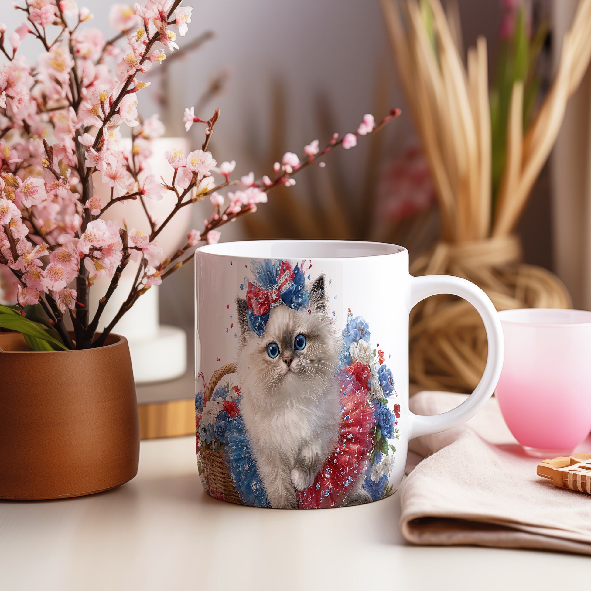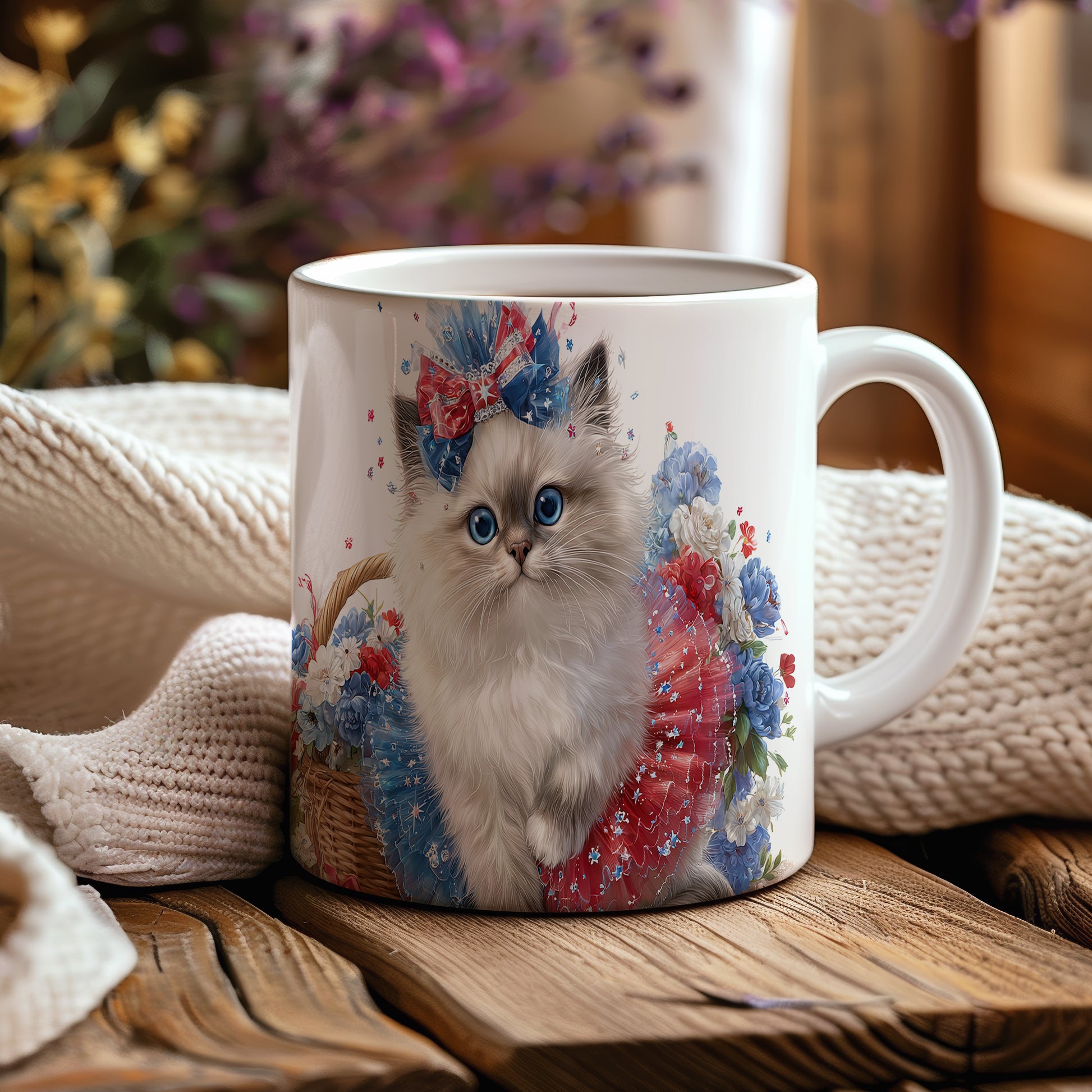 Tento hrnek zdobí ilustrace roztomilé kočičky s barevnou mašlí a květinovým vzorem. Je ideální pro všechny milovníky koček a skvělým dárkem pro přátele či rodinu. Materiál: keramika. Objem: 330 ml. Vhodné do myčky i mikrovlnky. Užívejte si svůj oblíbený nápoj s tímto veselým hrnkem, který přináší radost do každého dne.