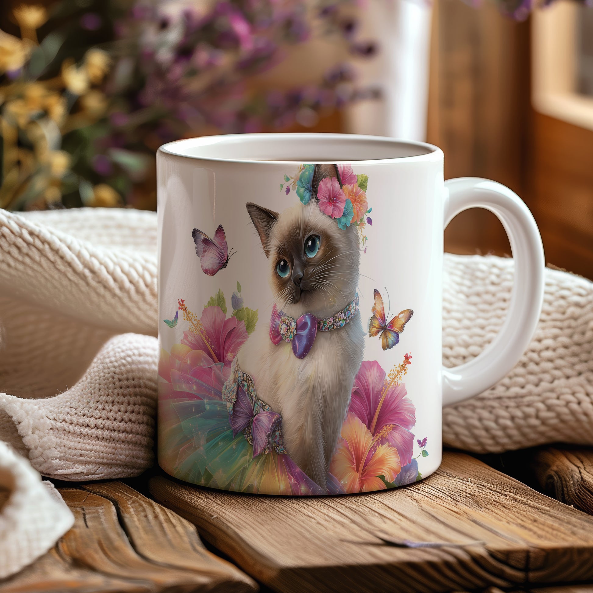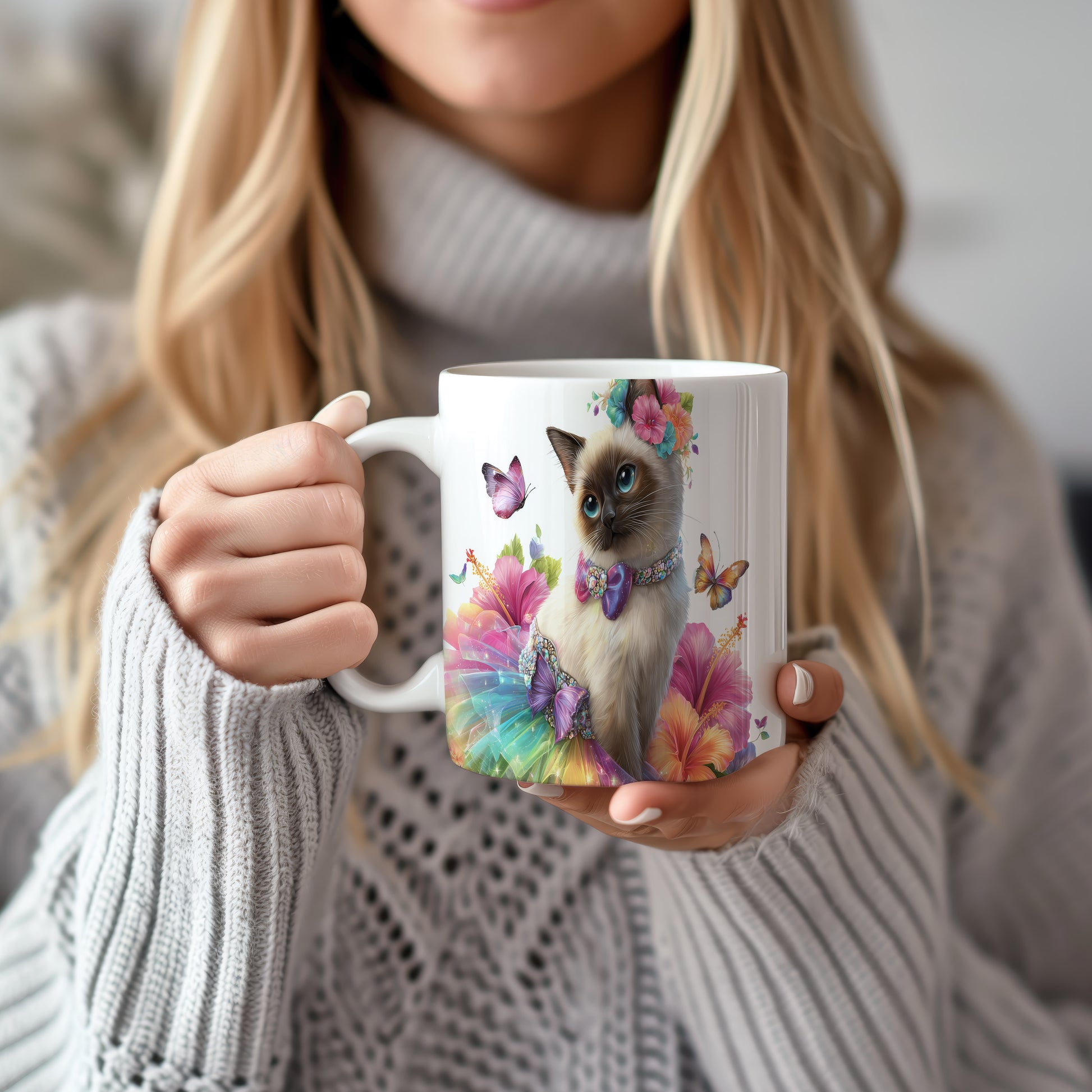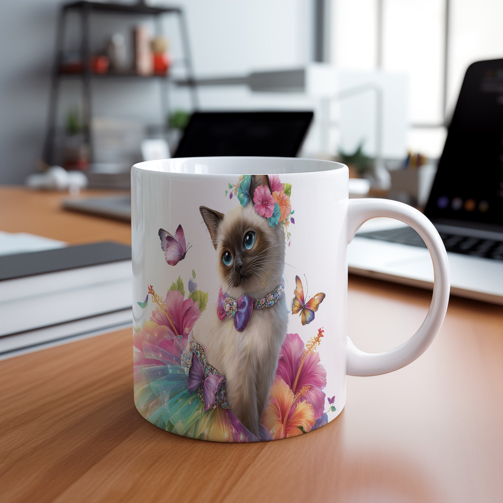 Tento hrnek zobrazuje roztomilou kočičku obklopenou květinami a motýlky. Je ideální pro milovníky koček a květin, skvělý tip na dárek pro přátele nebo rodinu. Materiál: keramika. Objem: 330 ml. Vhodné do myčky i mikrovlnky. Tento hrnek přináší radost do každodenního pití a potěší každého, kdo má rád přírodu.