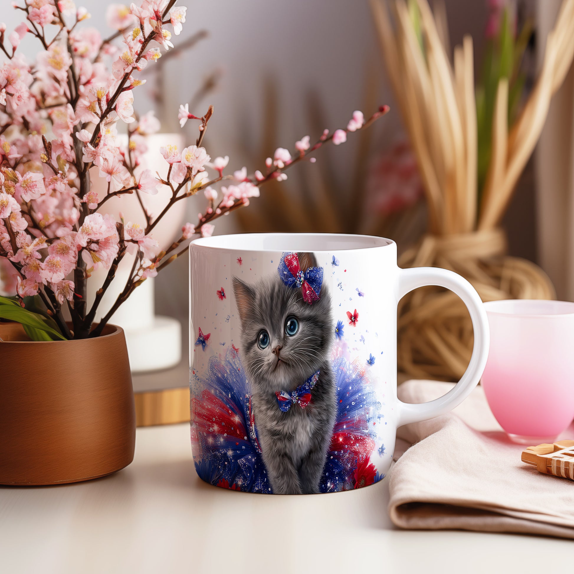 Hrnek s roztomilou kočičkou v mašličkách potěší každého milovníka zvířat. Tento hrnek je skvělým dárkem pro děti i dospělé, kteří ocení hravý design. Materiál: keramika. Objem: 330 ml. Vhodné do myčky i mikrovlnky. Používání tohoto hrnku přináší radost a zábavu při každém doušku.