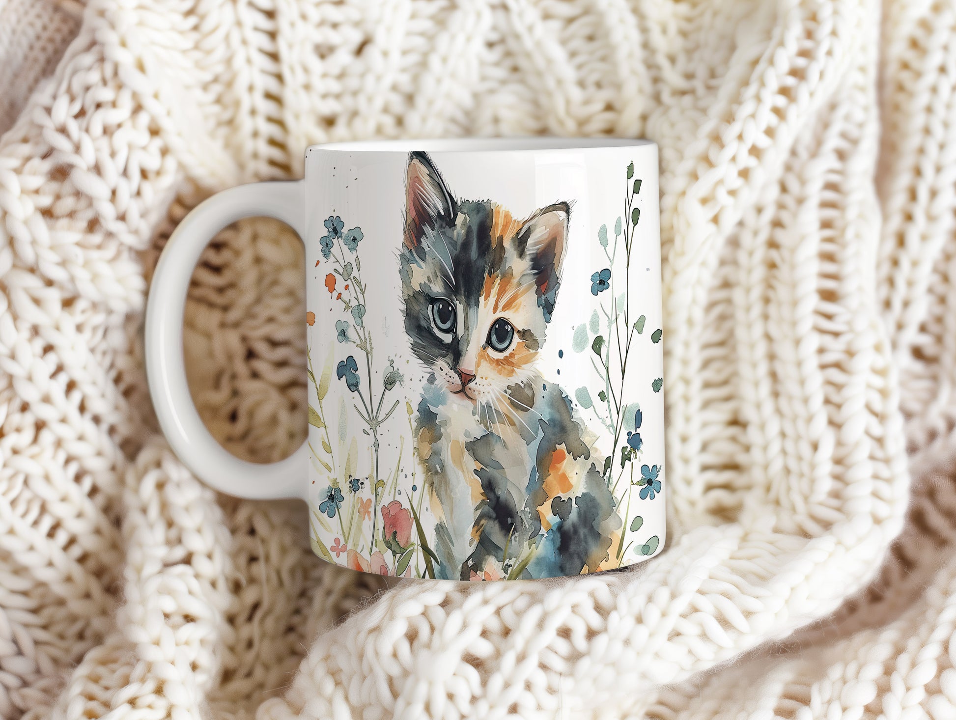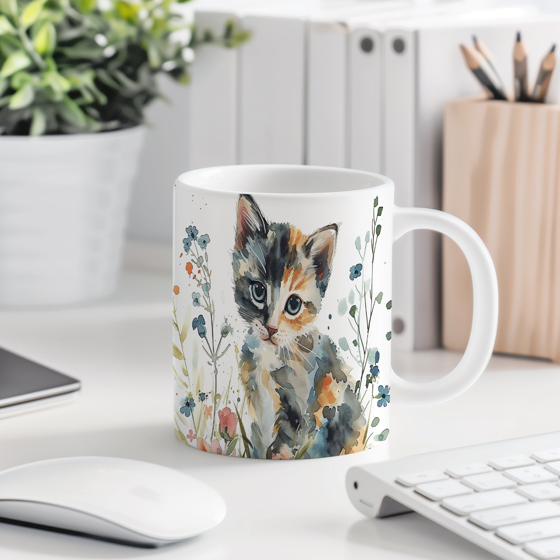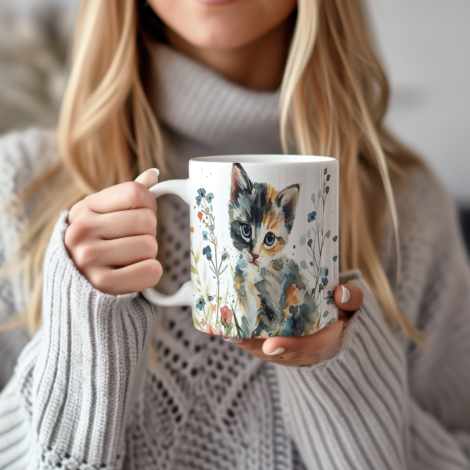 Tento keramický hrnek s roztomilou kočičkou a květinovým motivem je ideální pro všechny milovníky koček. Skvěle se hodí jako dárek pro přátele nebo rodinu, kteří mají rádi zvířata. Materiál: keramika. Objem: 330 ml. Vhodné do myčky i mikrovlnky. Používání tohoto hrnku přináší radost a útulnost do každého dne.