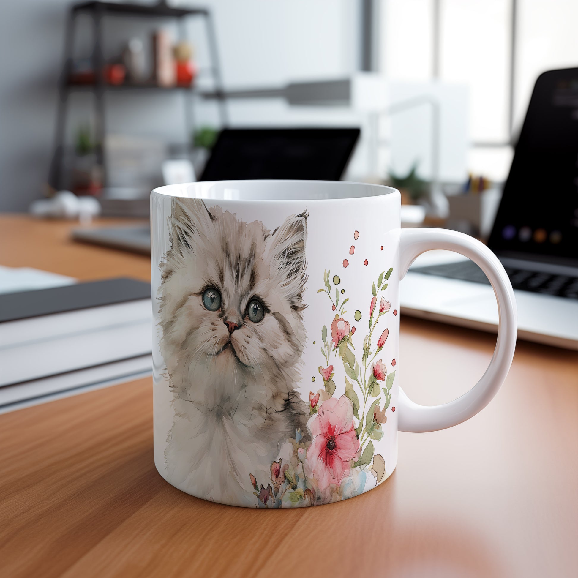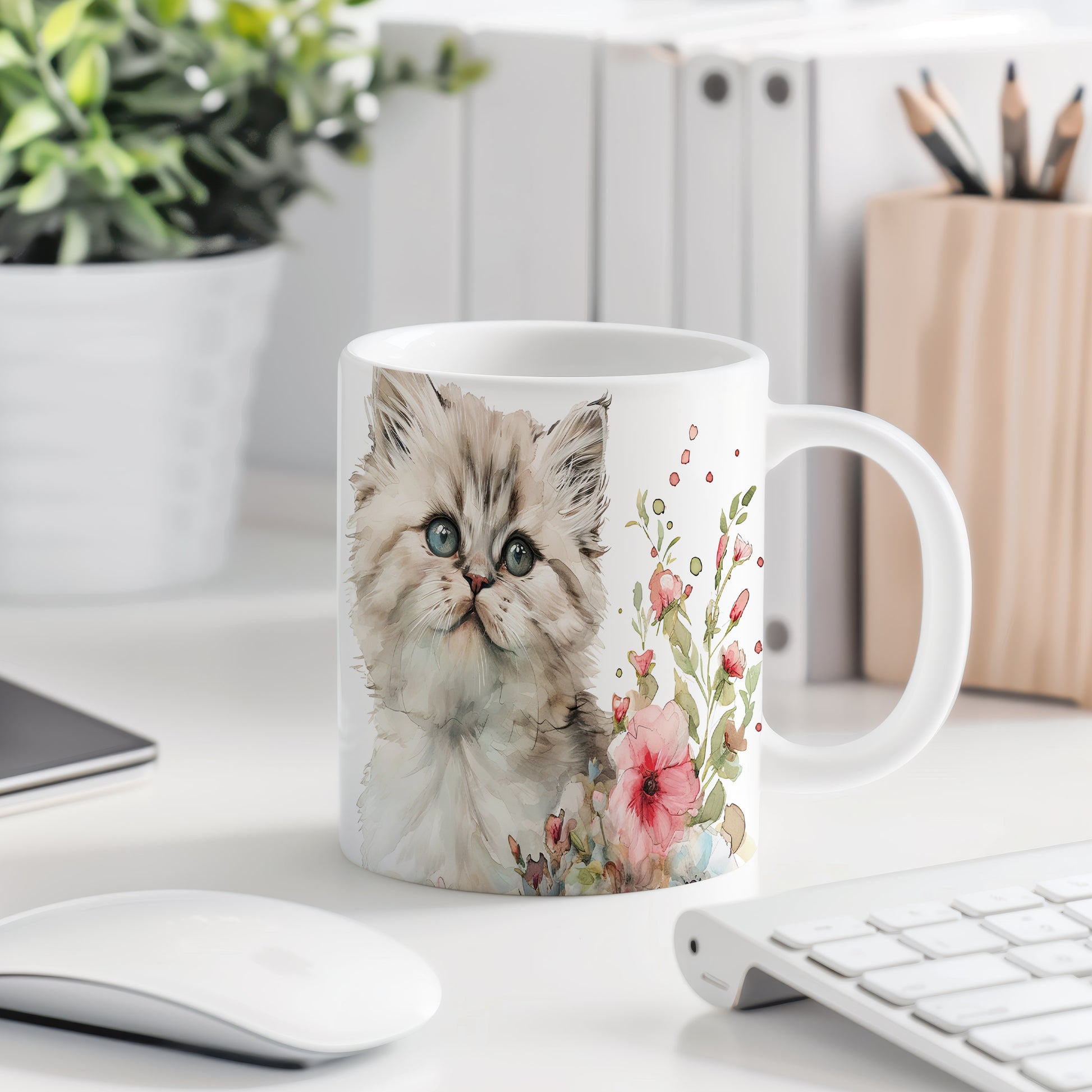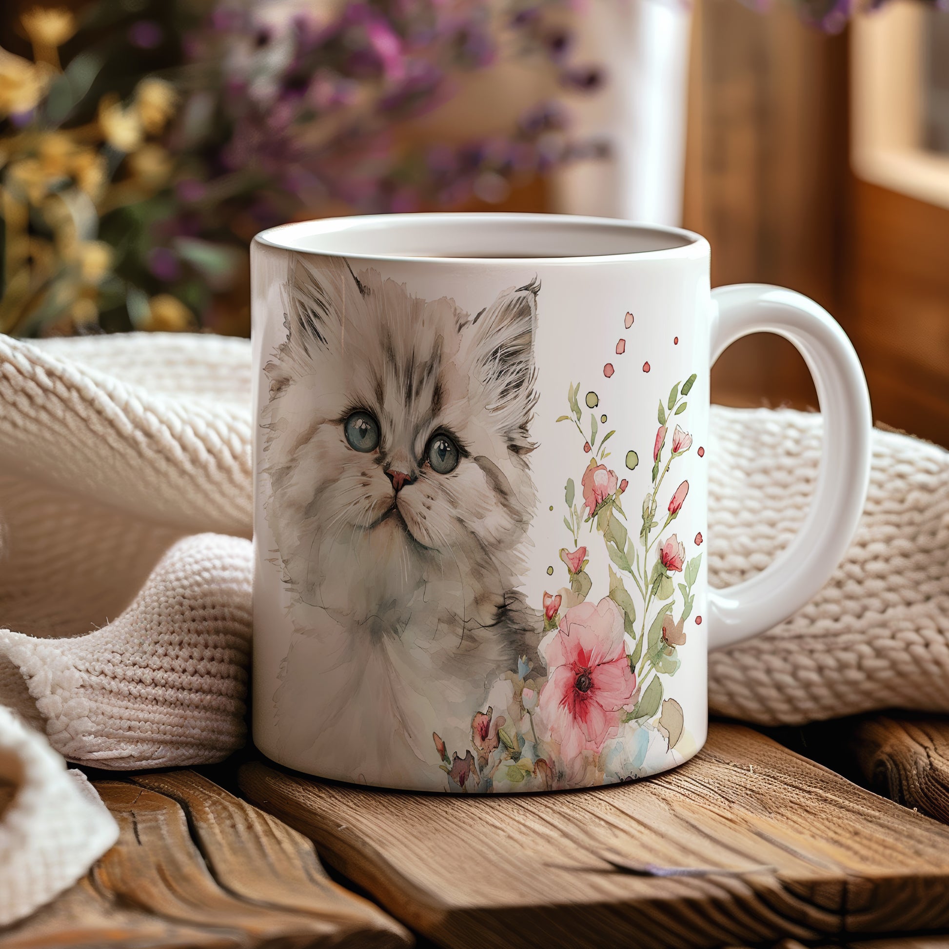 Tento hrnek s akvarelovým motivem zobrazuje roztomilou kočku obklopenou květinami. Je ideální pro milovníky zvířat a skvělým dárkem pro každého, kdo má rád kočky. Materiál: keramika. Objem: 330 ml. Vhodné do myčky i mikrovlnky. Používání tohoto hrnku přináší radost a útulnost do každého dne.