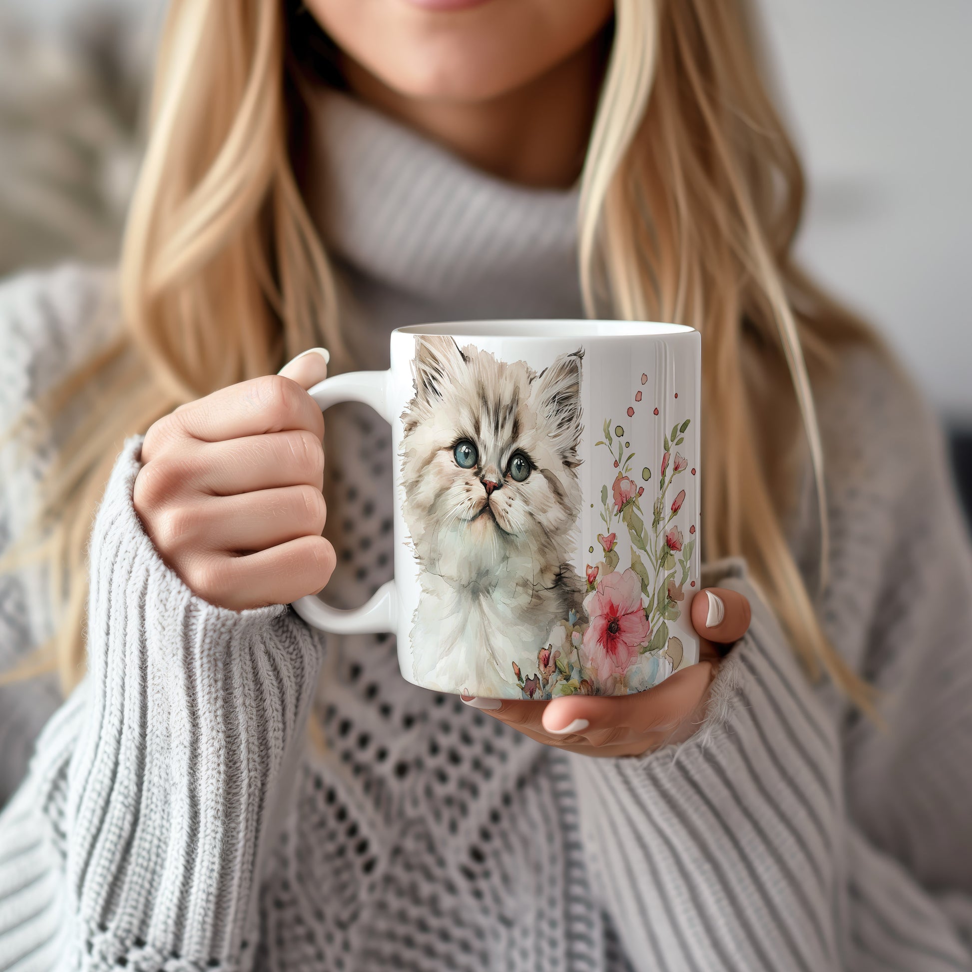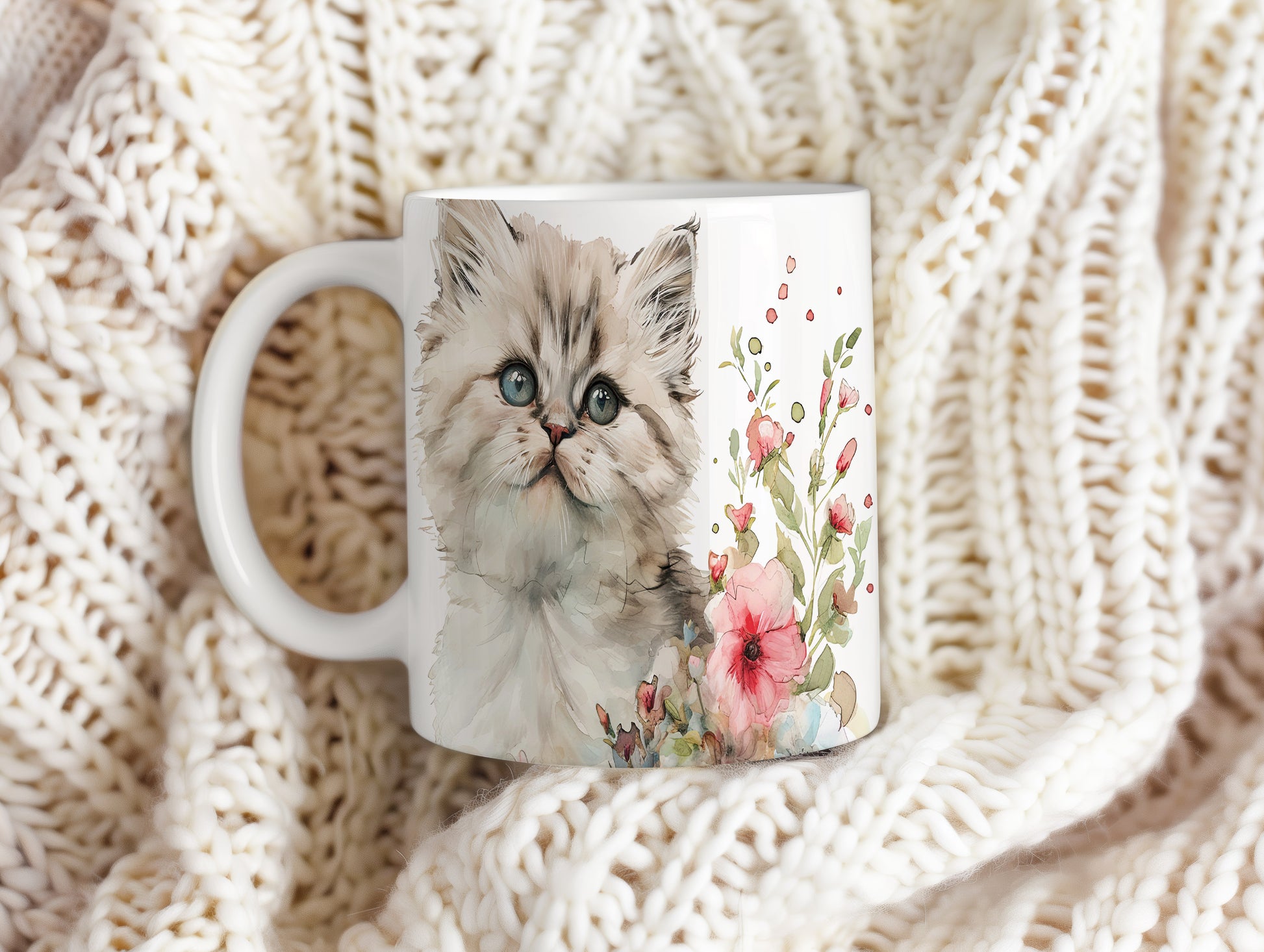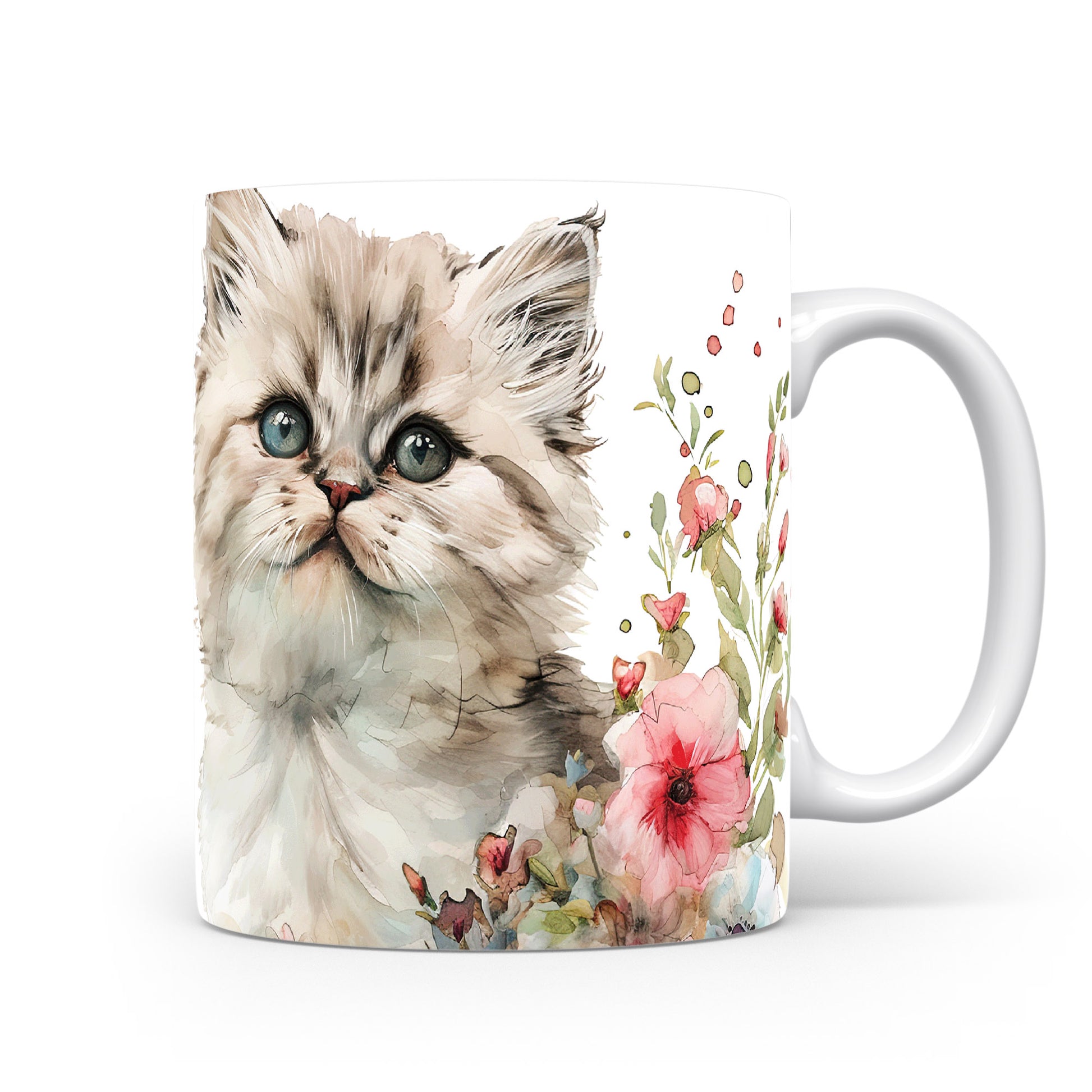 Tento hrnek s akvarelovým motivem zobrazuje roztomilou kočku obklopenou květinami. Je ideální pro milovníky zvířat a skvělým dárkem pro každého, kdo má rád kočky. Materiál: keramika. Objem: 330 ml. Vhodné do myčky i mikrovlnky. Používání tohoto hrnku přináší radost a útulnost do každého dne.