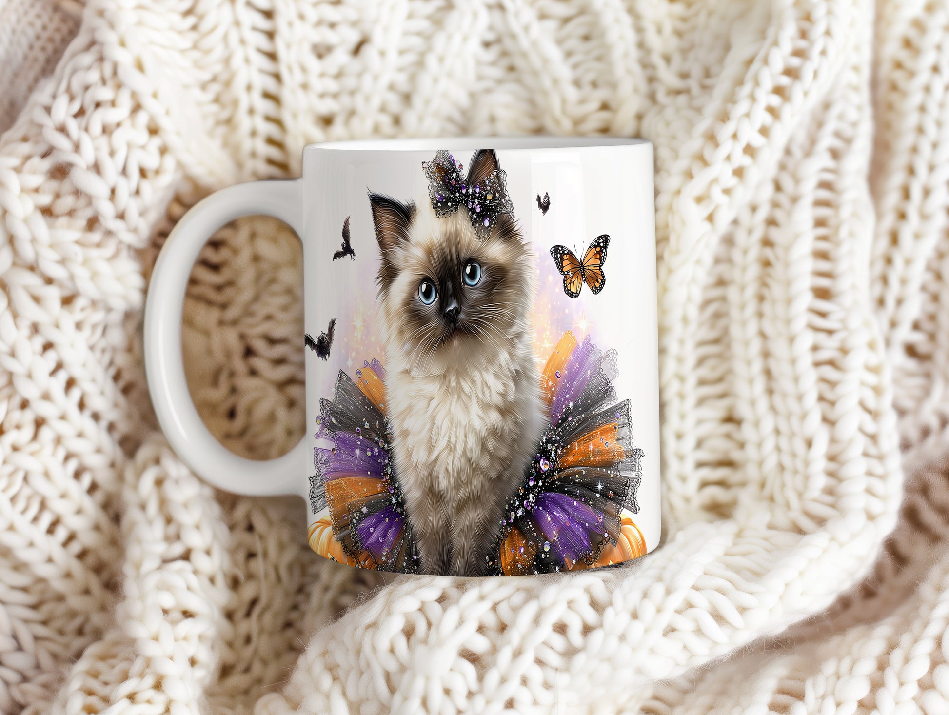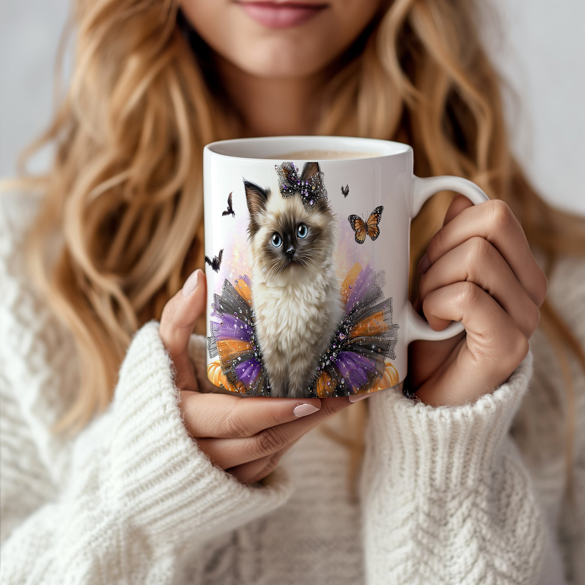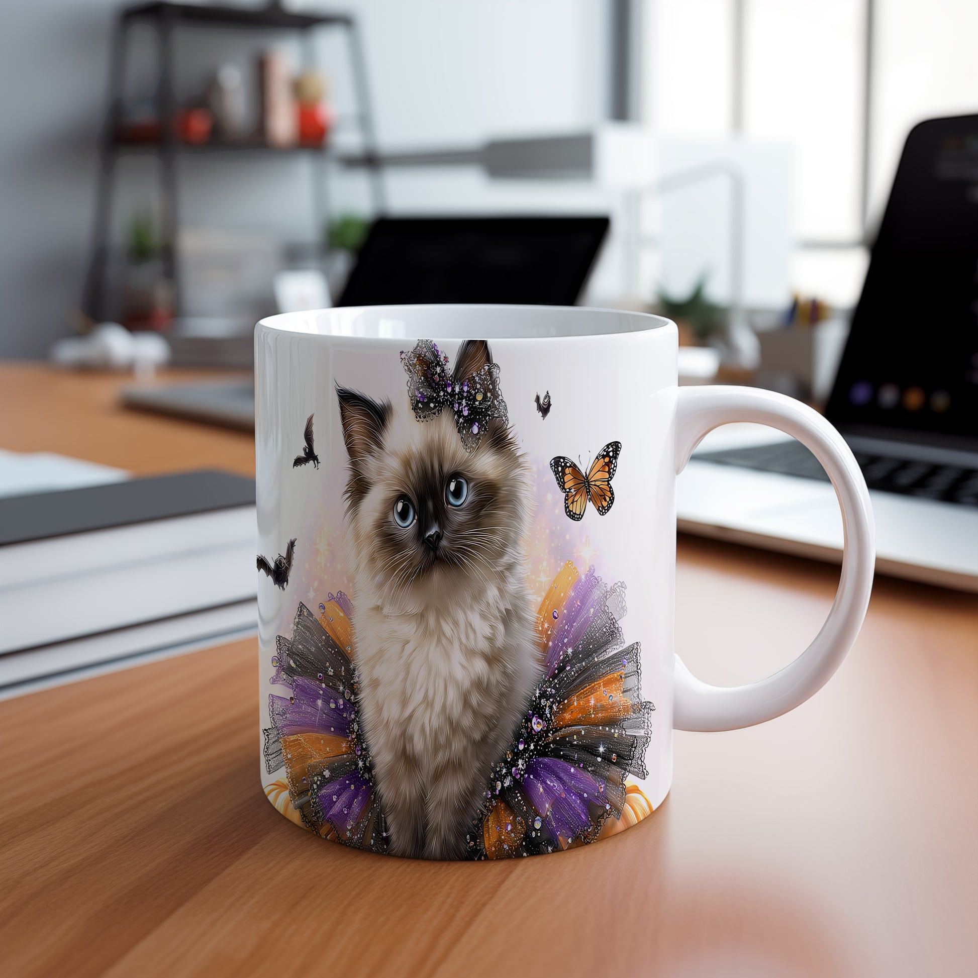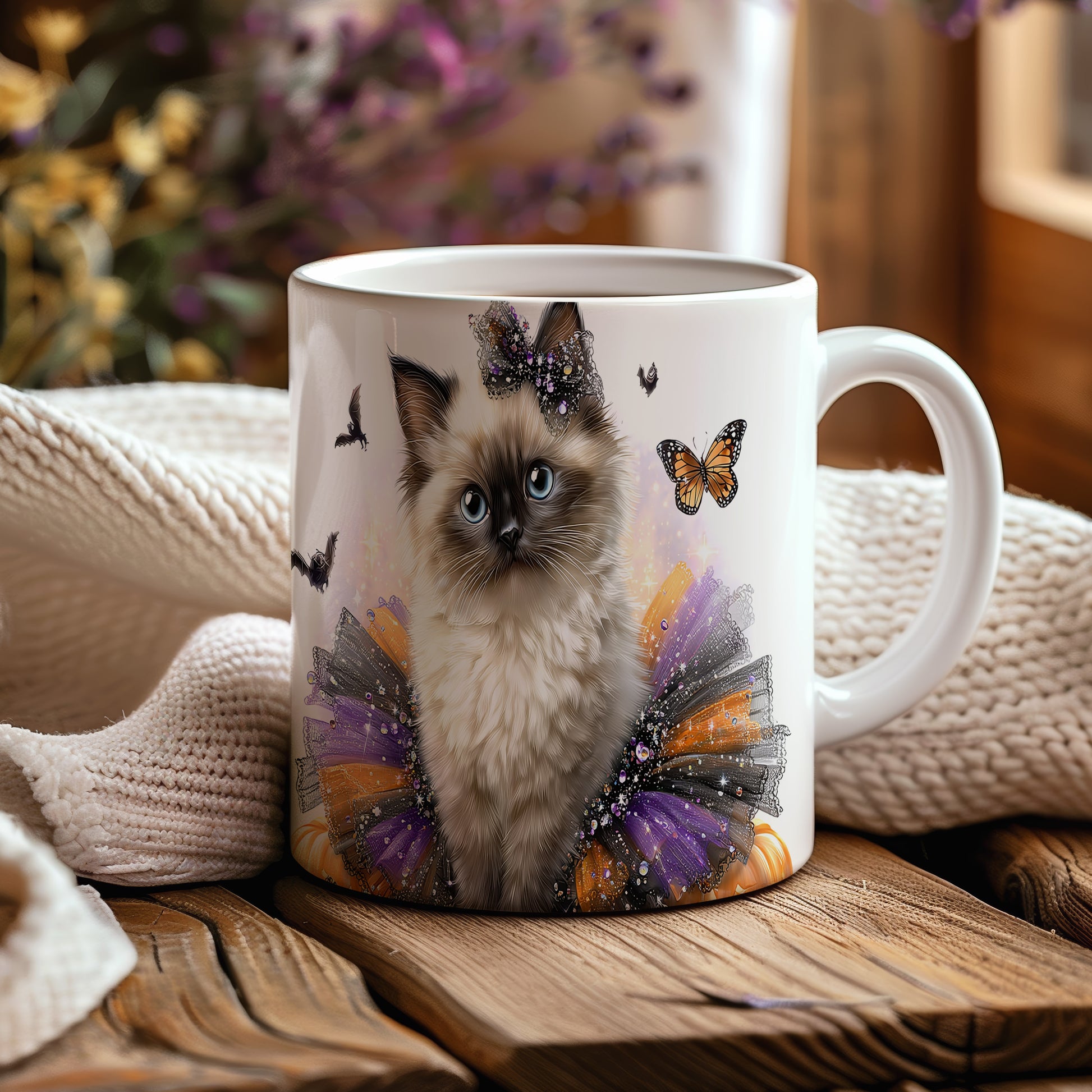 Tento hrnek zobrazuje roztomilou kočku s mašlí a barevnými motýlky. Je ideální pro milovníky koček a skvělým dárkem pro přátele nebo rodinu. Materiál: keramika. Objem: 330 ml. Vhodné do myčky i mikrovlnky. Používání tohoto hrnku přináší radost a zábavu při každém doušku.