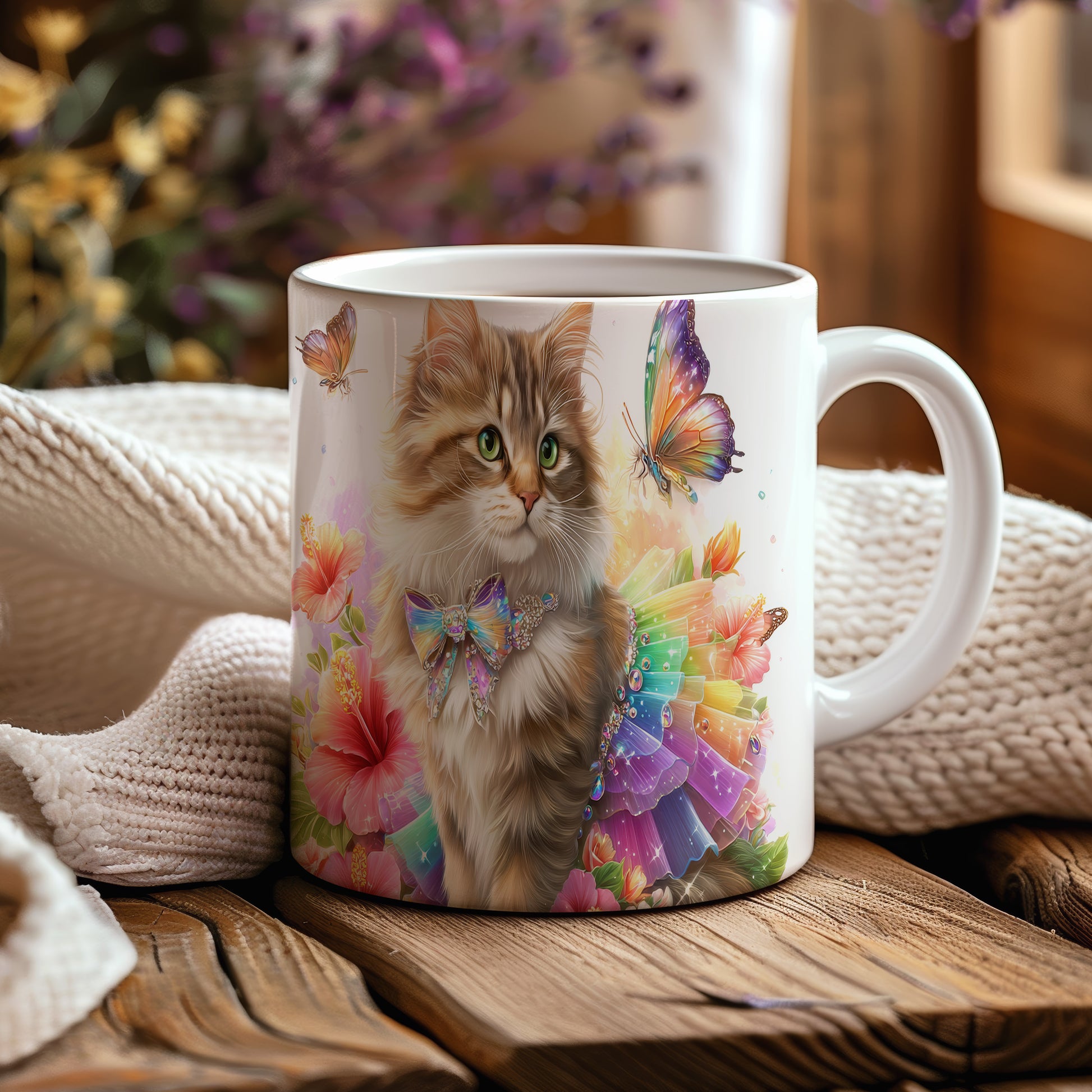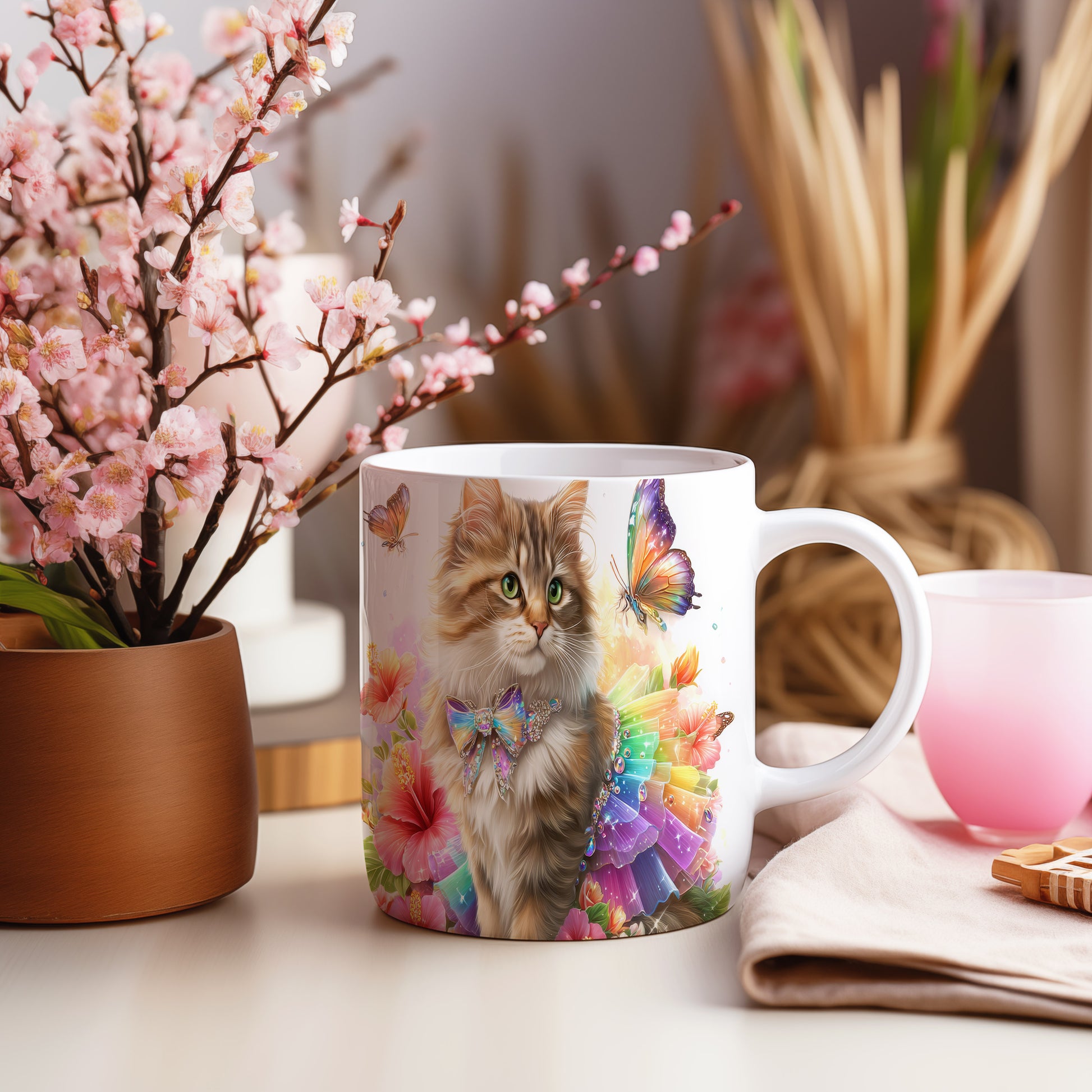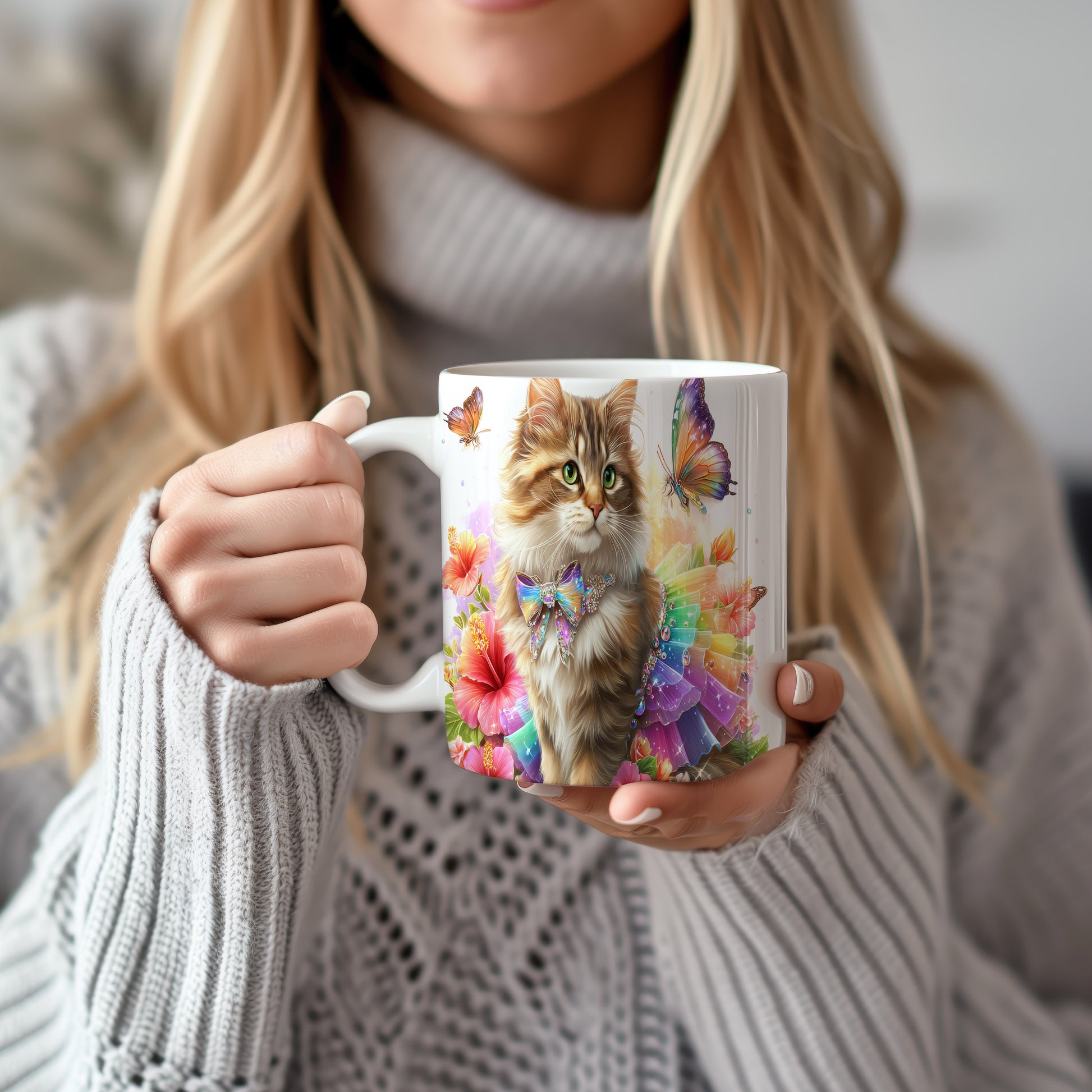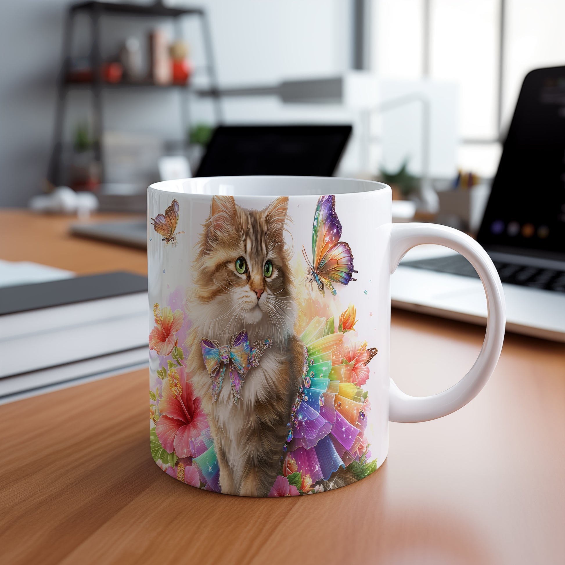 Hrnek s roztomilou kočkou a motýly je skvělým kouskem pro všechny milovníky zvířat. Tento keramický hrnek je ideálním dárkem pro přátele nebo rodinu, kteří ocení originální design. Materiál: keramika. Objem: 330 ml. Vhodné do myčky i mikrovlnky. Díky svému jedinečnému vzhledu přináší radost při každém doušku.