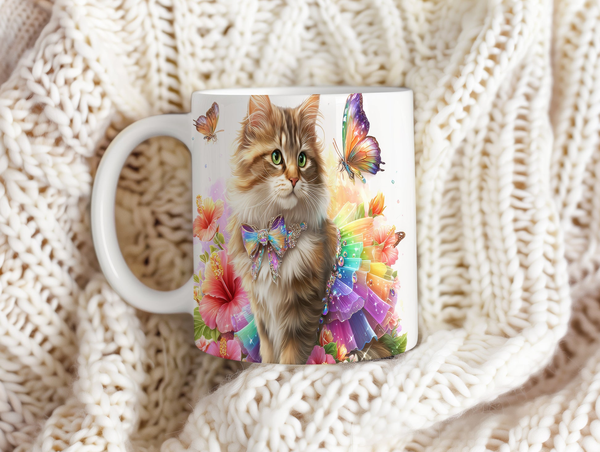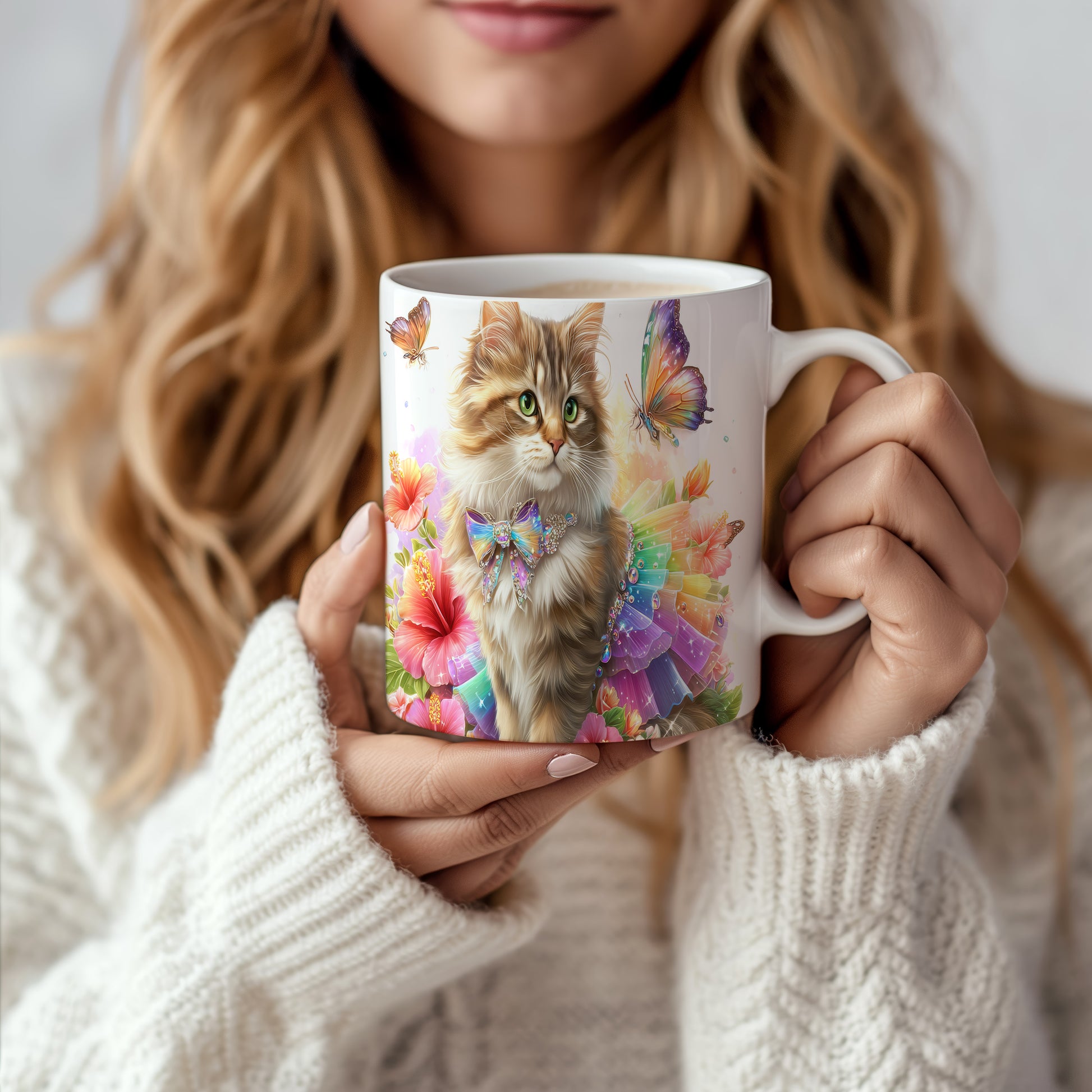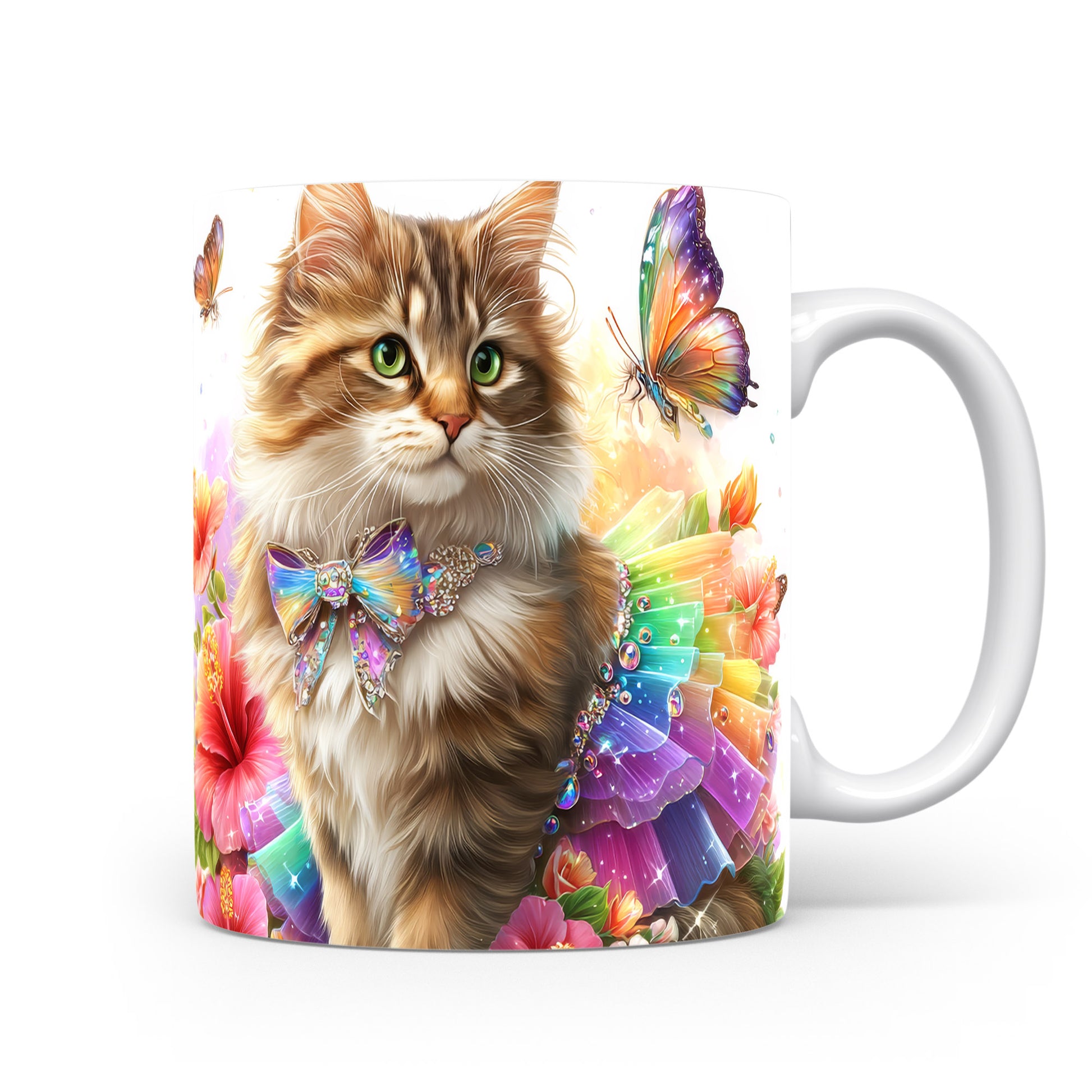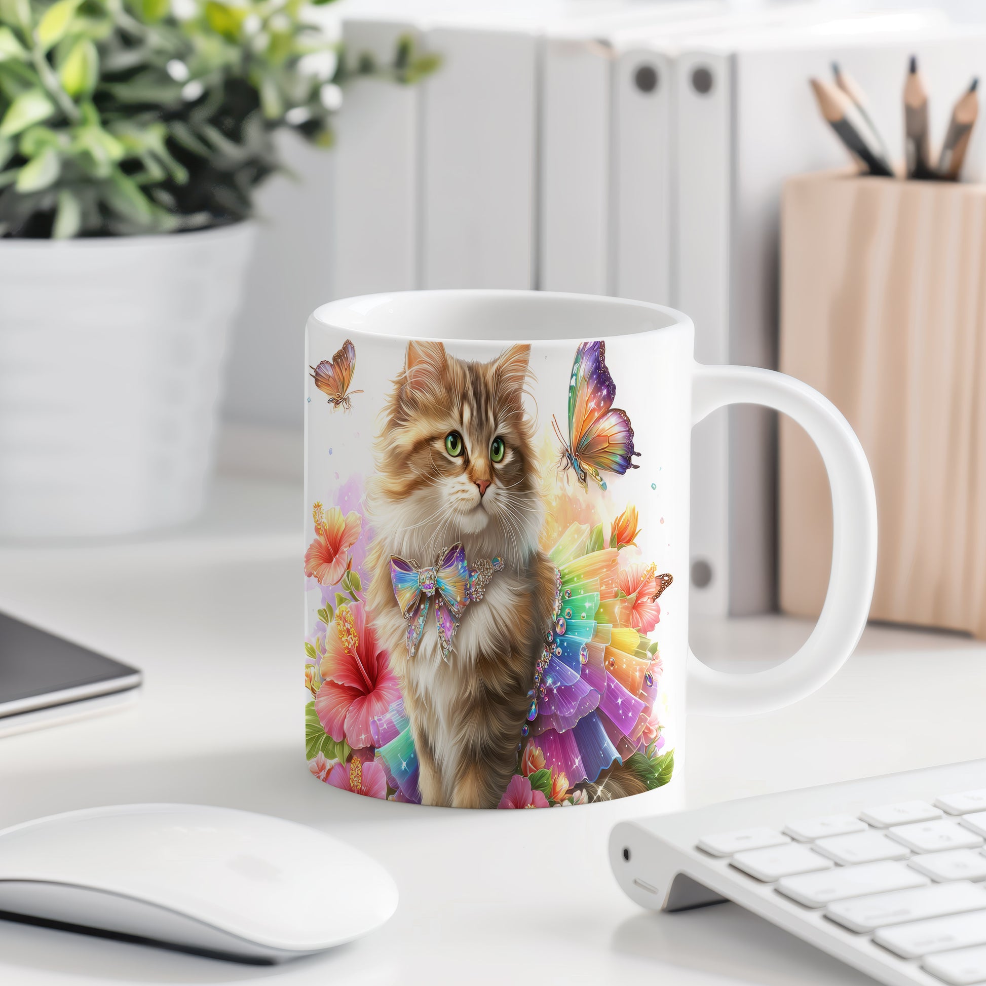Hrnek s roztomilou kočkou a motýly je skvělým kouskem pro všechny milovníky zvířat. Tento keramický hrnek je ideálním dárkem pro přátele nebo rodinu, kteří ocení originální design. Materiál: keramika. Objem: 330 ml. Vhodné do myčky i mikrovlnky. Díky svému jedinečnému vzhledu přináší radost při každém doušku.