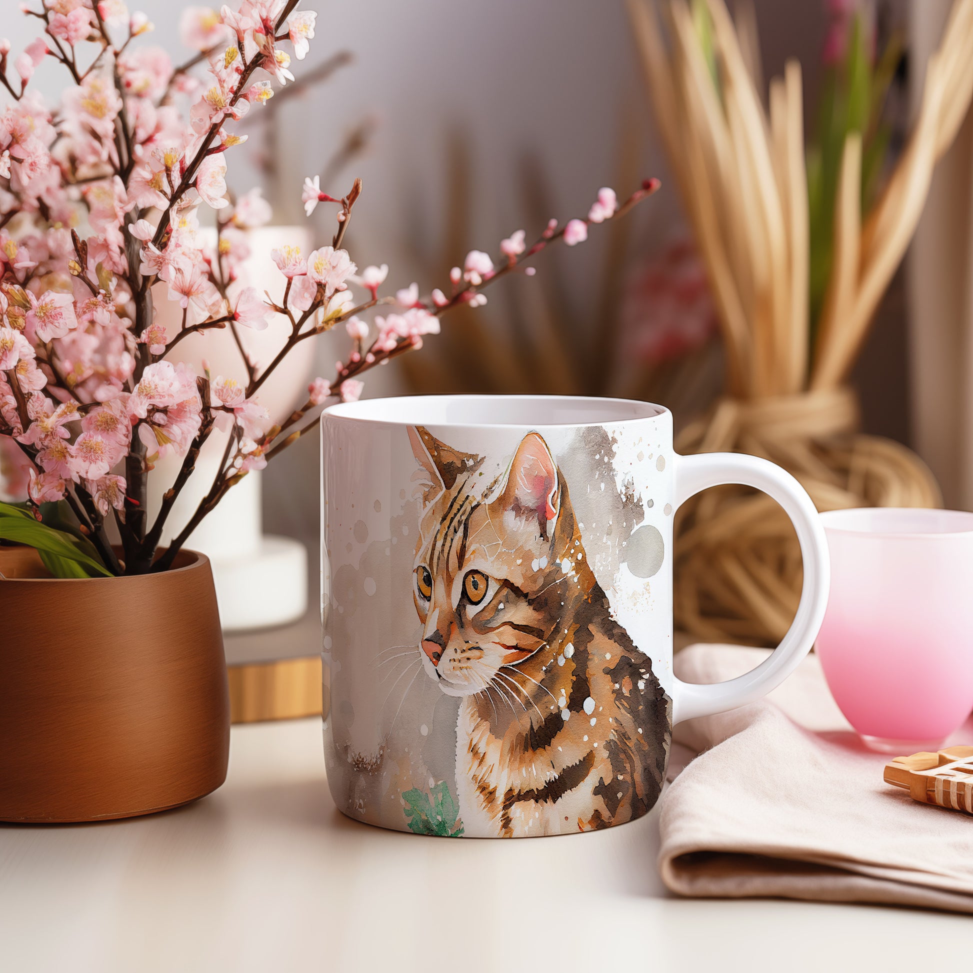 Hrnek s roztomilou kočkou – jemnými detaily