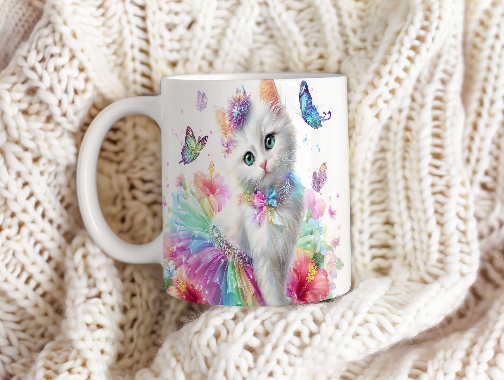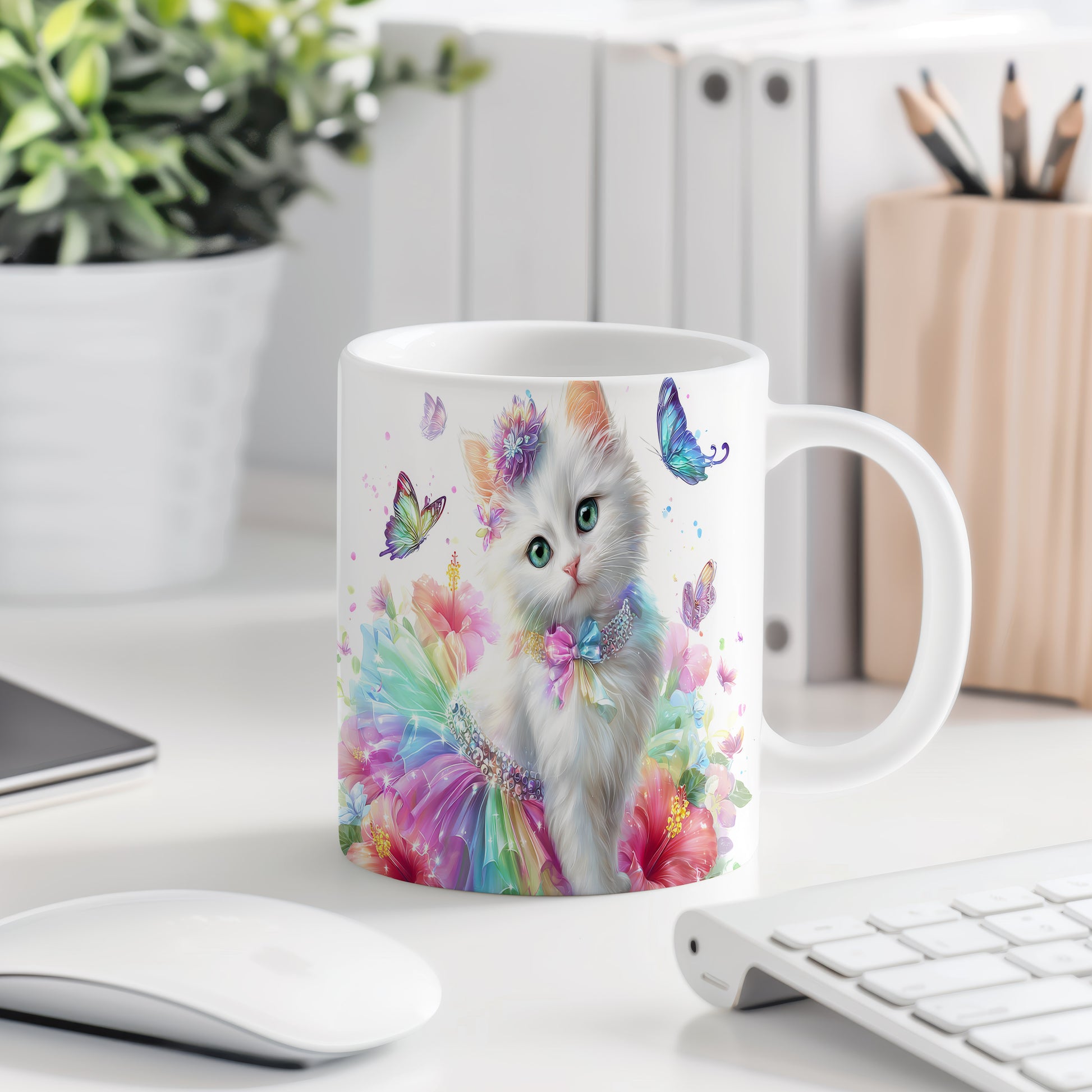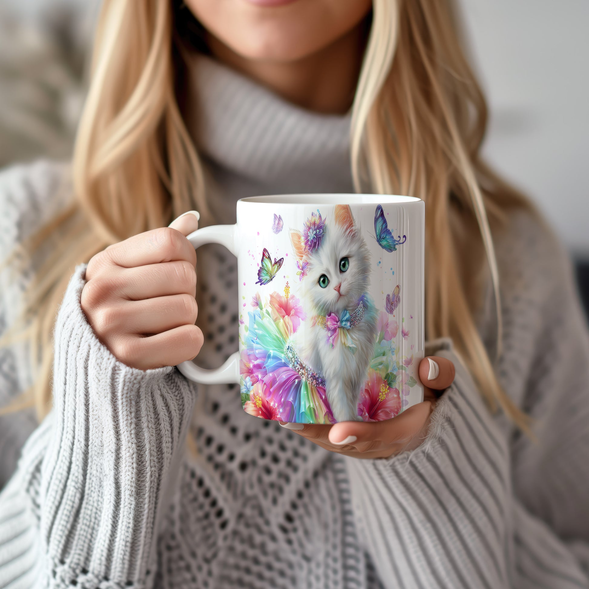 Tento hrnek s motivem roztomilé bílé kočky v barevném květinovém vzoru potěší každého milovníka zvířat. Je ideální jako dárek pro přátele nebo rodinu, kteří mají rádi kočky. Materiál: keramika. Objem: 330 ml. Vhodné do myčky i mikrovlnky. Používání tohoto hrnku přináší radost z každého doušku oblíbeného nápoje.